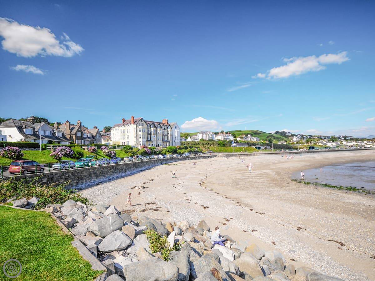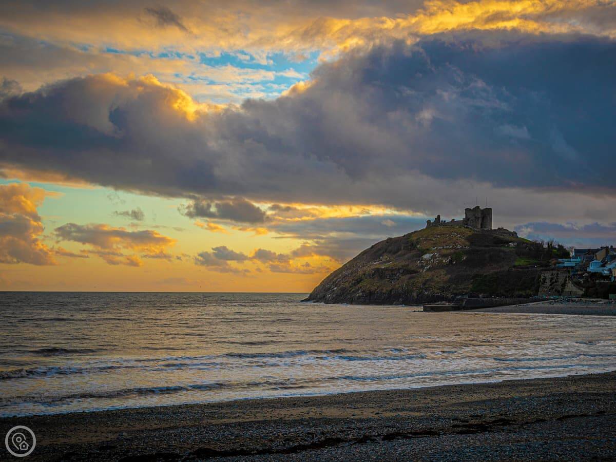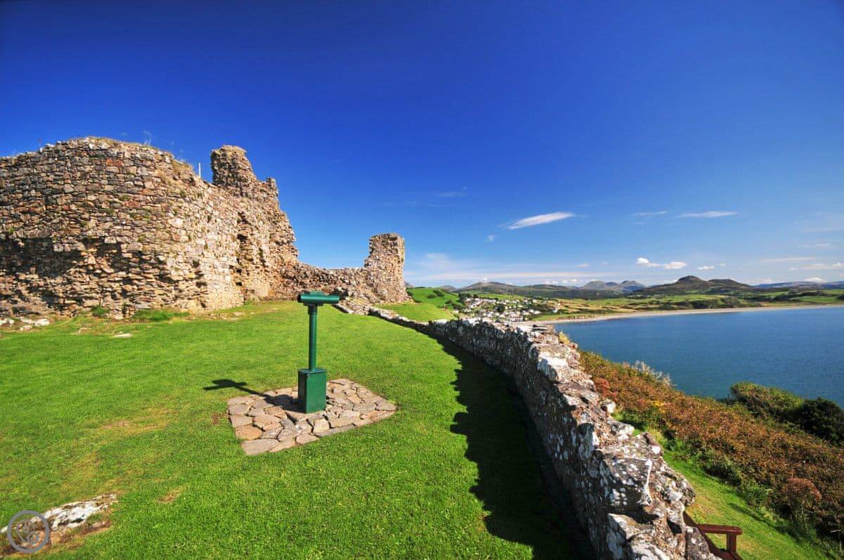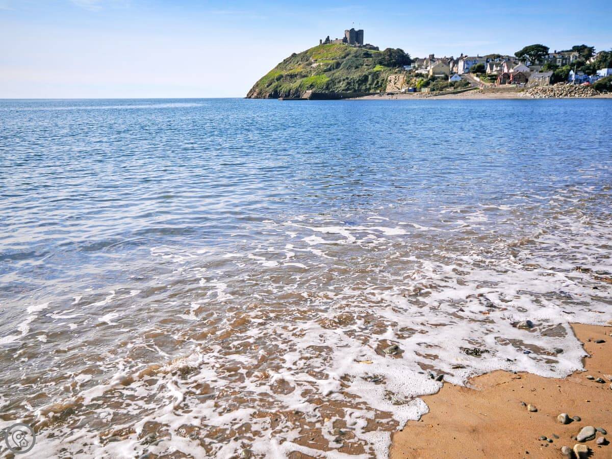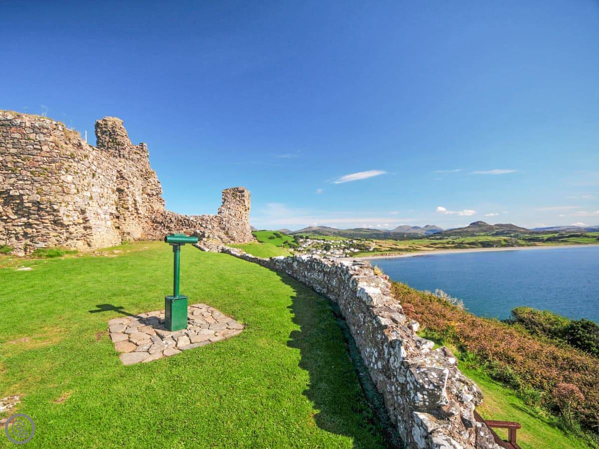 Criccieth itself is a five minute drive down the hill, or a twenty minute walk if you don't mind the slope back up. It's a small town with a castle, a few pubs and shops, and a good beach. The castle is worth a look. The Wales Coast Path runs right through it.
