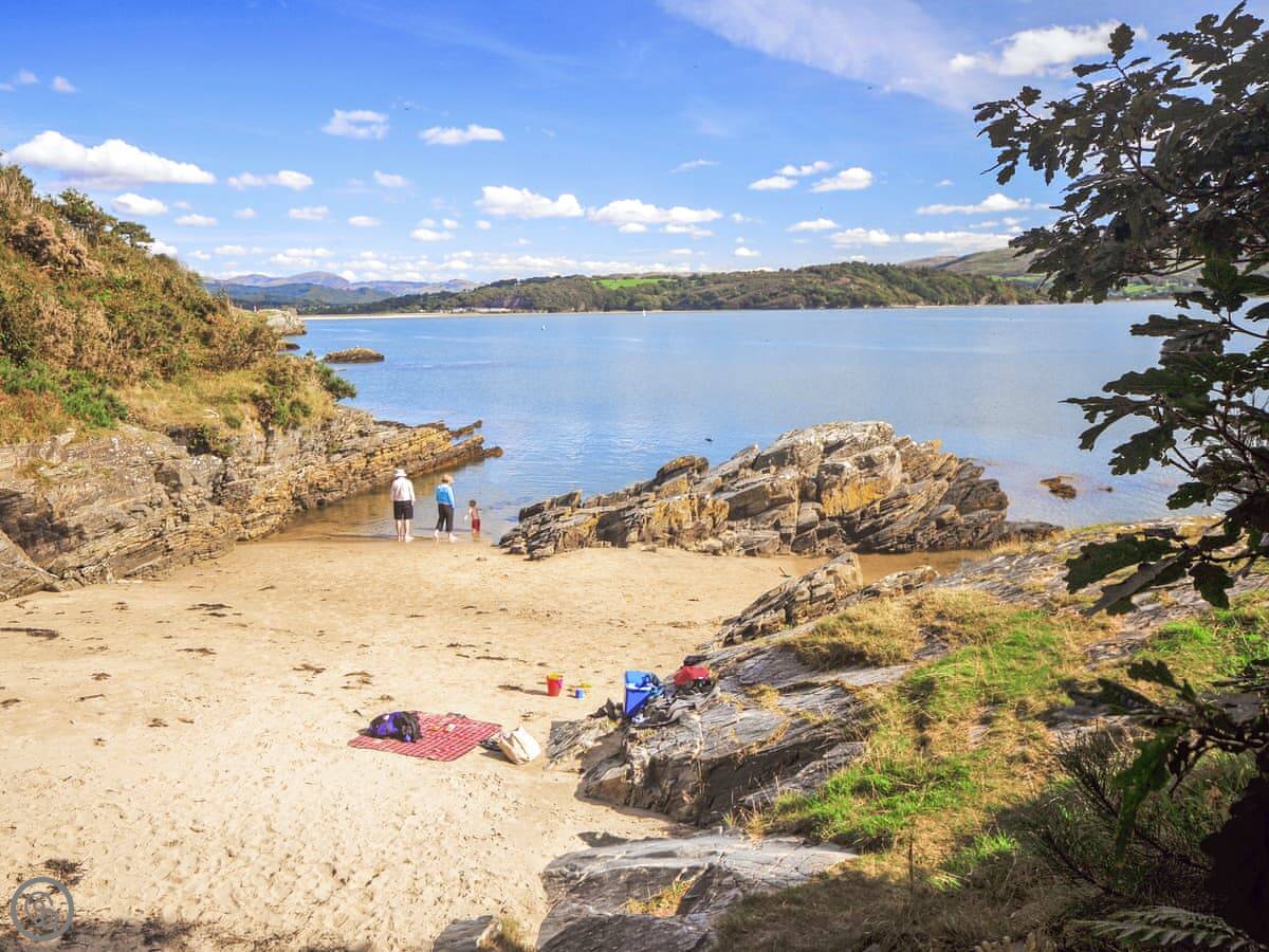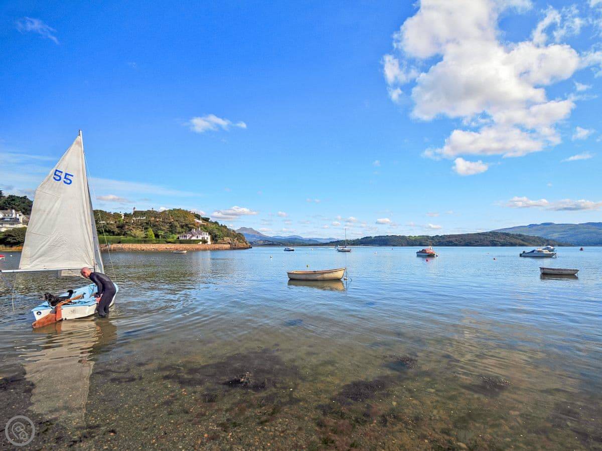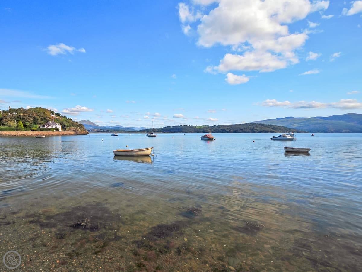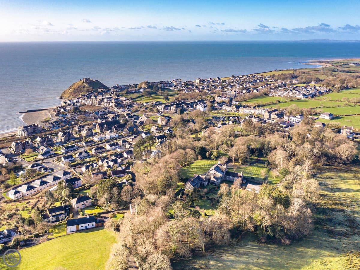 Criccieth itself is a five minute drive down the hill, or a twenty minute walk if you don't mind the slope back up. It's a small town with a castle, a few pubs and shops, and a good beach. The castle is worth a look. The Wales Coast Path runs right through it.