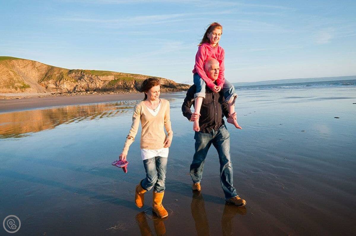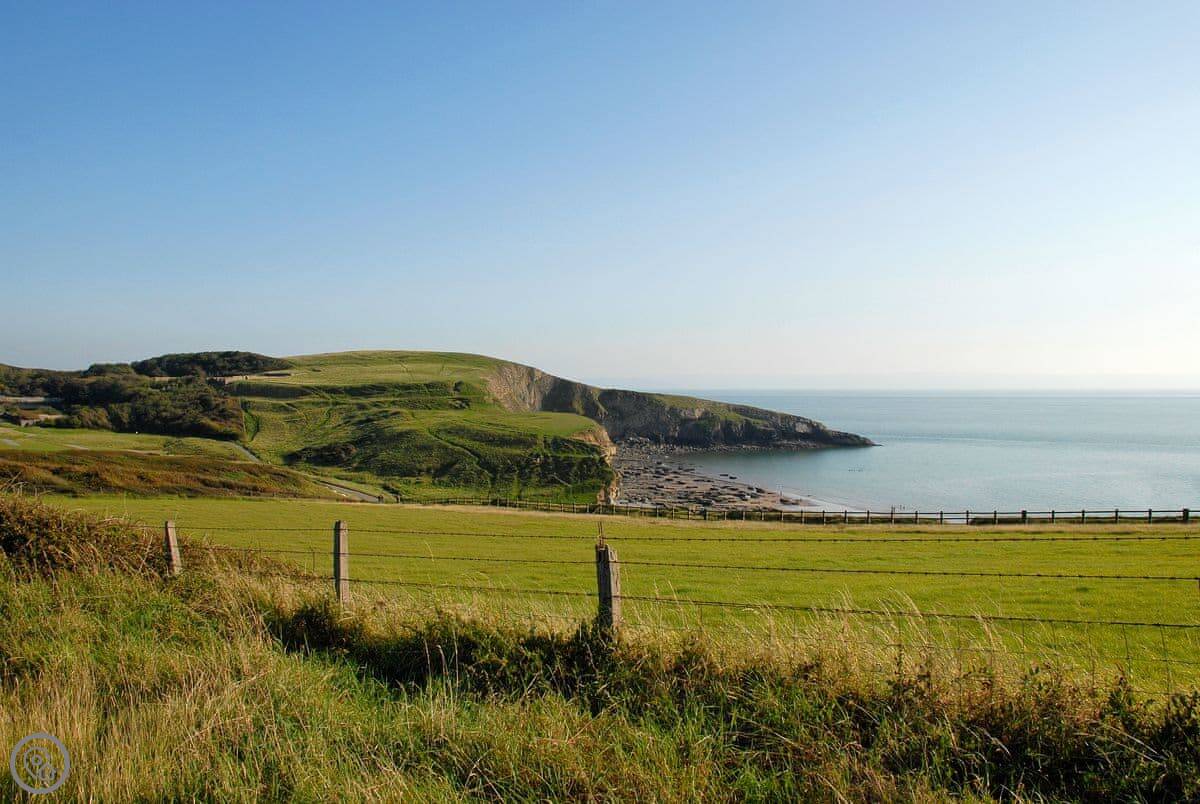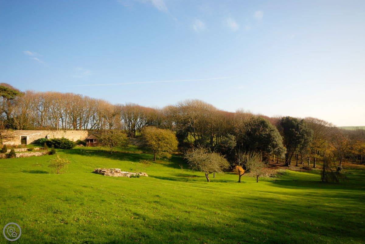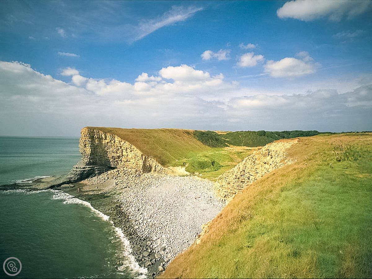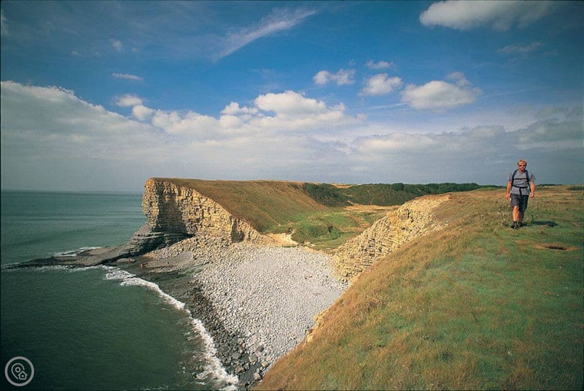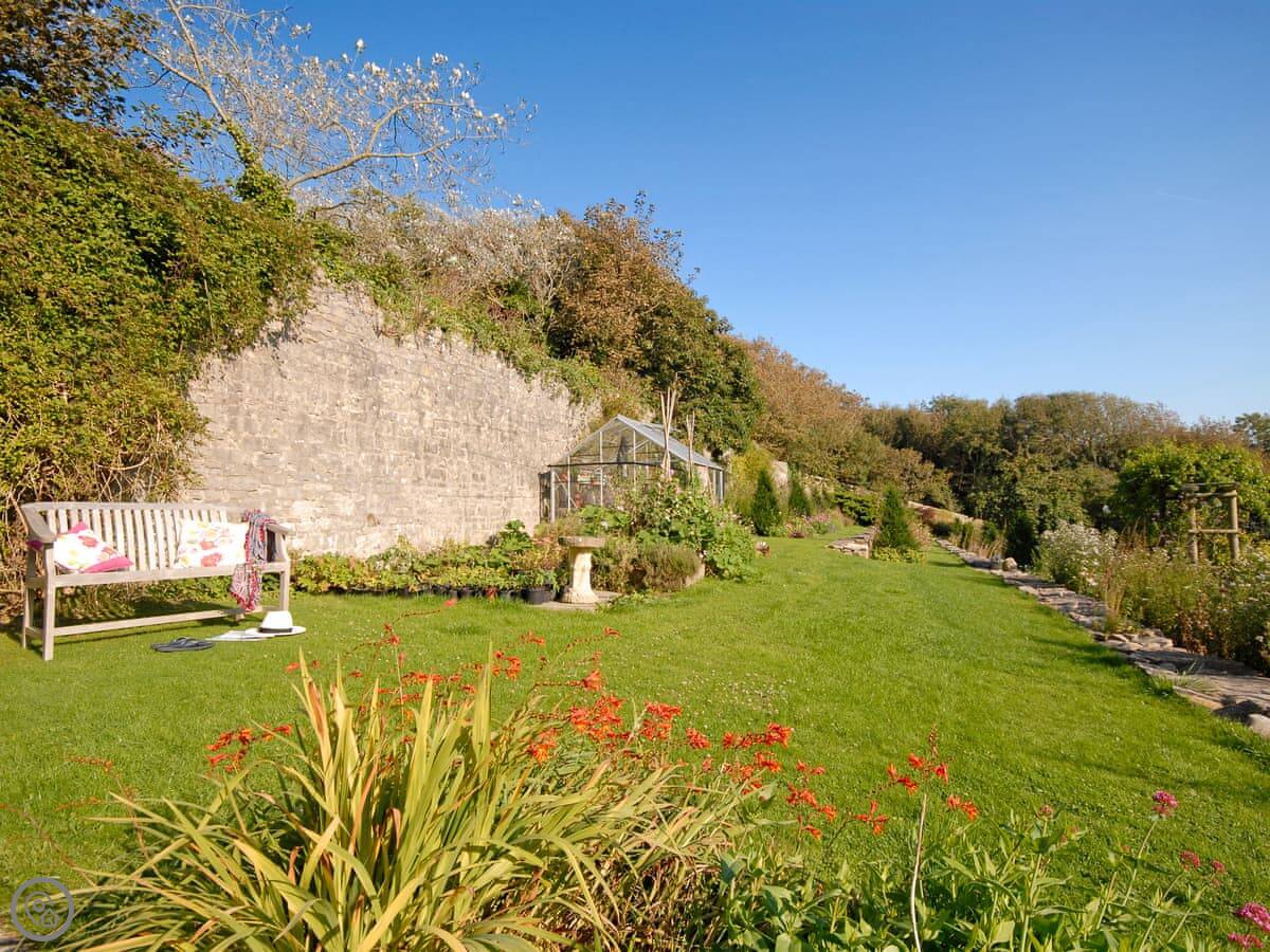 In the kitchen an oil fired Aga creates a warm hub to the house. The comfortable living room and ground floor bedroom open onto a large garden room which overlooks six beautiful and carefully tended landscaped acres of Slade Garden. The shared garden is the real gem of the property with masses of spring flowers, terraced lawns and mature trees, living willow arbours and rose and clematis pergolas, a very natural garden that is open annually within the National Gardens scheme. It’s a wonderful place to relax and explore, The walled front courtyard is a private, sheltered outdoor space for barbecues or just for enjoying the good weather. Guided farm walks, tractor rides and a wealth of information about the farm, the local natural environment and organics are all available to cottage visitors. Within walking distance is the local pub or try the Italian restaurant for a wonderful Italian meal, very family friendly. Ogmore’s fascinating ruined castle is reached by fifty-two stepping stones cross over the River Ewenny . Originally on the site of an Iron Age hillfort, all that remains of Dunraven Castle, home of the ghostly ’blue lady’, is the walled garden above Dunraven Bay.