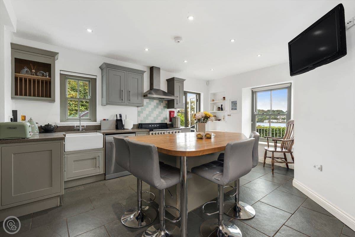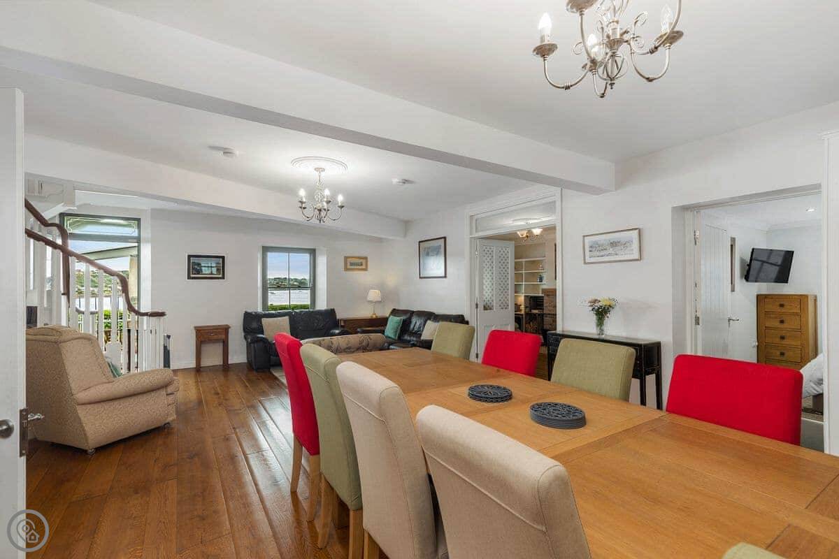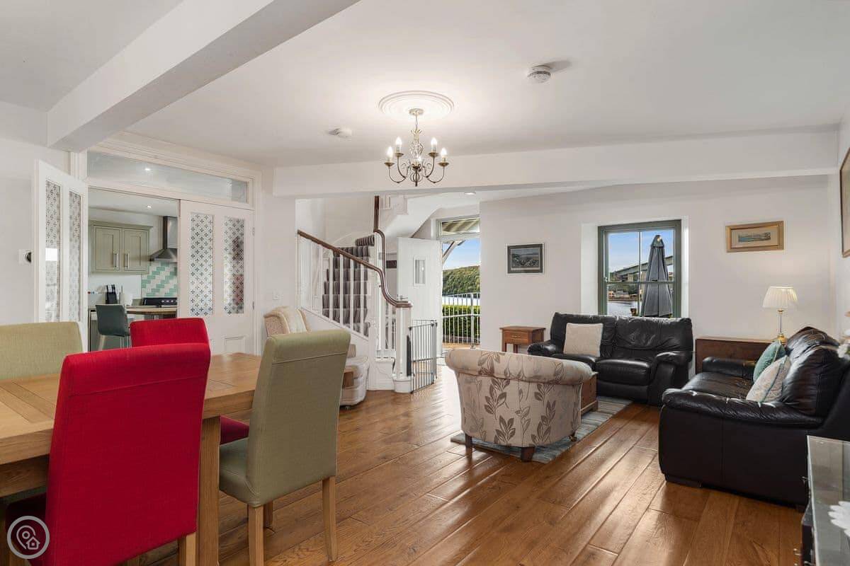 Stunning views across the shimmering broad expanse of the Cledddau River, an ever-changing scene of totally beguiling comings and goings. Beautifully and tastefully furnished throughout, the spacious dining room, living room and two of the beautifully appointed en-suite bedrooms have fabulous views. The drive continues down past the house to the water’s edge - ideal for launching small boats. A walk along the foreshore which teems with bird life, takes you to The Jolly Sailor - a great family pub serving excellent food and drink. Beach 3 miles.