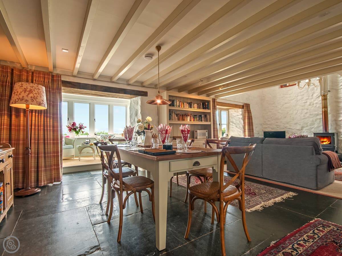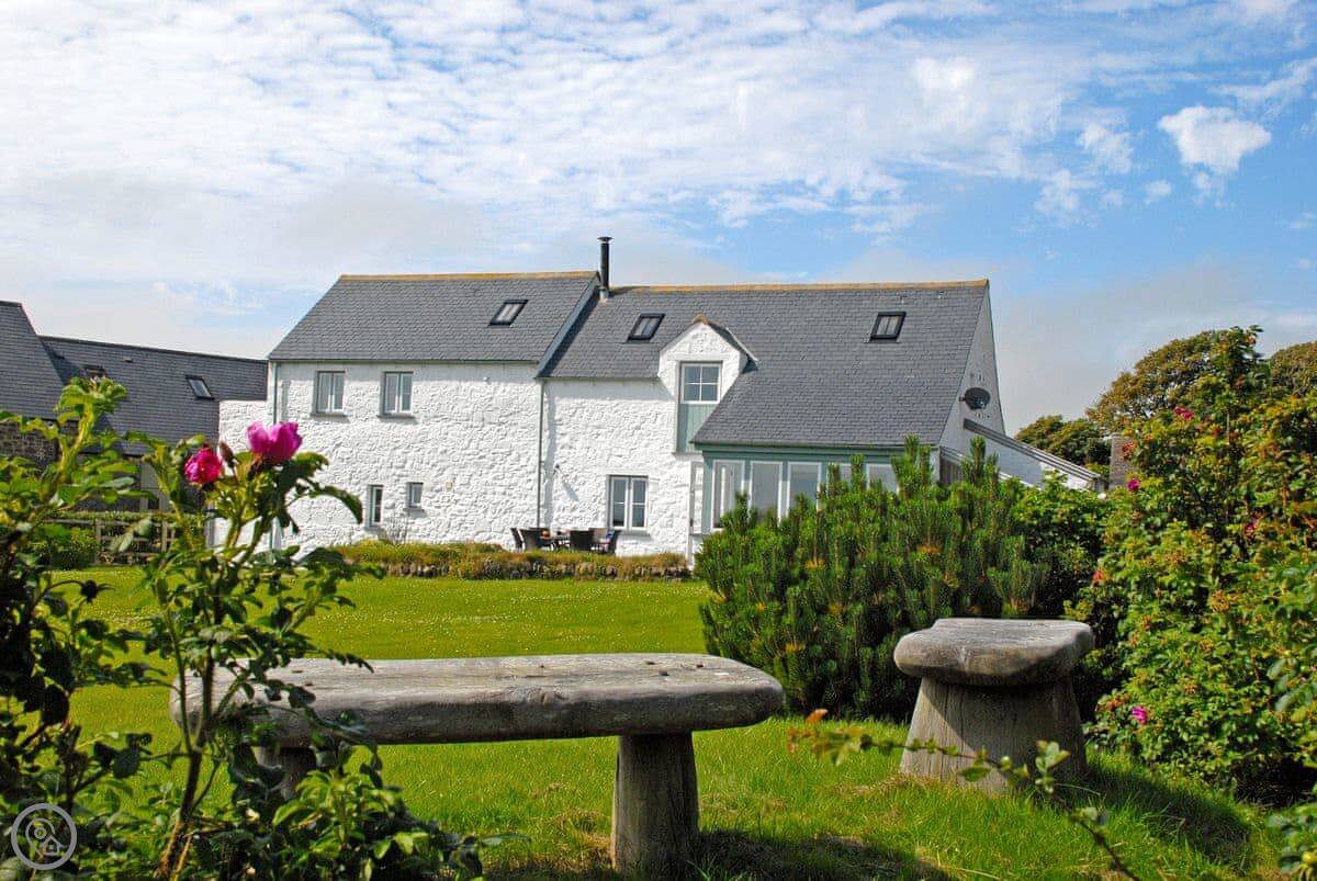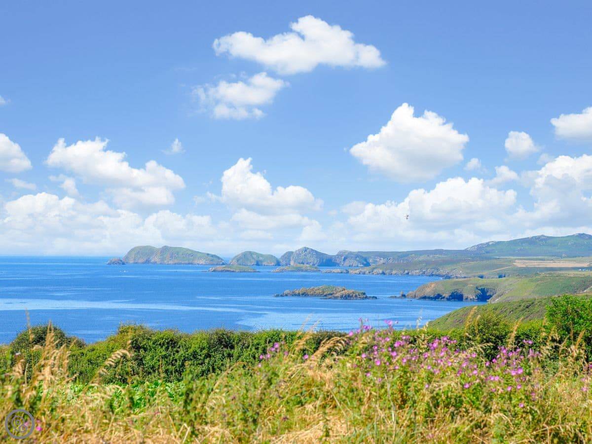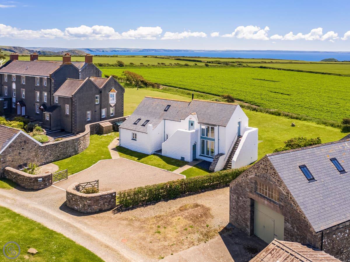 Carreg Wen will surely cast its spell over you, this stunning, handsome house, has absolutely fabulous panoramic coastal views across St Brides Bay to Skomer and Ramsey Islands and as far as Grassholm on a clear day, and the fabulous Pembrokeshire Coastal Path is 400 yards away. The property recently featured in the Times Newspaper as among the 14 Best Holiday Cottages in the UK. This spacious luxury holiday home has been created from a former 18th century Pembrokeshire malt house, once part of Llanunwas, a 400-year-old cliff top gentleman’s estate. Lots of original exterior features have been retained including two flights of stone steps, a ’goose hole’ and dovecots.