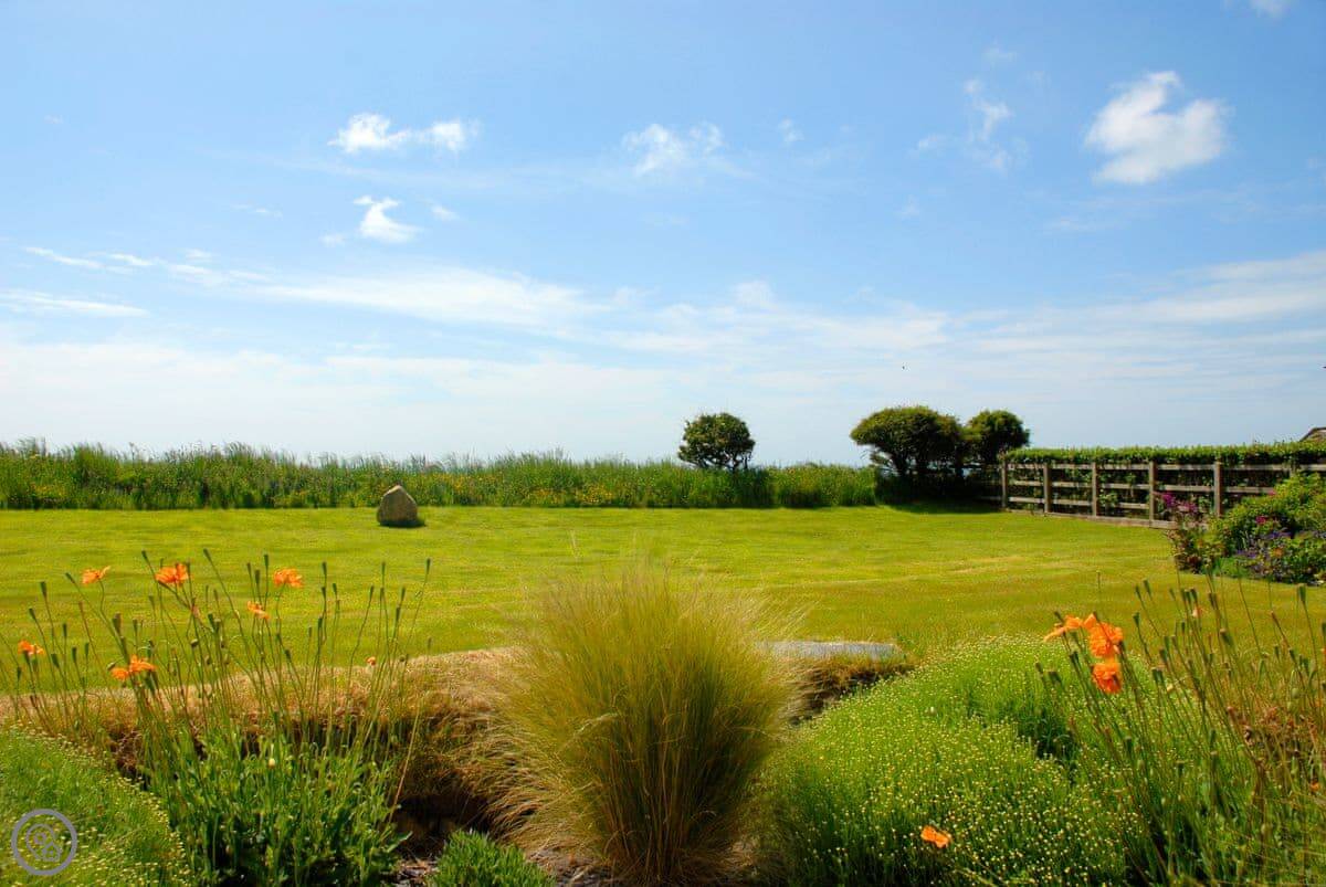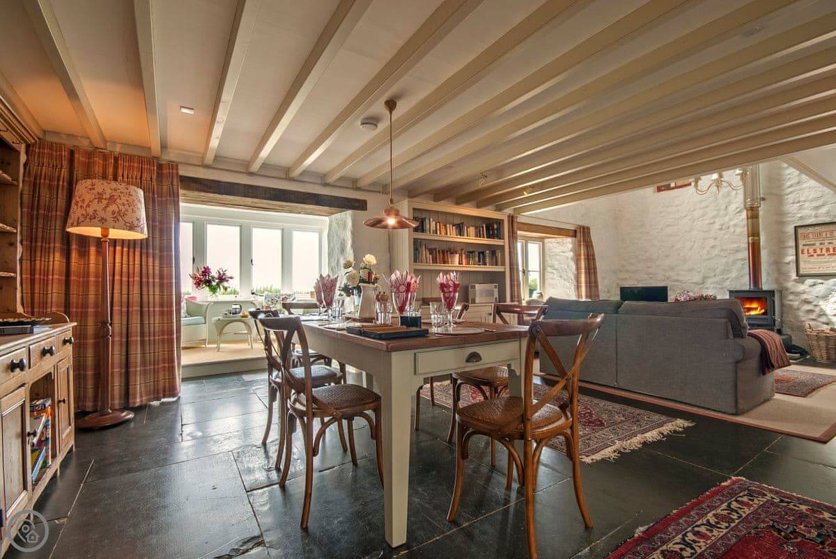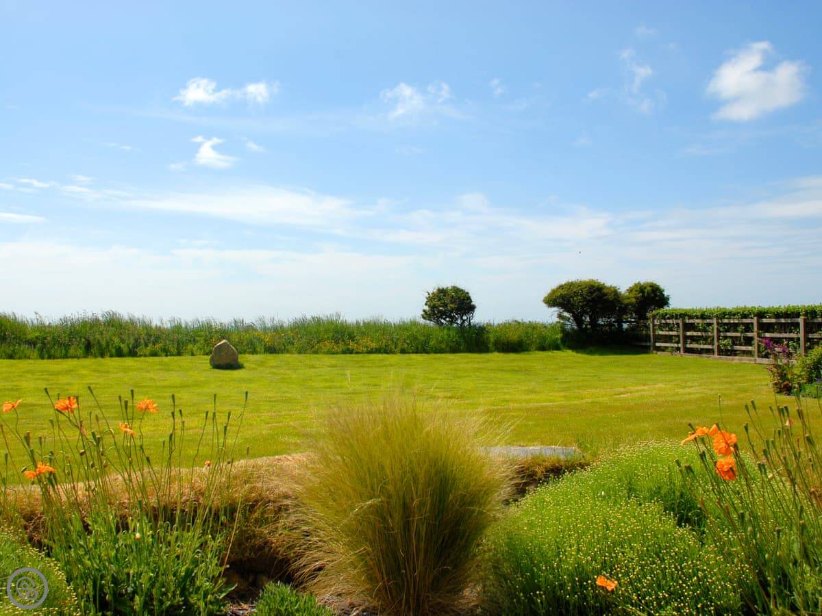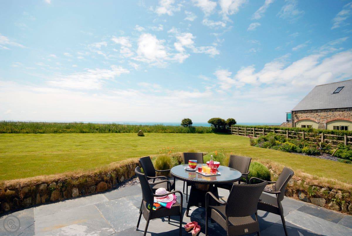 Carreg Wen will surely cast its spell over you, this stunning, handsome house, has absolutely fabulous panoramic coastal views across St Brides Bay to Skomer and Ramsey Islands and as far as Grassholm on a clear day, and the fabulous Pembrokeshire Coastal Path is 400 yards away. The property recently featured in the Times Newspaper as among the 14 Best Holiday Cottages in the UK. This spacious luxury holiday home has been created from a former 18th century Pembrokeshire malt house, once part of Llanunwas, a 400-year-old cliff top gentleman’s estate. Lots of original exterior features have been retained including two flights of stone steps, a ’goose hole’ and dovecots.