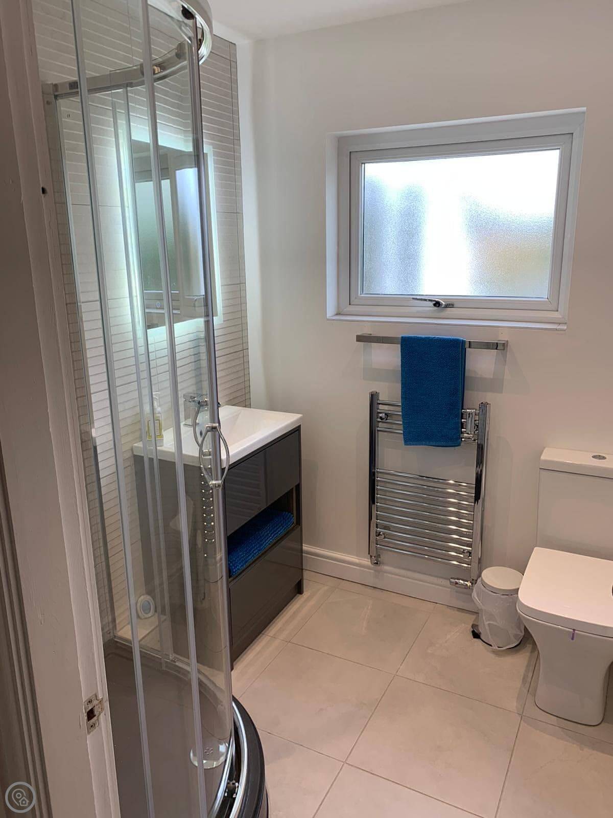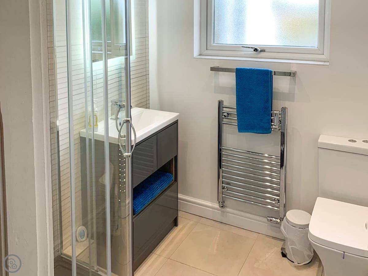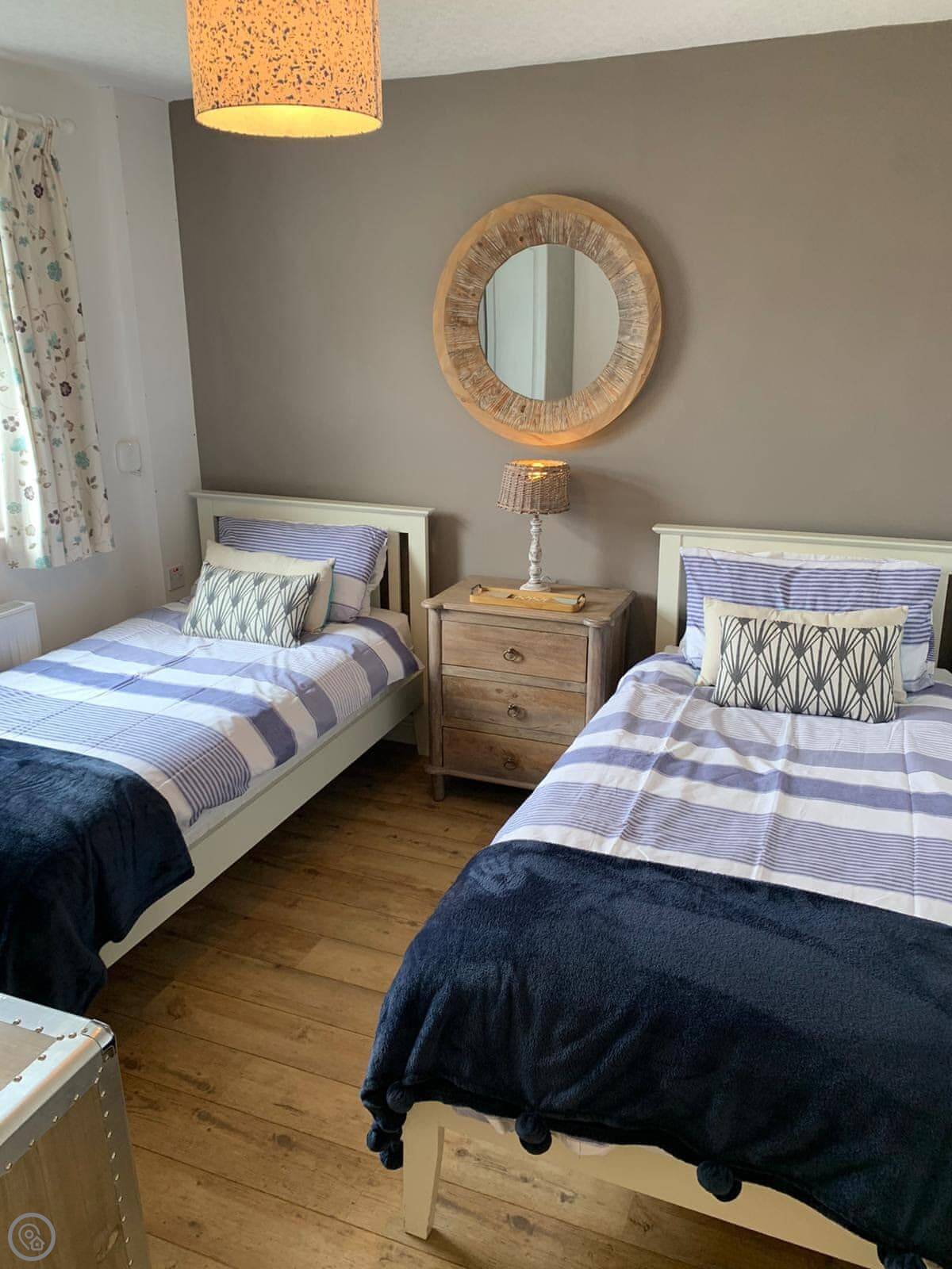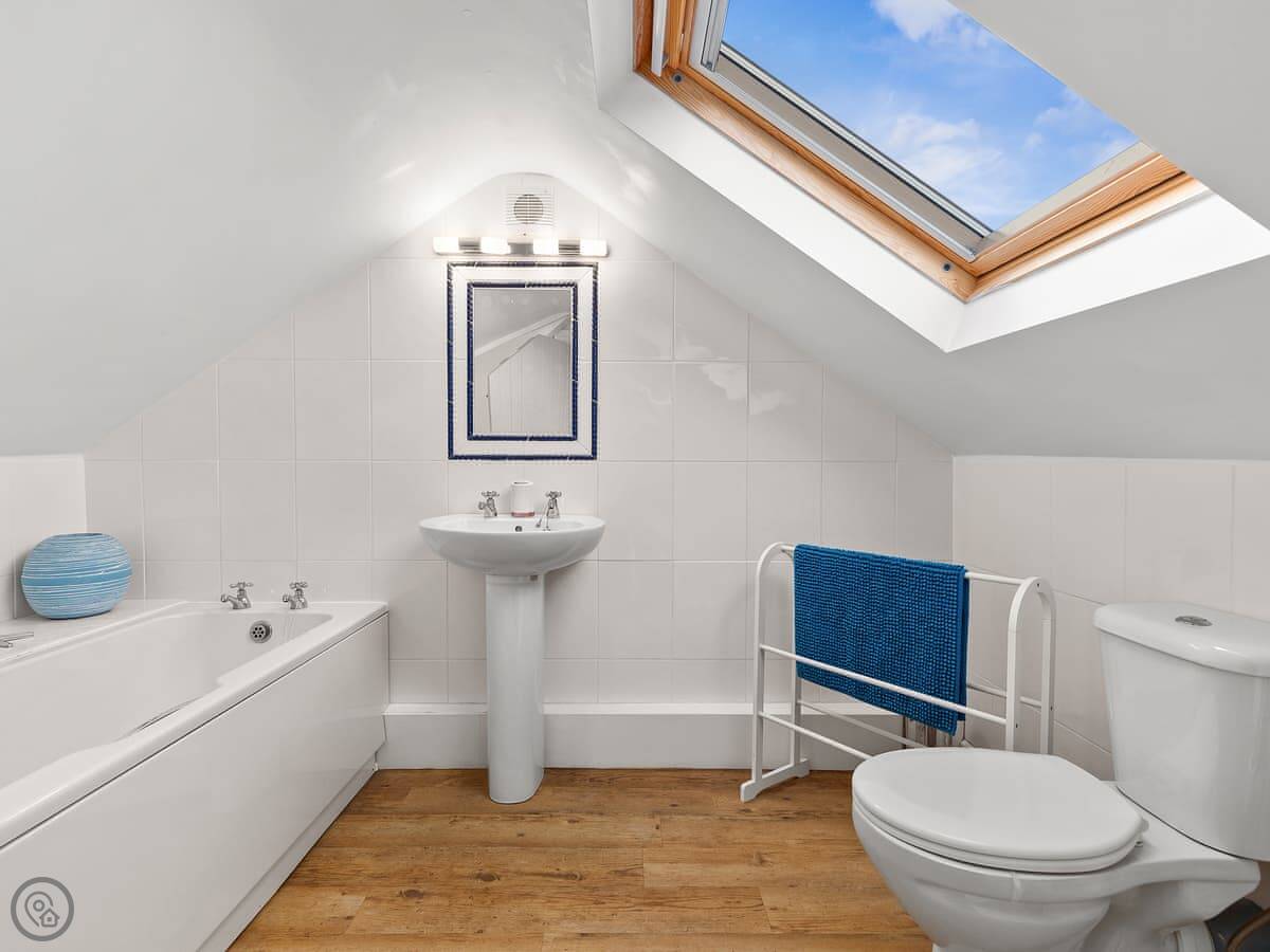 Crab Cottage is in Morfa Nefyn, right near the top of the Llŷn Peninsula. It's a detached house, so no one attached to either side. It sleeps six, with three bedrooms and two bathrooms. One bedroom and a shower room are on the ground floor, which might suit someone who doesn't want to do stairs. The other bathroom and a twin bedroom are upstairs.