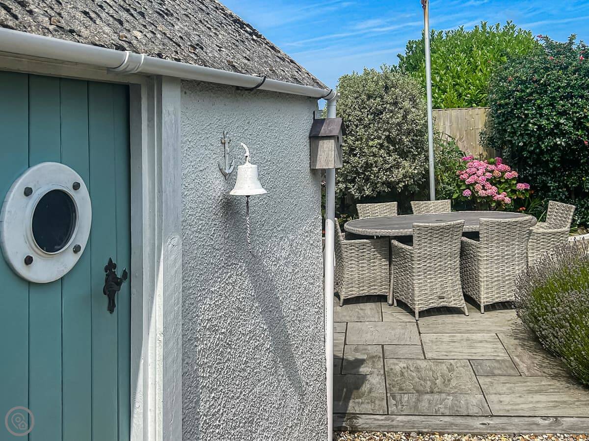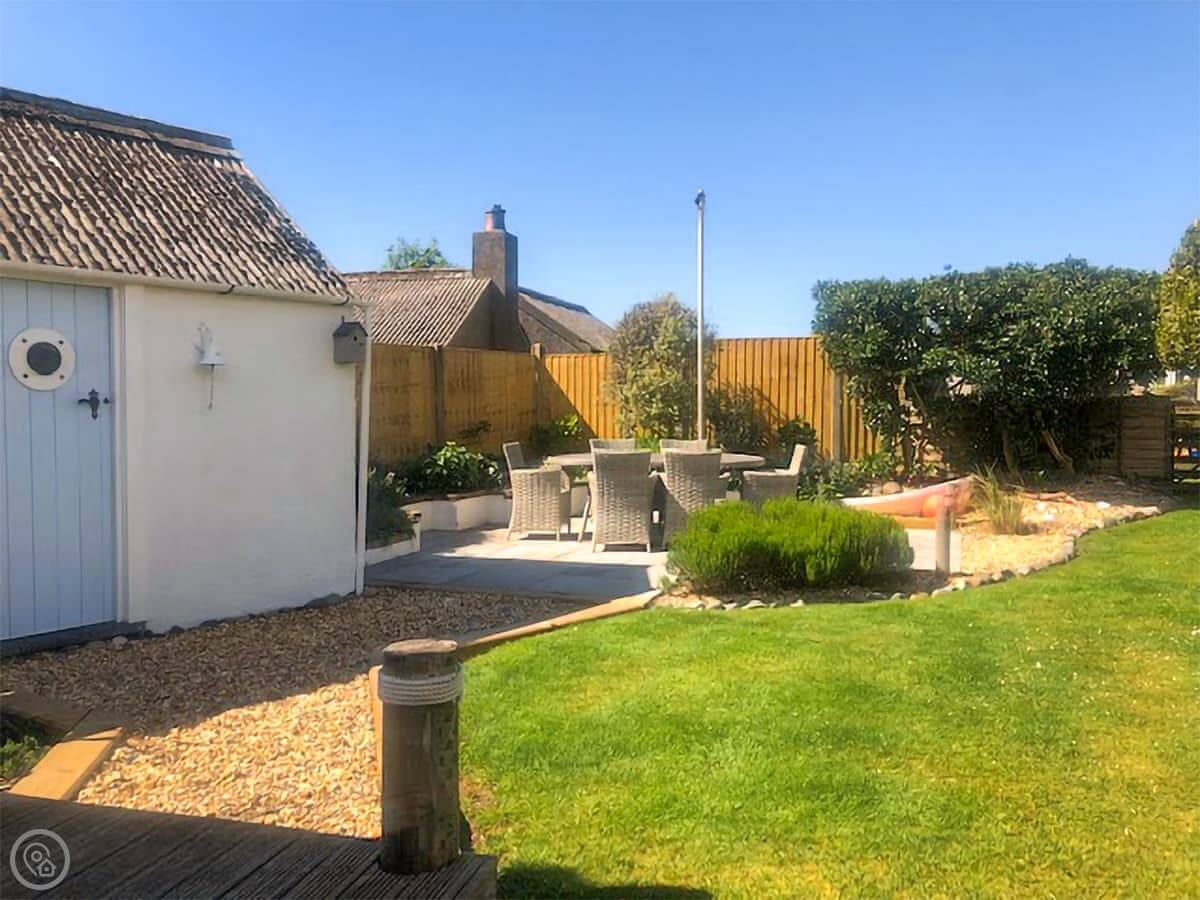 The back garden is enclosed, with a decked area and some flower borders. There's parking on the drive and a place to store bikes if you bring them.