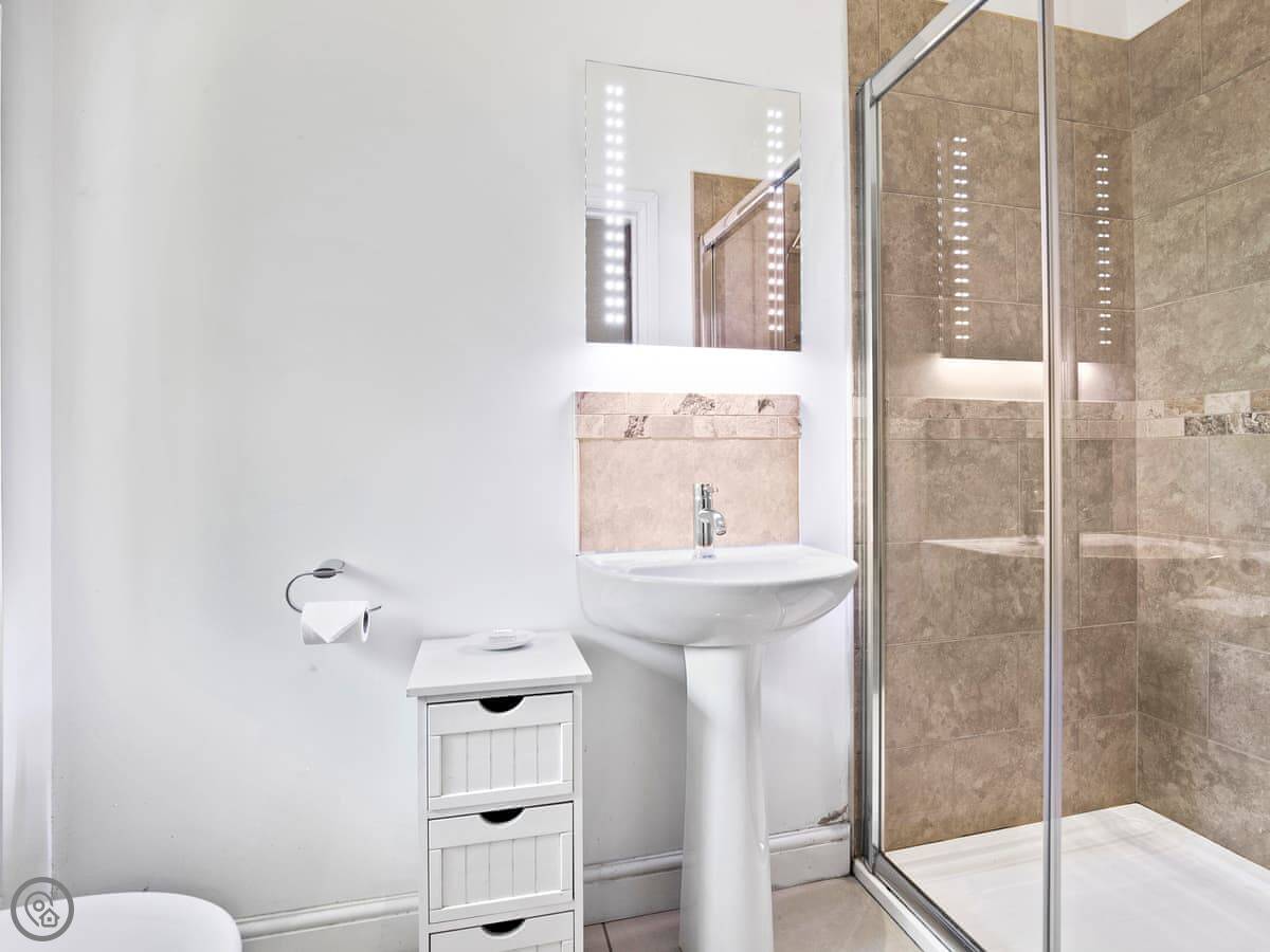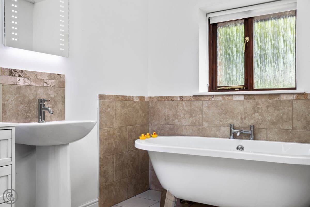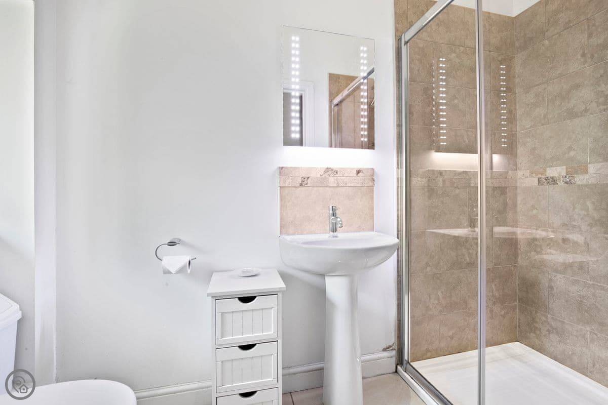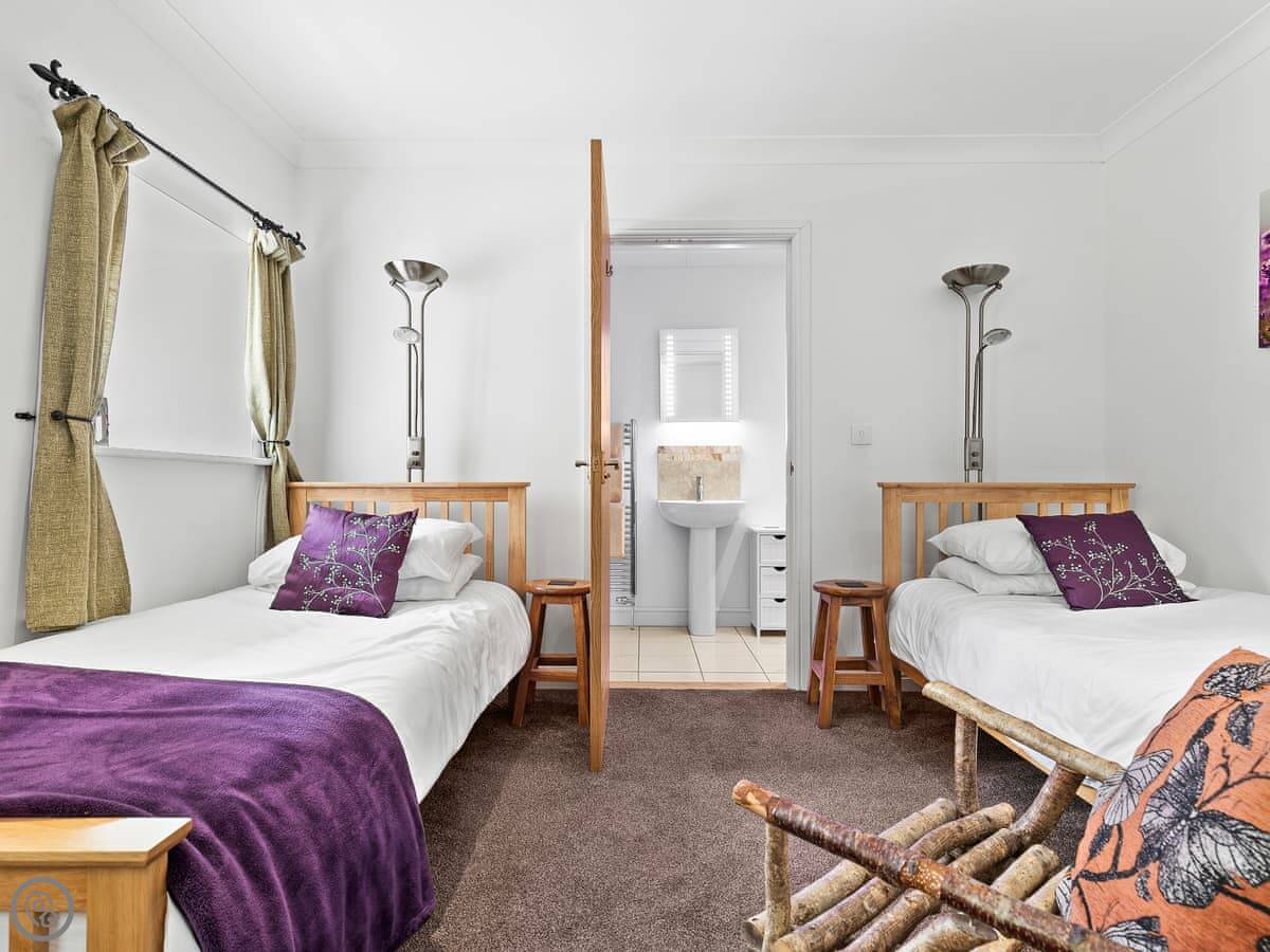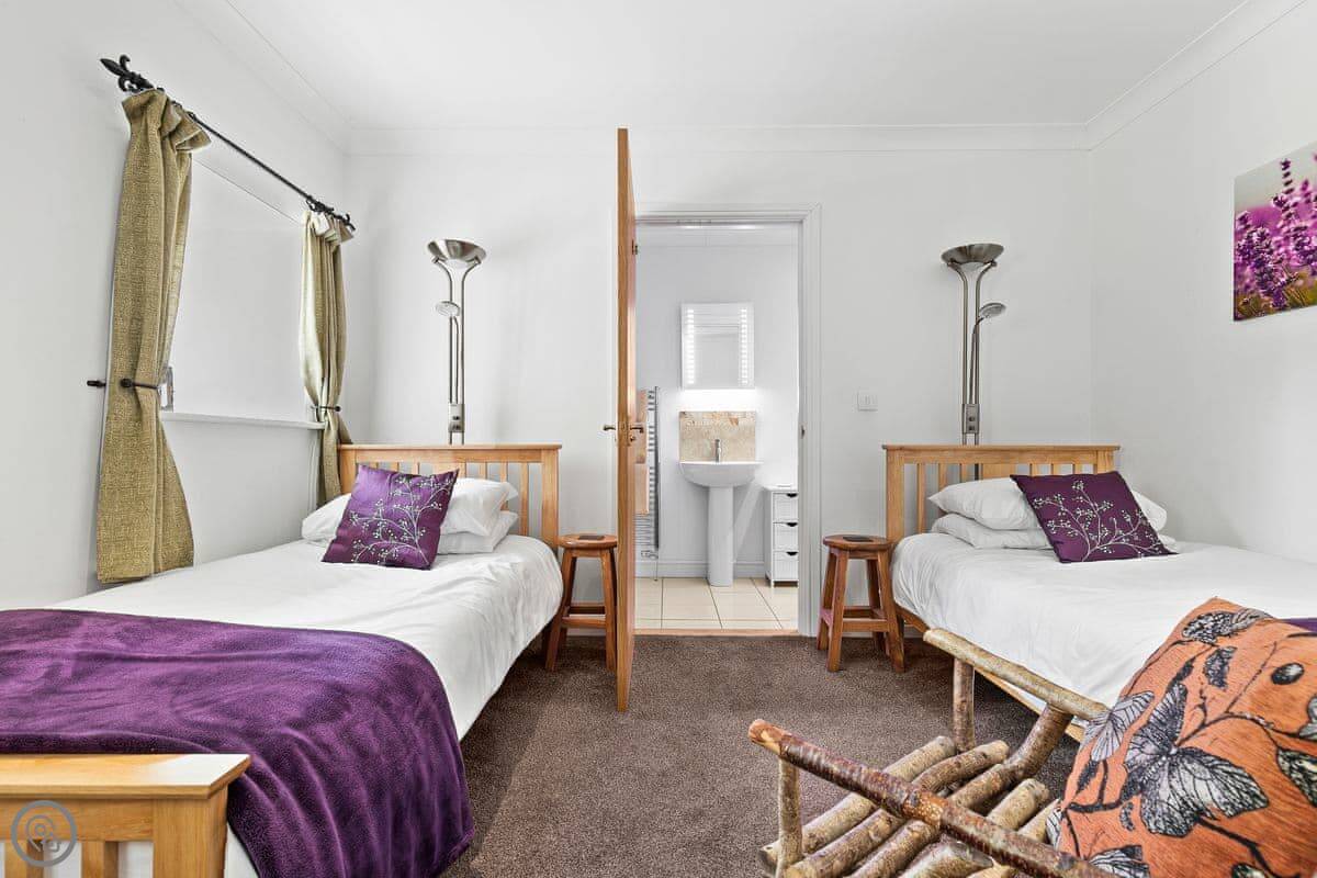 You won't have trouble finding a bed. There are three bedrooms and each one has its own bathroom. They're all en-suite. The stairs are wide and easy, and there's wheelchair access at the front.