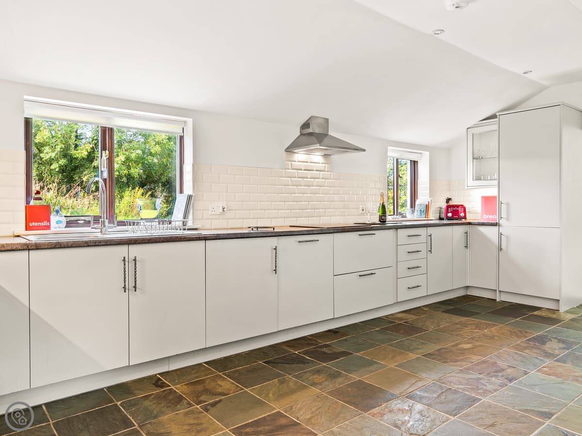 In terms of stuff here: there's a dishwasher, washing machine, WiFi, and parking. Bedding and towels are included. We can provide a cot and highchair. One well-behaved dog is welcome.