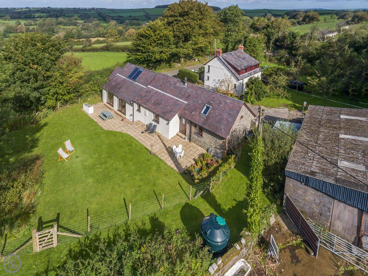 Kite Cottage is a converted barn near Capel Iwan. It's detached and faces south, so you get the sun across the front. It's quiet here.