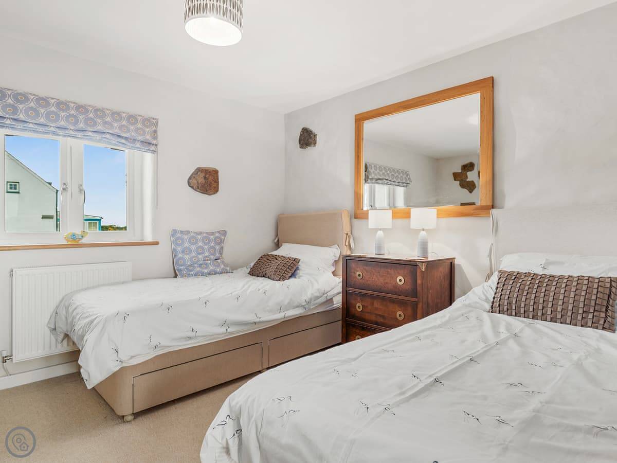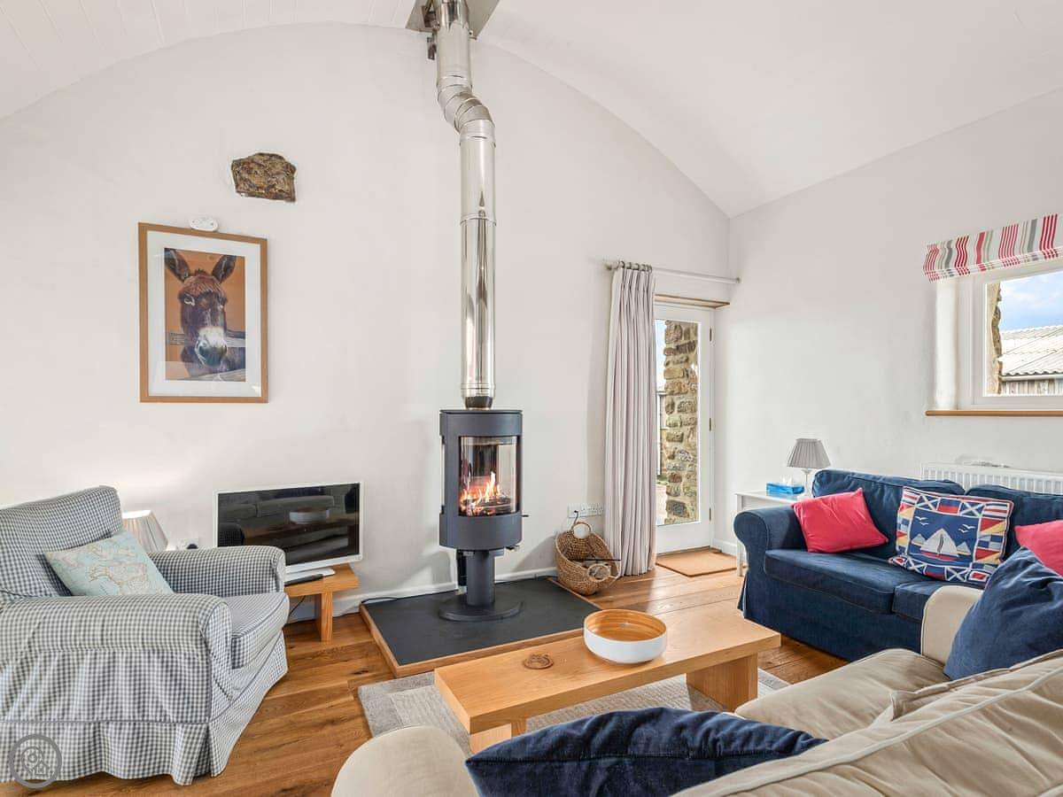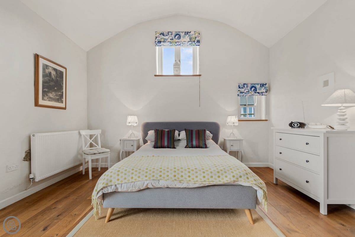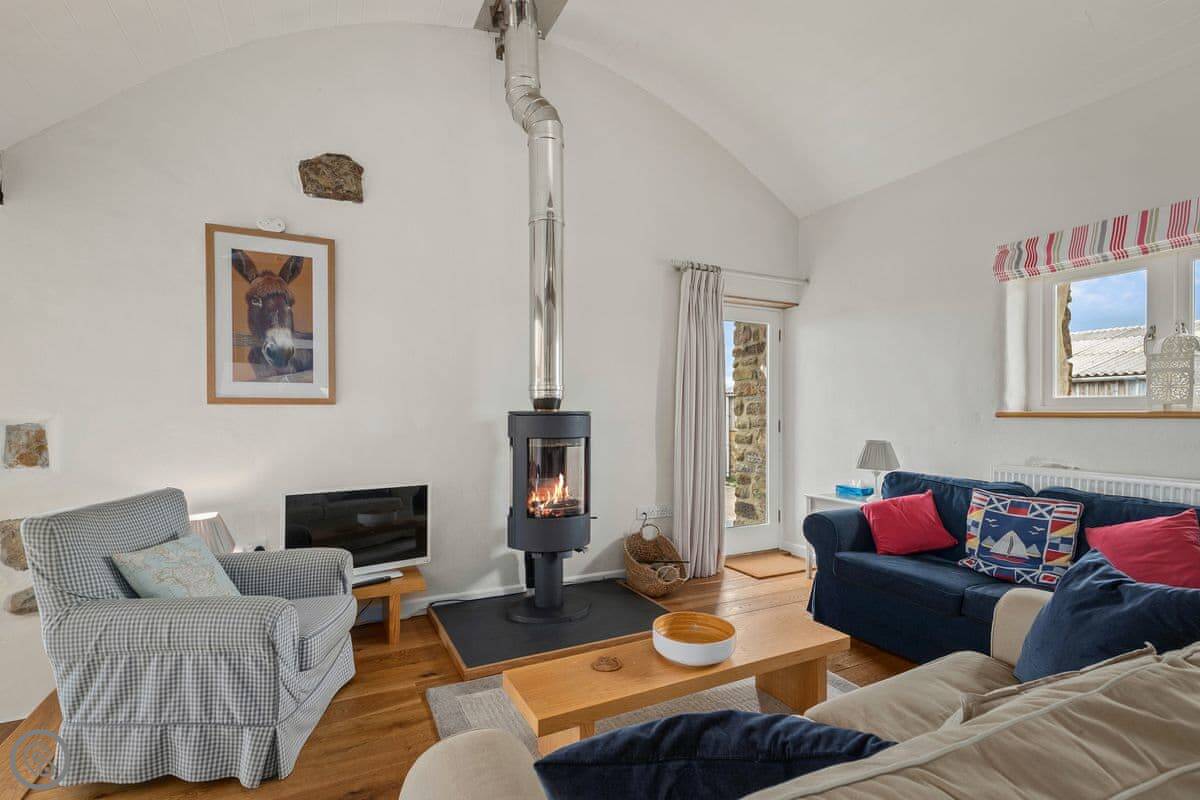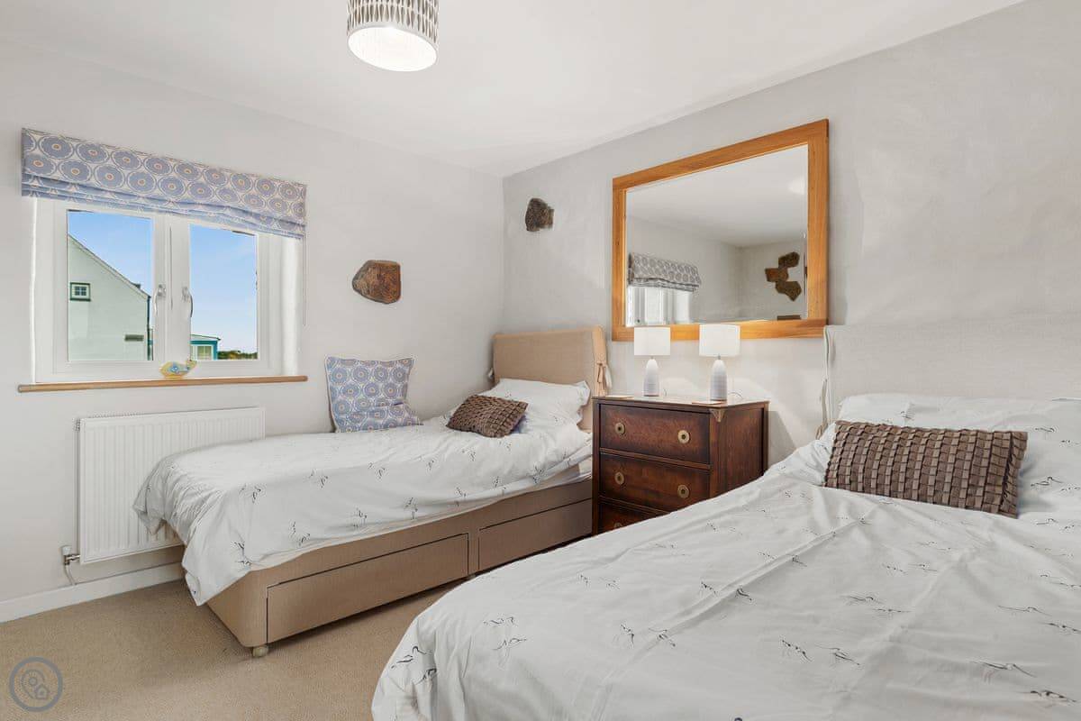 It sleeps seven, in three bedrooms. There are two bathrooms, one downstairs. It's got a 4 Star rating. It's comfortable and clean, with stone floors and a wood burner. The wi-fi is fine for normal use.