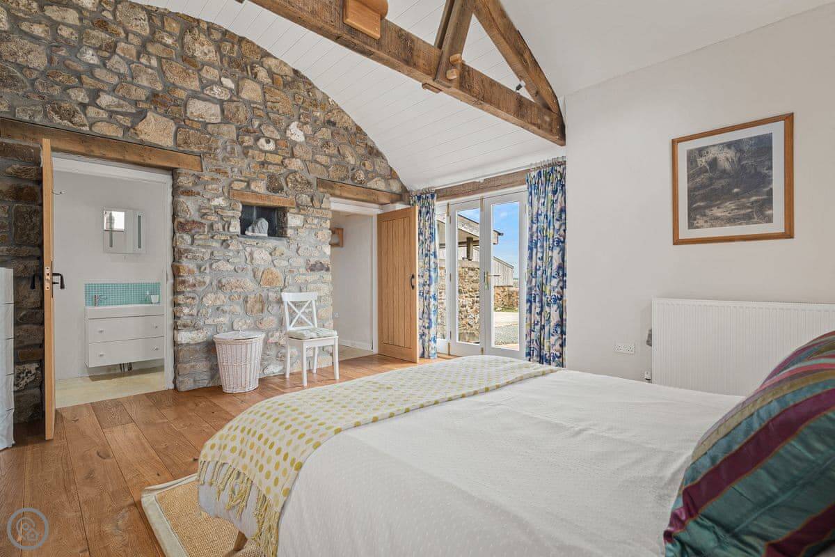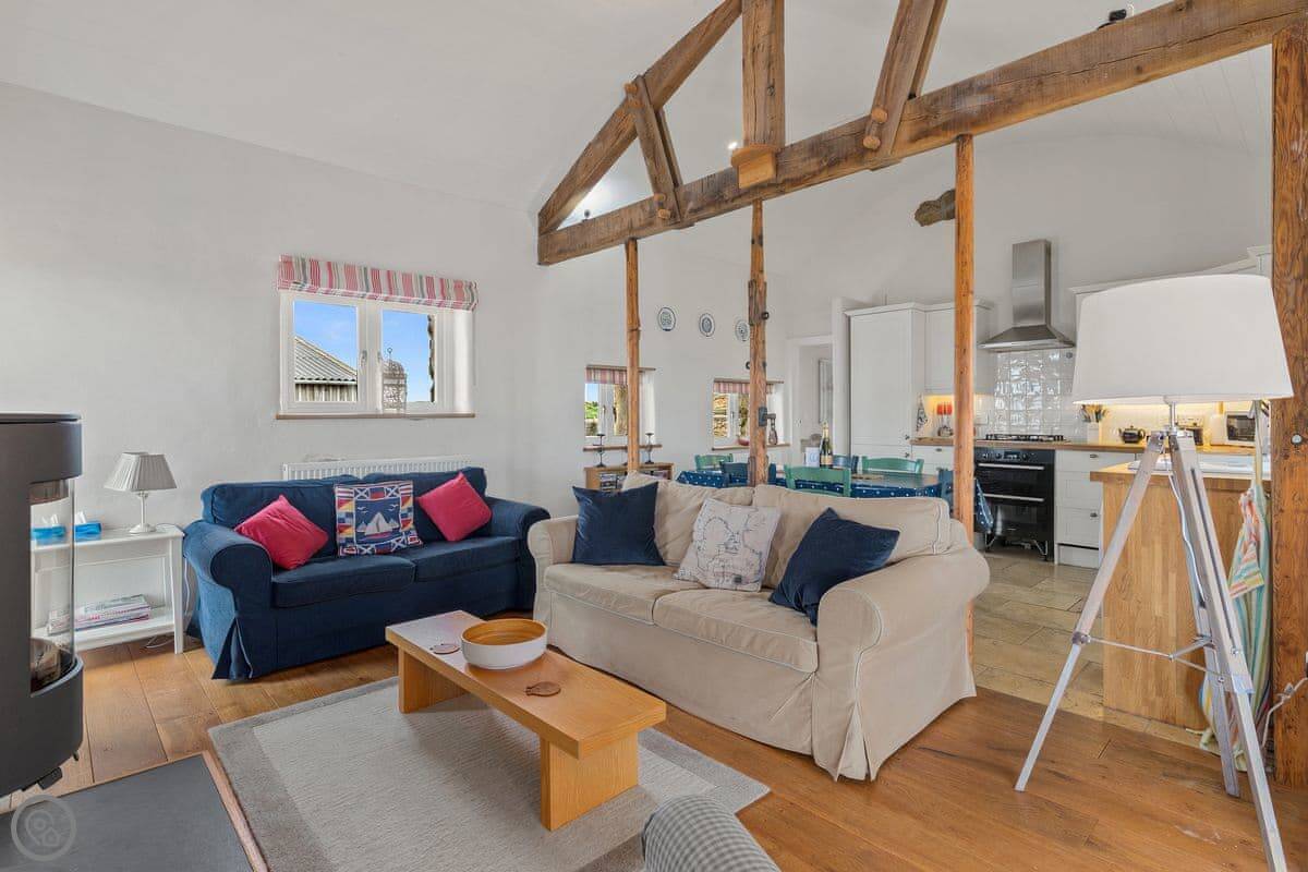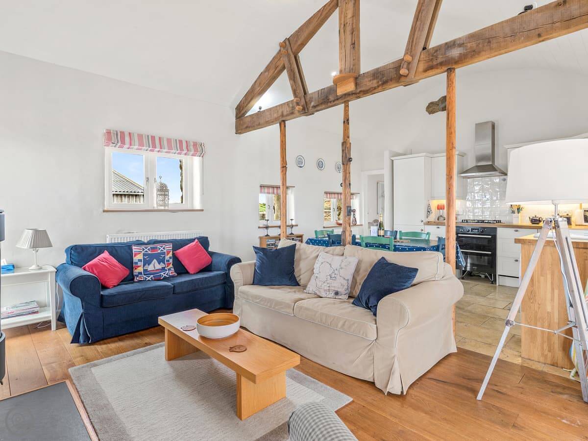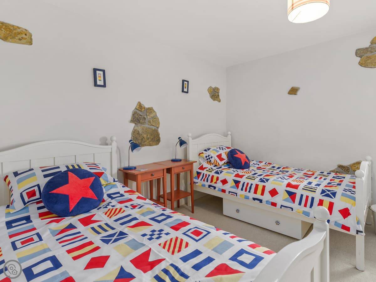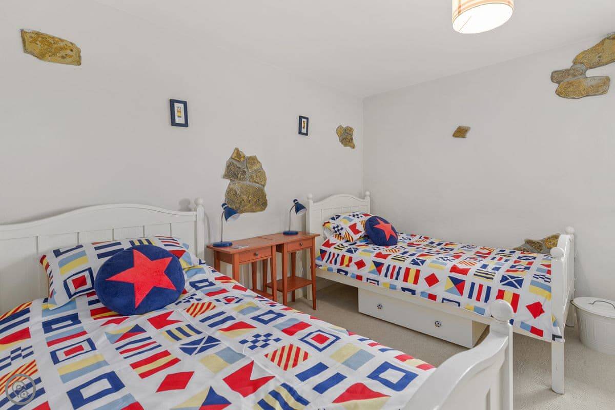 It sleeps seven, in three bedrooms. There are two bathrooms, one downstairs. It's got a 4 Star rating. It's comfortable and clean, with stone floors and a wood burner. The wi-fi is fine for normal use.