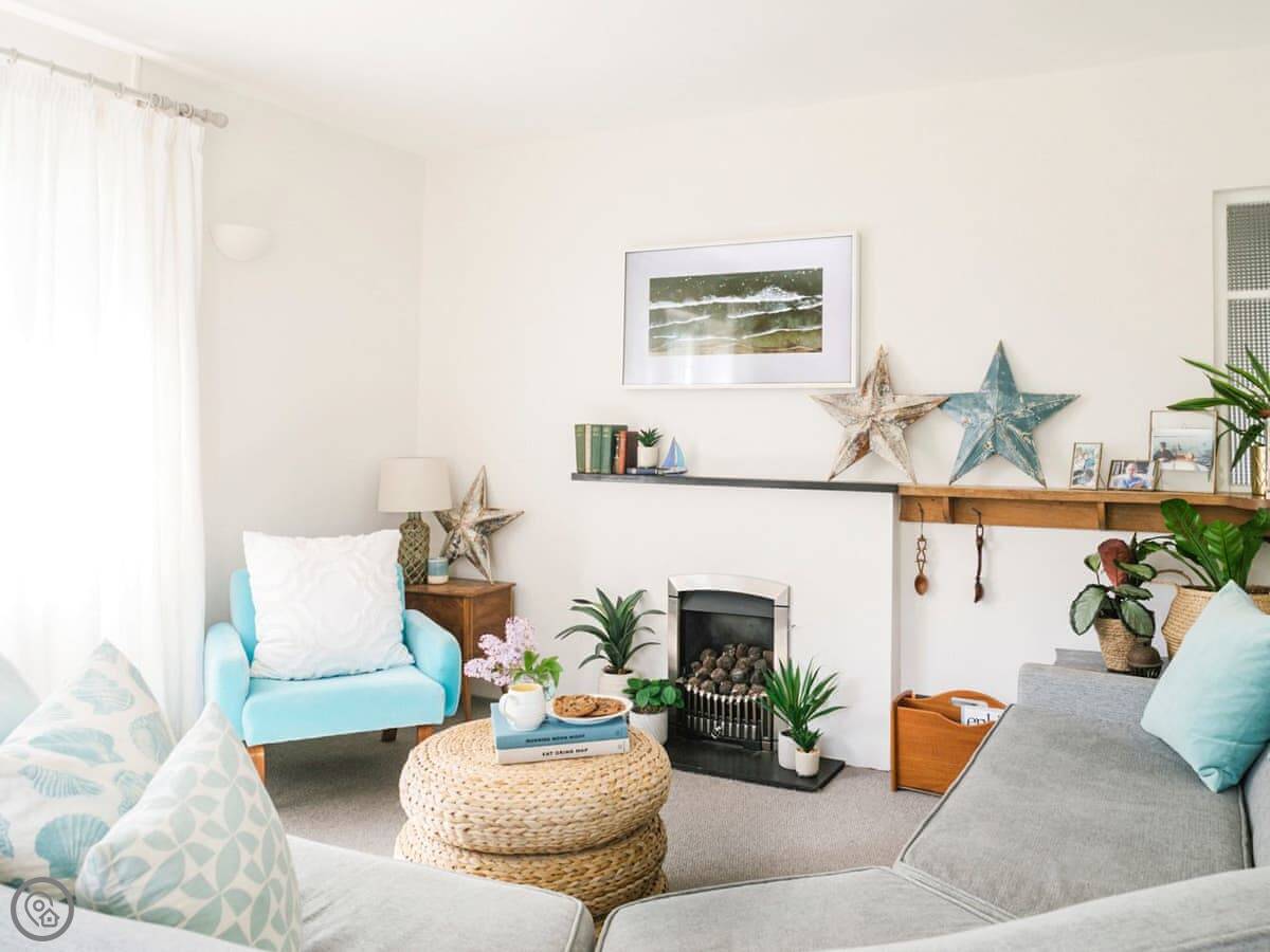 The beautiful beach of Traeth Morfa Nefyn, one of the most loved on the Llyn Peninsula, is just a 2 minute stroll from The House on the Corner, a holiday cottage literally on the corner of Beach Road. Newly decorated with a coastal inspired theme throughout, the living room features a huge ’L’ shaped duck egg blue sofa and dining table for 8 and leads out onto a sunny conservatory. The master ground floor bedroom with en-suite shower room is light and airy with a king-size 6ft bed. There is an additional ground floor double bedroom with floral curtains and throws. The well equipped retro kitchen with food hatch into lounge and pantry emphasises the early 1960’s origins of the house and the ground floor family bathroom features an large enamel bath with shower over. There are two loft bedrooms . One decorated with a red, white and blue nautical theme and the other with a restful soft grey decor. Surrounded by large well tended lawns, the house gets sun all day. An extra hidden lawn through an entrance in the hedge is a secret garden that children and pets will delight in. The rear of the house is a perfect secluded spot to enjoy a barbecue in the evening sun. A short walk away is Morfa Nefyn general stores which sells everything from locally sourced meat and fish to fresh vegetables and for eating out there are lots of choice - just around the corner is a small highly recommended cafe and a mile away is a gastro pub.