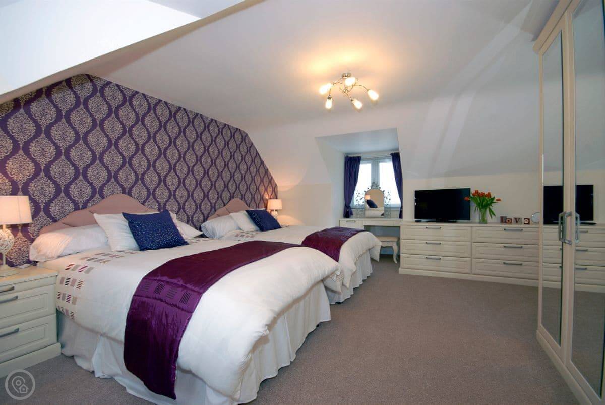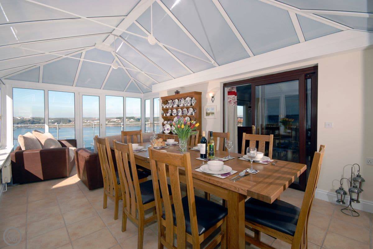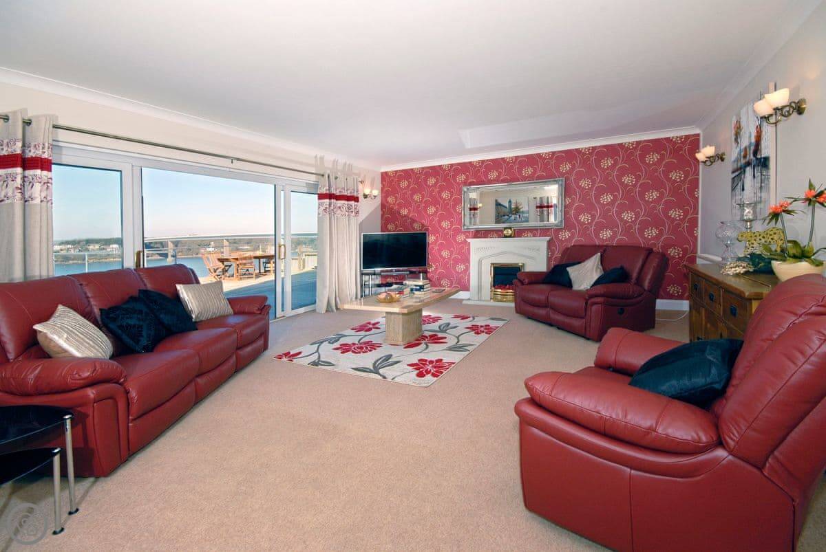A large rear decked area overlooks the Haven, the spacious living room and fully equipped large luxury kitchen opens into a dining/conservatory both with patio doors to the decking a breath-taking spot for al fresco dining! There are three lovely bedrooms, the master with a super king size bed and en-suite shower room and a balcony, a double aspect twin bedroom and a ground floor double bedroom with an en-suite shower room.