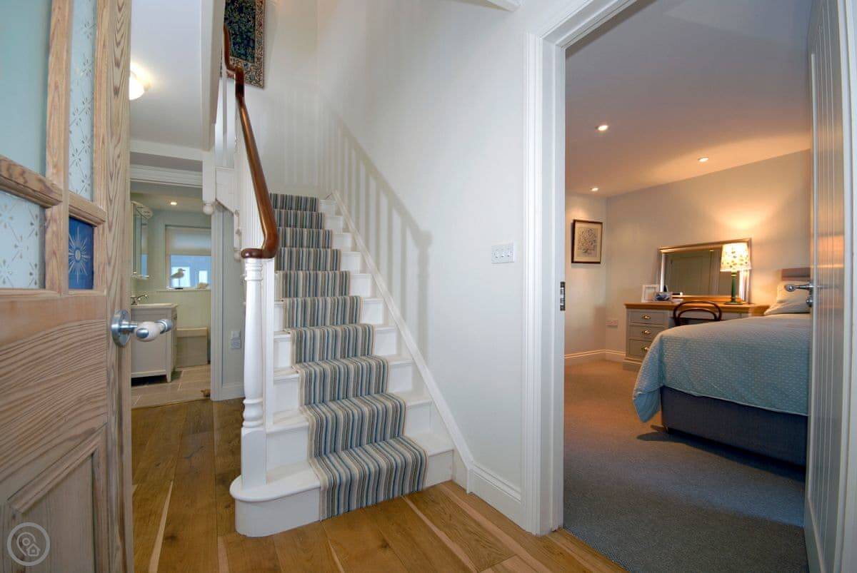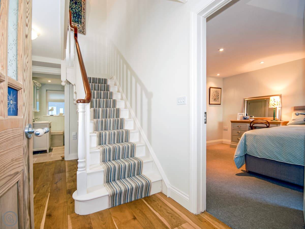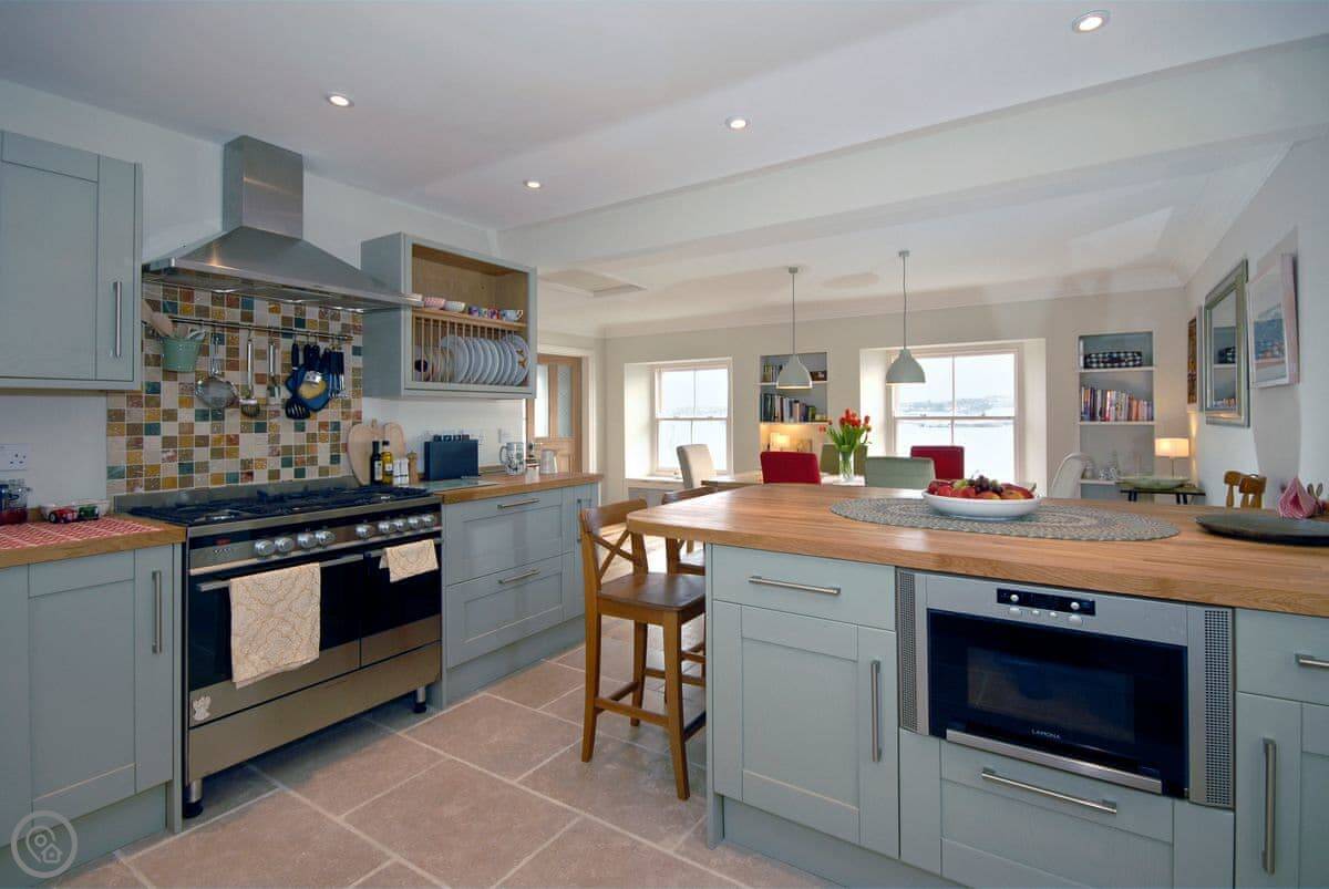 Set in the ancient waterside village of Llanstadwell looking out over the broad tidal sweep of the waterway. Skillfully designed to maximise the glorious Waterway views, the house is designed with elegant bedrooms on the first floor and an open plan kitchen/dining room and living rooms on the second floor. Beautiful, panoramic views can be enjoyed from the delightful summerhouse, a perfect vantage spot to sit and relax and watch the ever-changing Haven Waterway. Furnished to the highest standards and complimented by the excellent decor - the attention to detail throughout creates a wonderful self-catering cottage. Luxury fitted kitchen, with wine fridge, and a dining area with fantastic views. The elegant lounge has an oil burning stove perfect for cosy nights. Doors from the lounge open into a small study from where there is access across a bridge to the rear lawn. Follow the steep stone steps up from the lawn to the summerhouse.