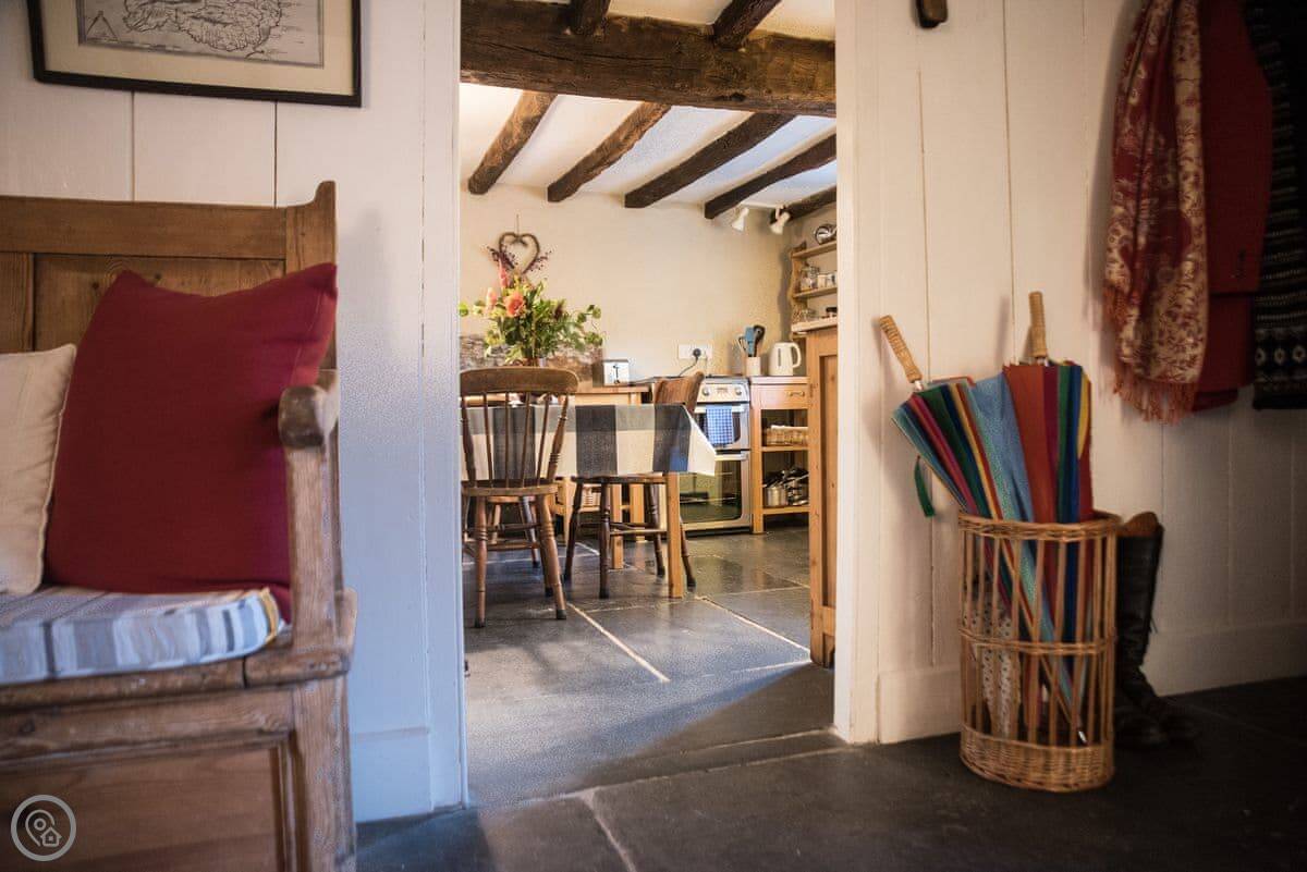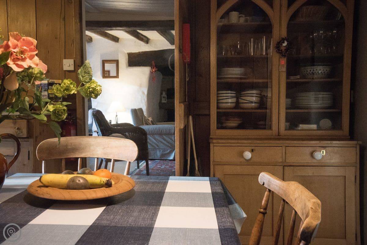 Set in a most picturesque romantic location at the edge of a pretty lake, this idyllic 17th Century fairy tale cottage is surrounded by ancient oak woodlands. Beautifully restored, completely in keeping with its original character, the cottage has thick stone walls, a huge inglenook fireplace and stone turned staircase leading to the bedrooms which are separated by the original elm wooden post and panel partitions. Once upon a time it was a small tavern, now Grade II Listed, and it takes little imagination to visualise the local menfolk sitting in the inglenook with their clay pipes whiling away time whilst swapping fireside stories! The cosy comfortable lounge is stylish and the adjacent kitchen/dining room has free-standing pine units and an early Victorian pine dresser. Pretty ornaments adorn all the small windows of the cottage from where there are views of the meadow and lake beyond. Stargaze on clear nights, there is a telescope upstairs, no light pollution just myriad stars to enchant!