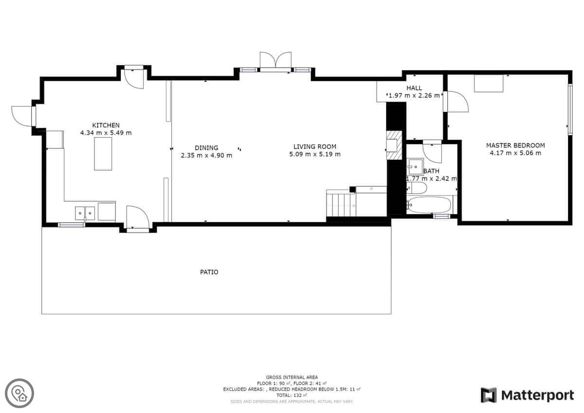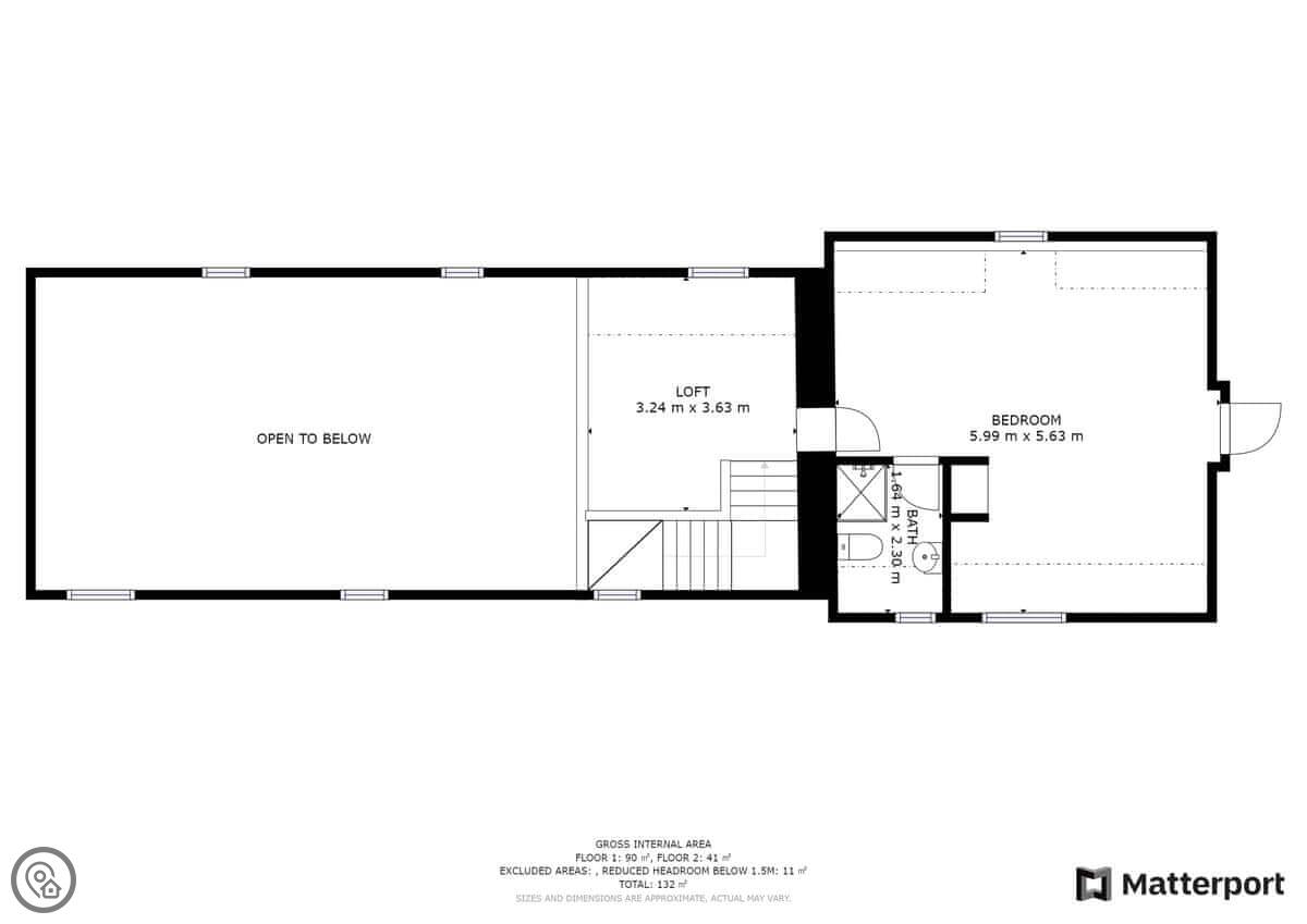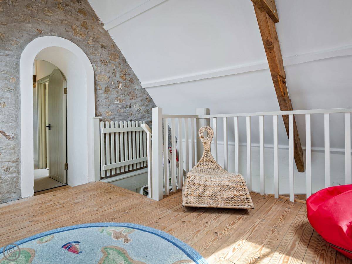 You've got an open plan living area downstairs. Up a flight of stairs there's a mezzanine level with some extra seating if someone wants a bit of space.