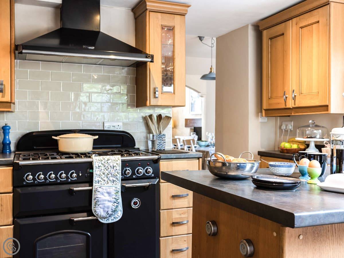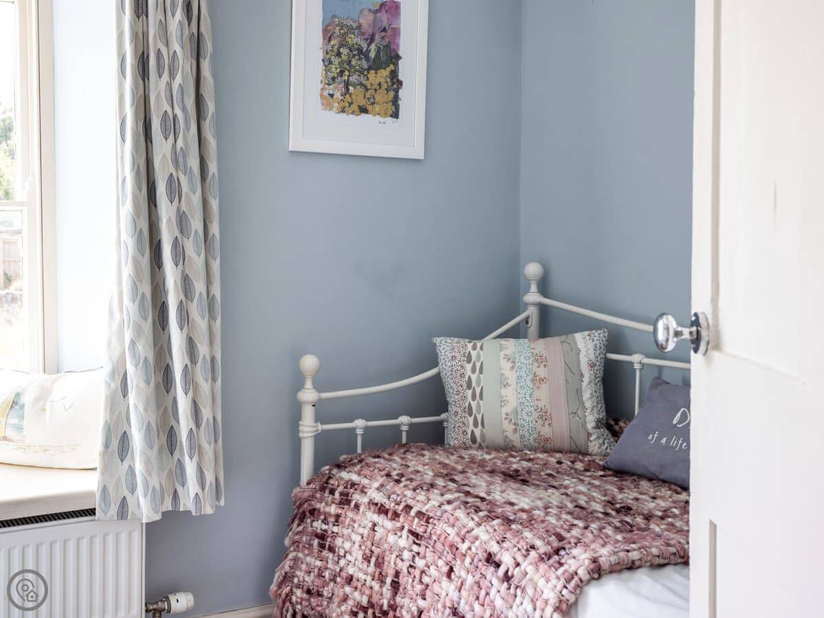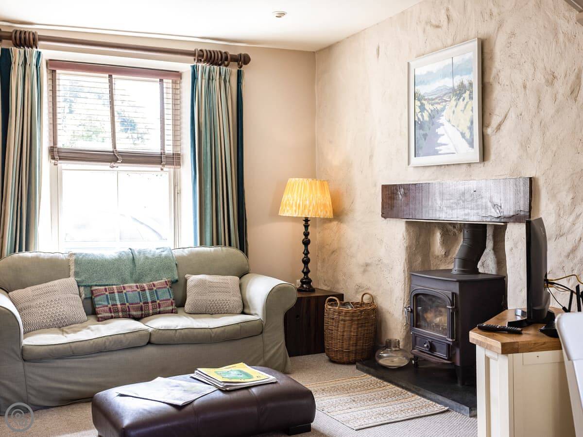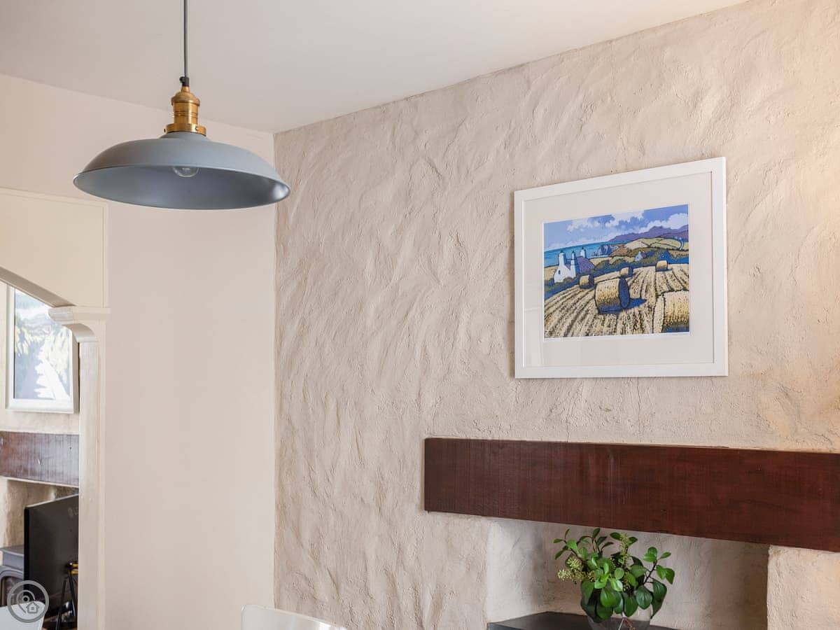 In terms of what’s here: it’s got a wood burner, a dishwasher, washing machine, WiFi. We provide the bedding and towels. One well-behaved dog is allowed. There’s a cot and a highchair if you need them.