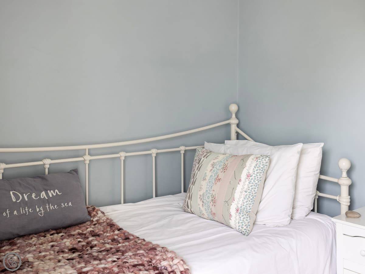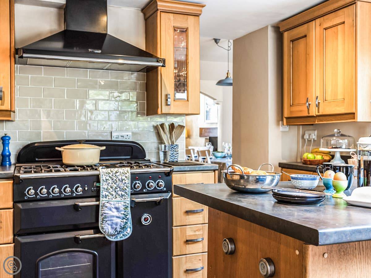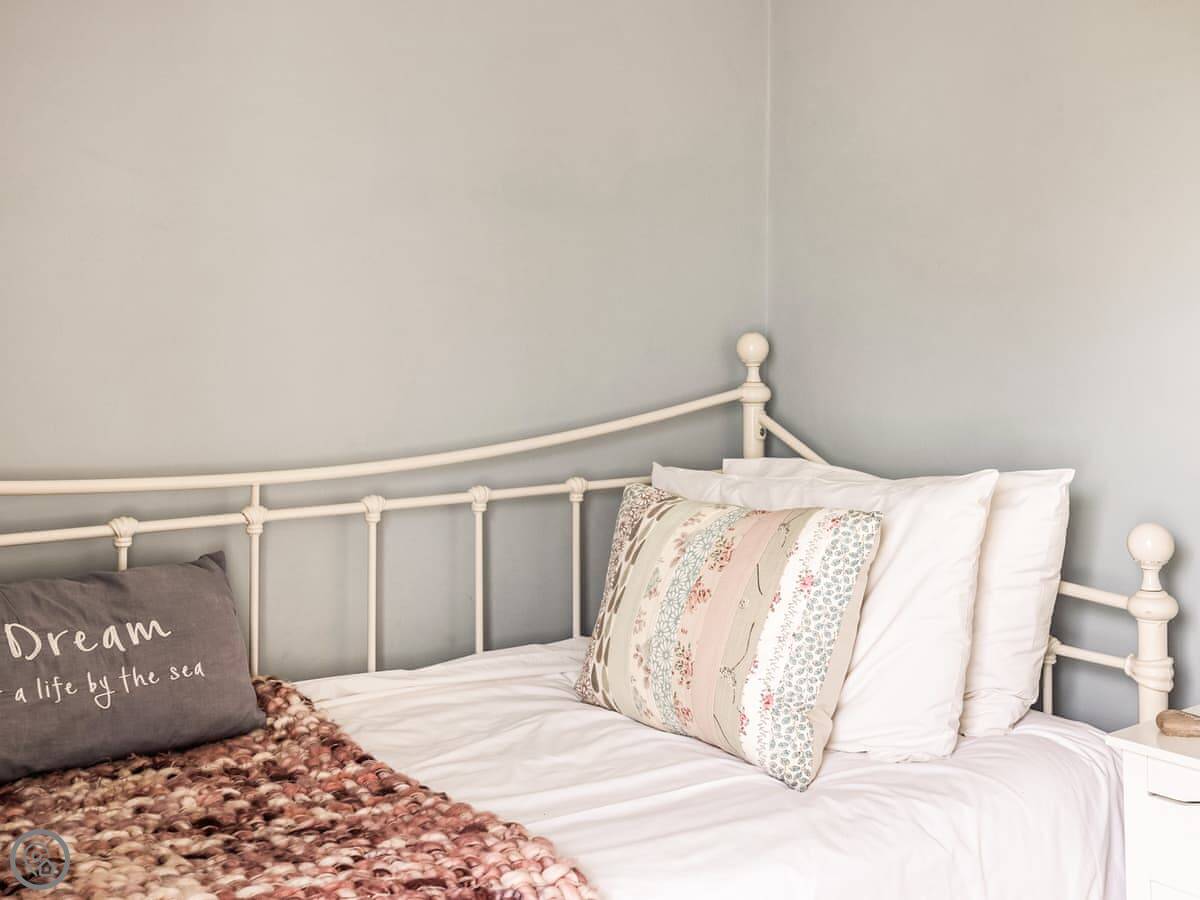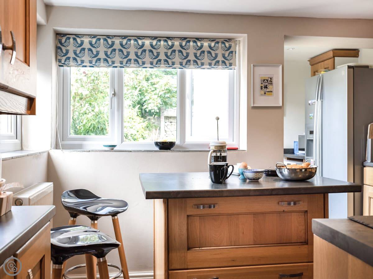 In terms of what’s here: it’s got a wood burner, a dishwasher, washing machine, WiFi. We provide the bedding and towels. One well-behaved dog is allowed. There’s a cot and a highchair if you need them.