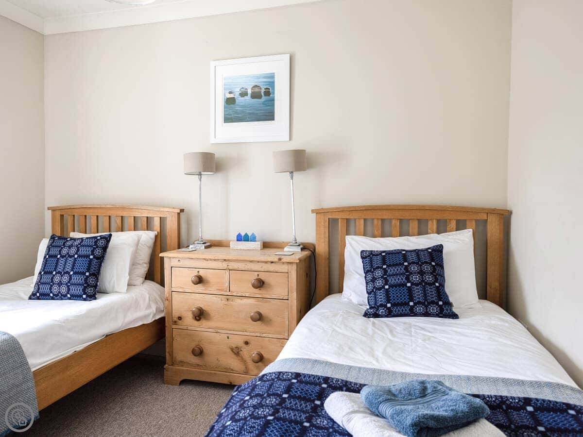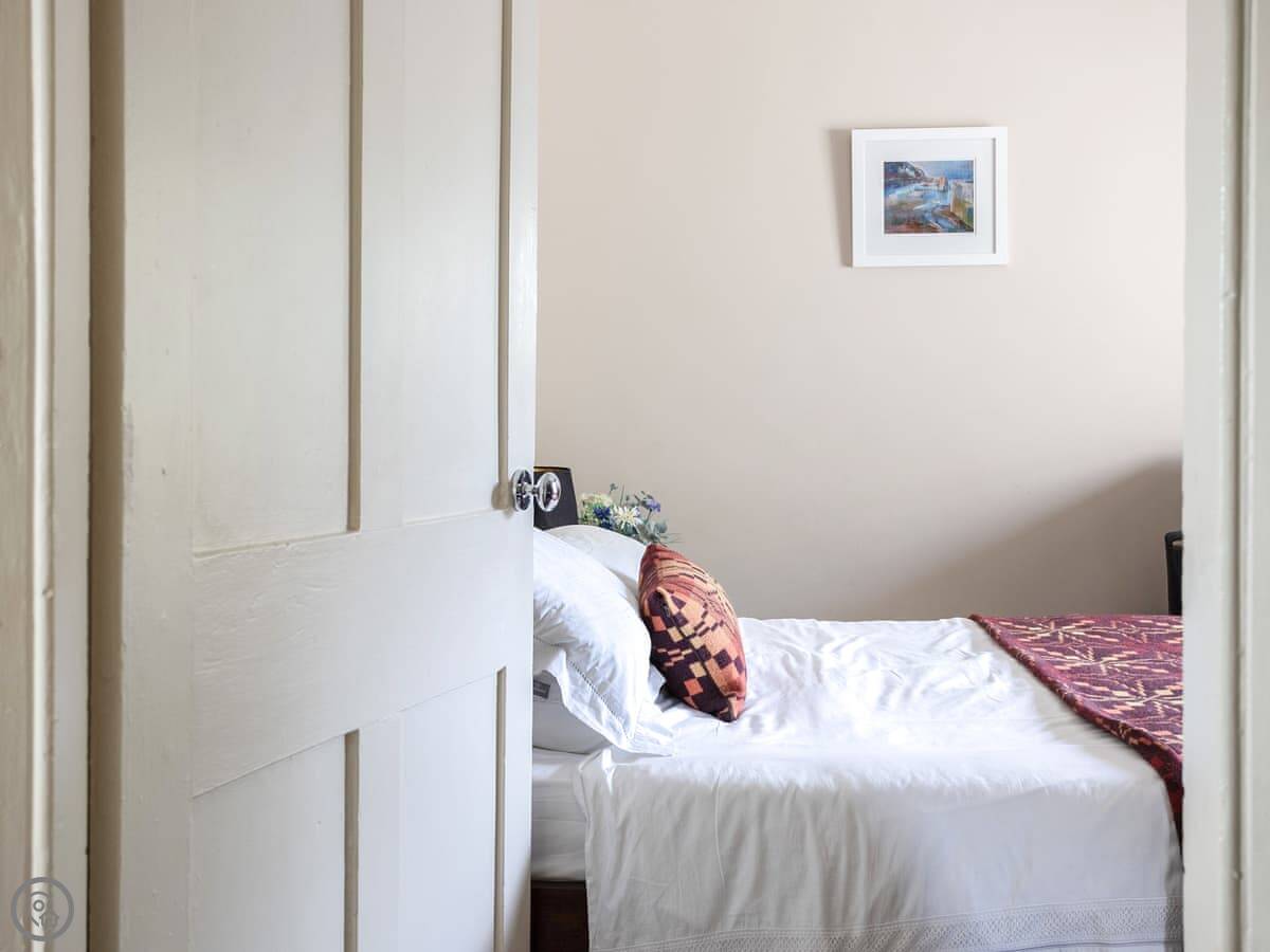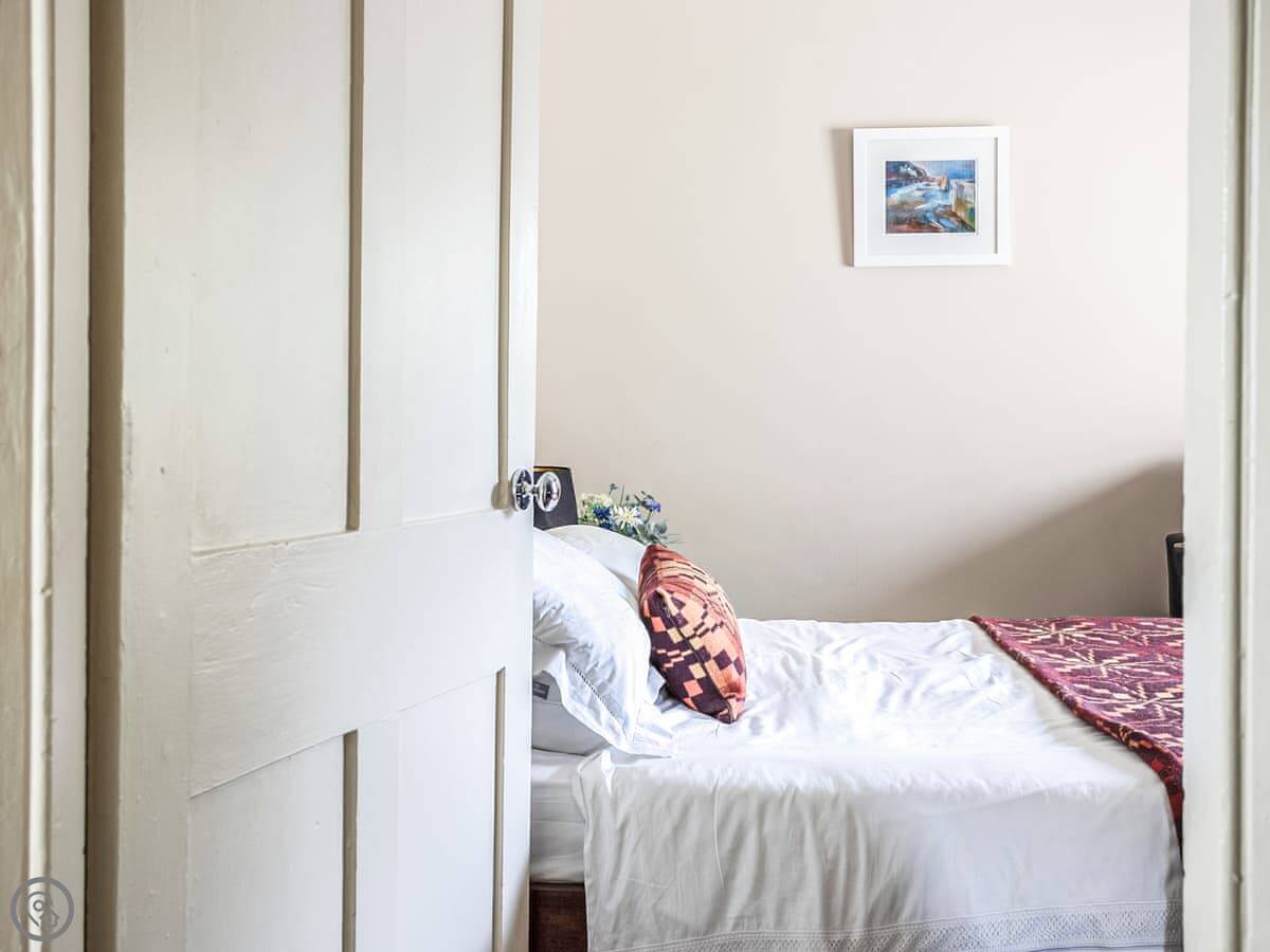 You’re a minute’s walk from the cathedral, the Bishop’s Palace, and the local shops. There’s a good pub about the same distance away. For a proper beach day, you need to drive. Whitesands Bay is about ten minutes by car. It’s one of the best.