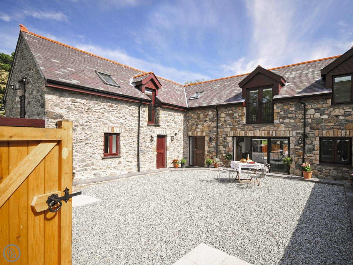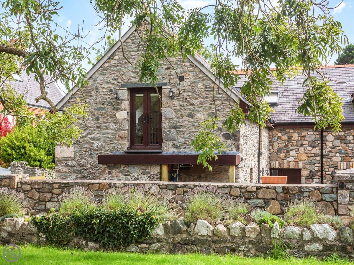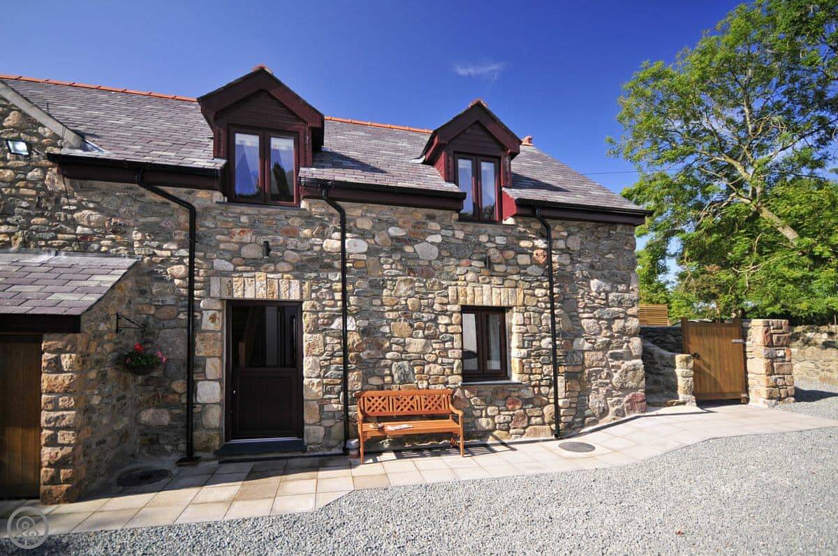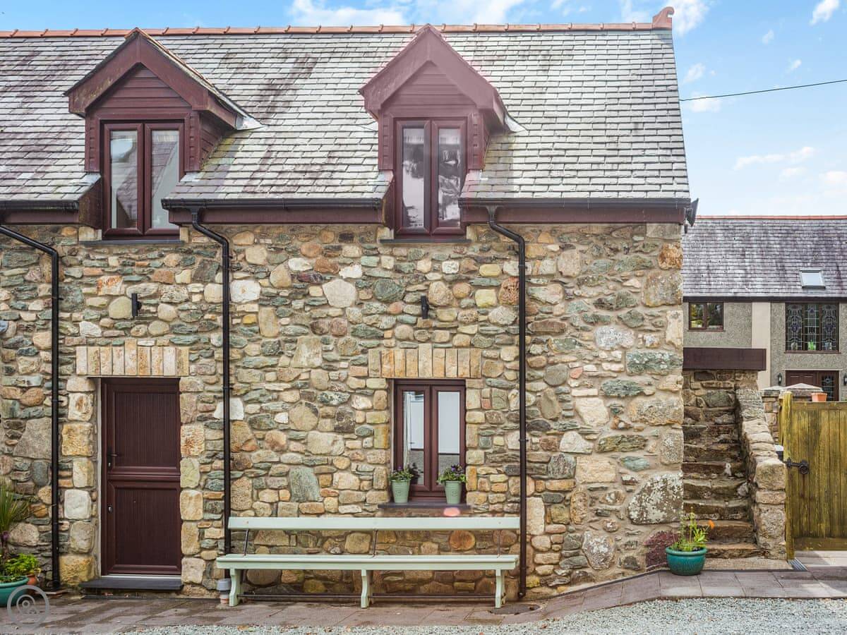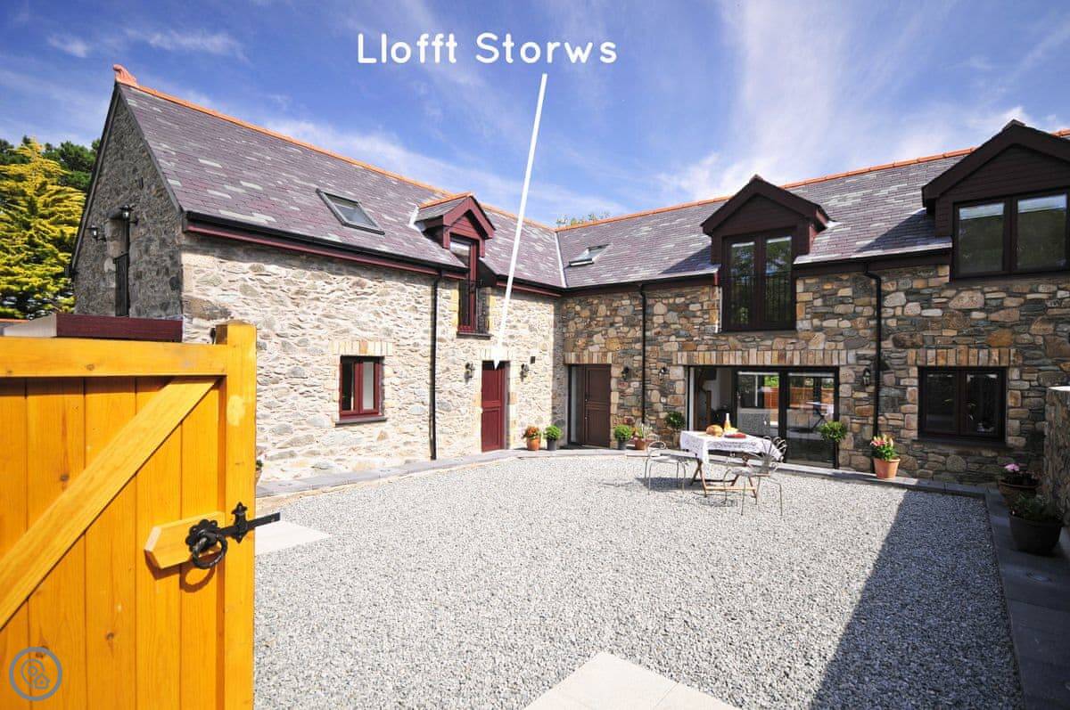 Llofft Storws is a cottage on Anglesey, in a place called Trefdraeth. It's the smallest of three properties here at Plas Marian. Sleeps four, in two bedrooms. Both bedrooms are downstairs and both have their own bathroom.