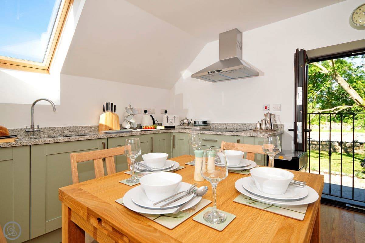 Outside, there's a shared lawn at the front with some garden furniture you can use. Each cottage gets its own set for playing skittles. You have your own parking spot.