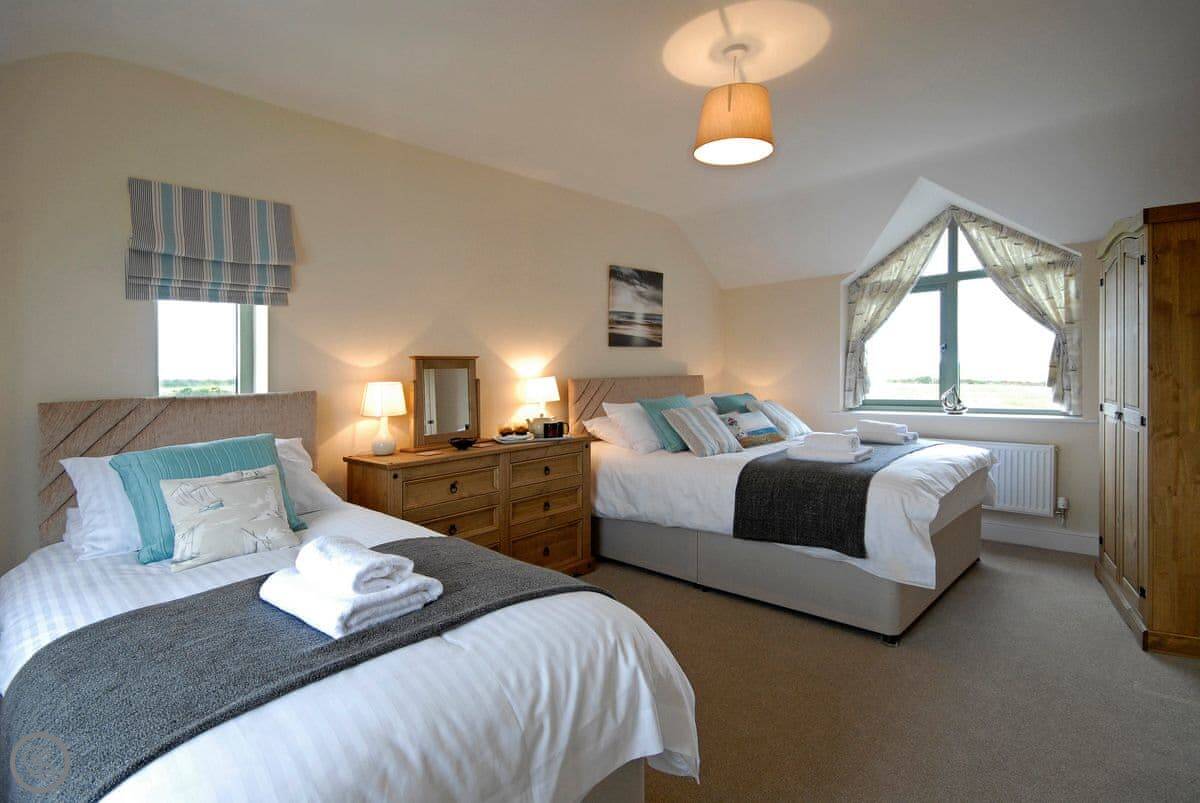 This spacious, year-round retreat, is perfect for families and friends. Skylark has recently been constructed to a very high standard, with locally sourced stone detailing and large windows allowing light to flood each of the interior spaces. The attention to detail continues in each of the rooms, from the vaulted ceiling of the modern, well equipped kitchen diner, to the full height arched window illuminating the stair and landing, this is a beautiful clutter-free home. On colder nights snuggle into the comfortable sofas and relax in front of the cosy wood burning stove, whilst warmer summer evenings call for the bifolding doors to be opened from the dining room onto the garden patio, perfect for some alfresco dining. Following an enjoyable day, exploring the Cathedral City, the coastal path and beautiful local beaches, all just within a very short drive, escape the crowds and retreat to the quiet of your very own home from home, in this special corner of Wales. There is ample parking for 4 cars and a small paved terrace and lawn garden surrounded by a traditional Pembrokeshire hedge.