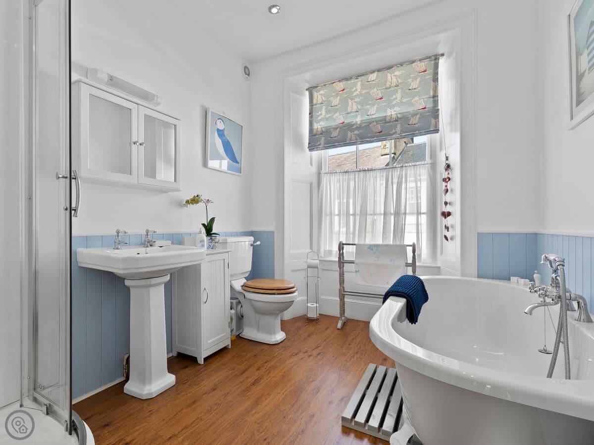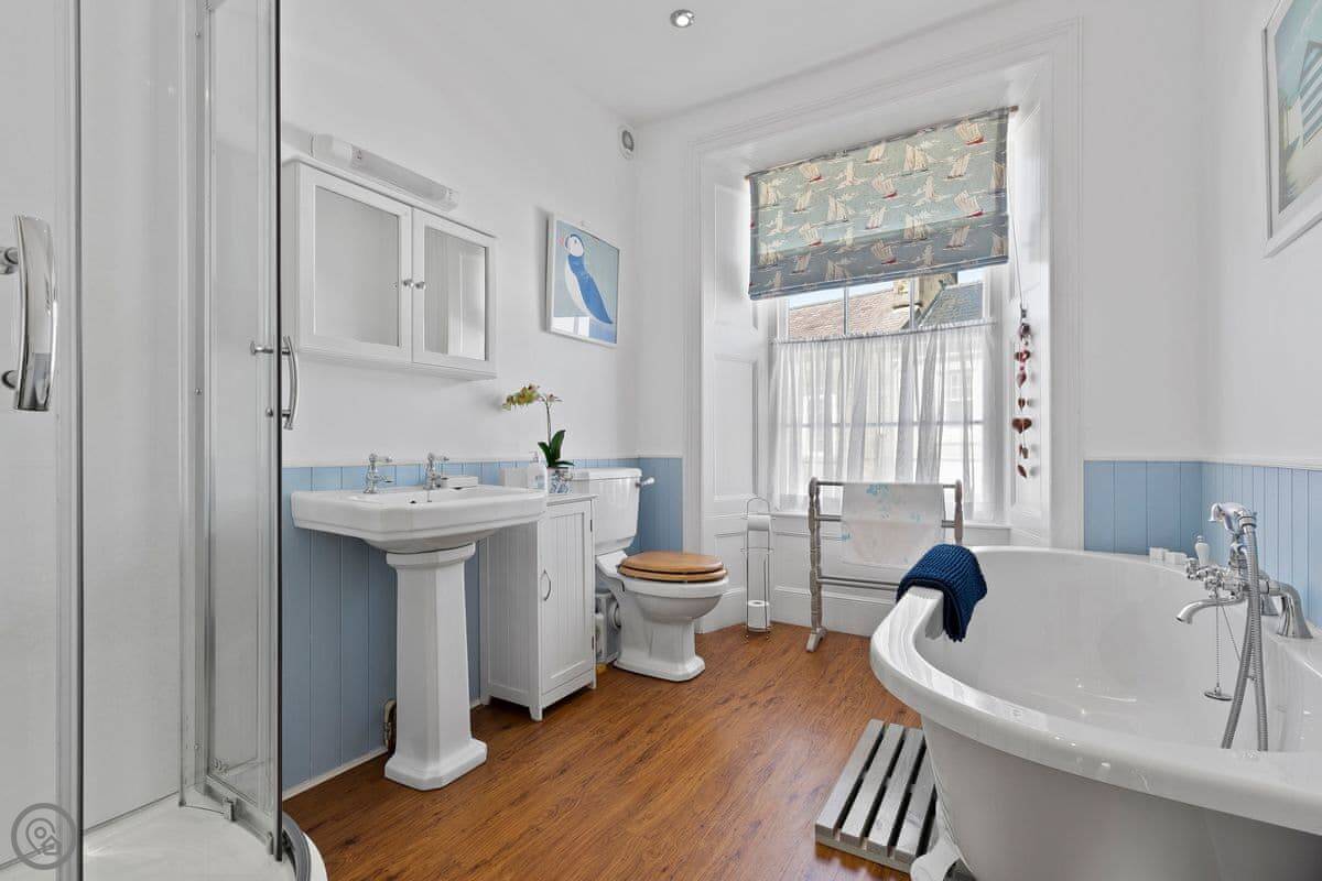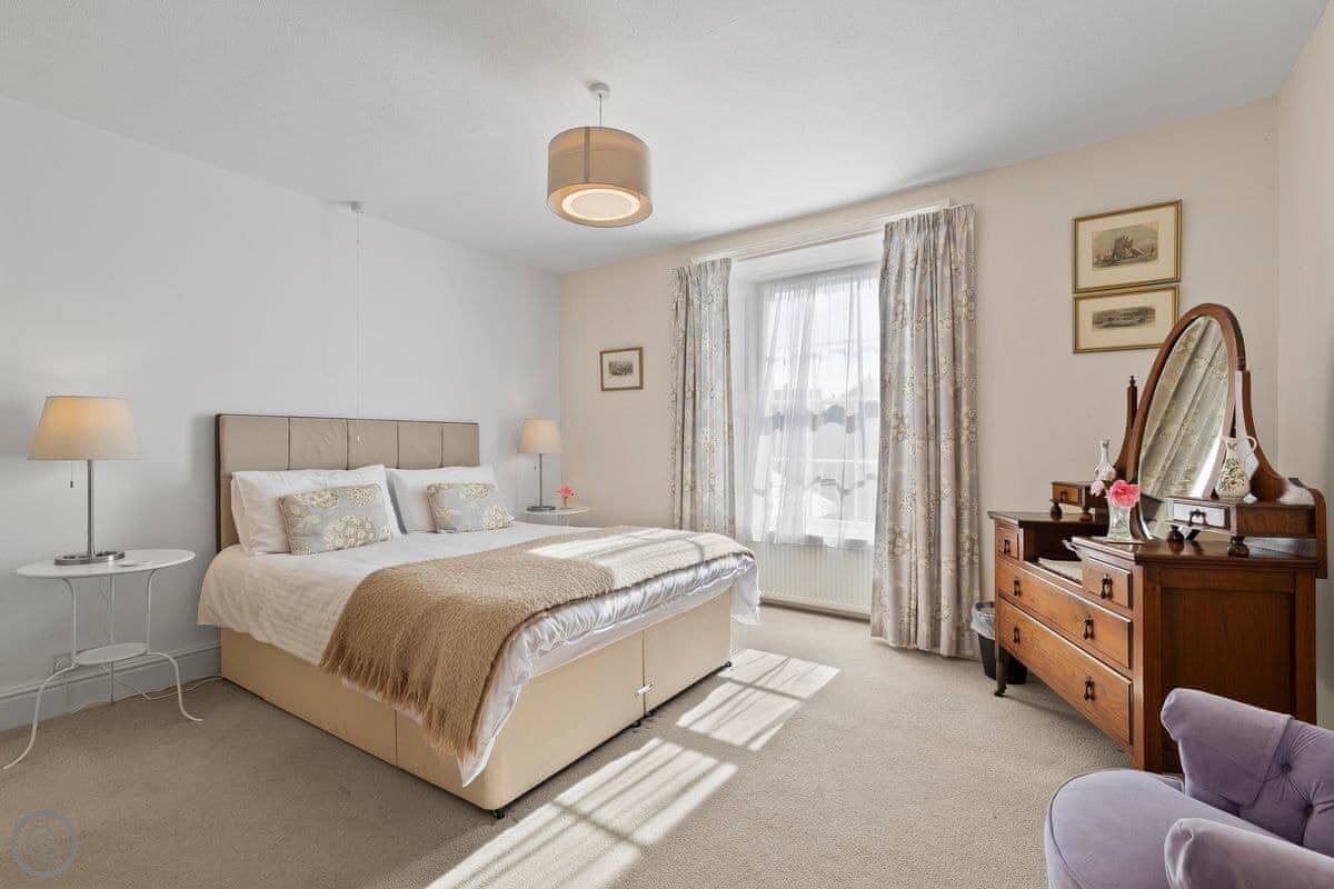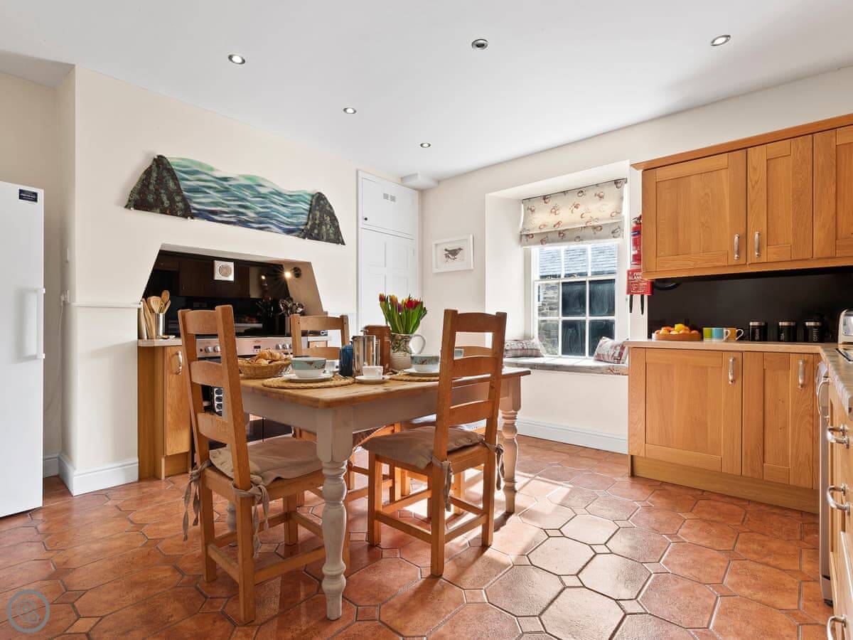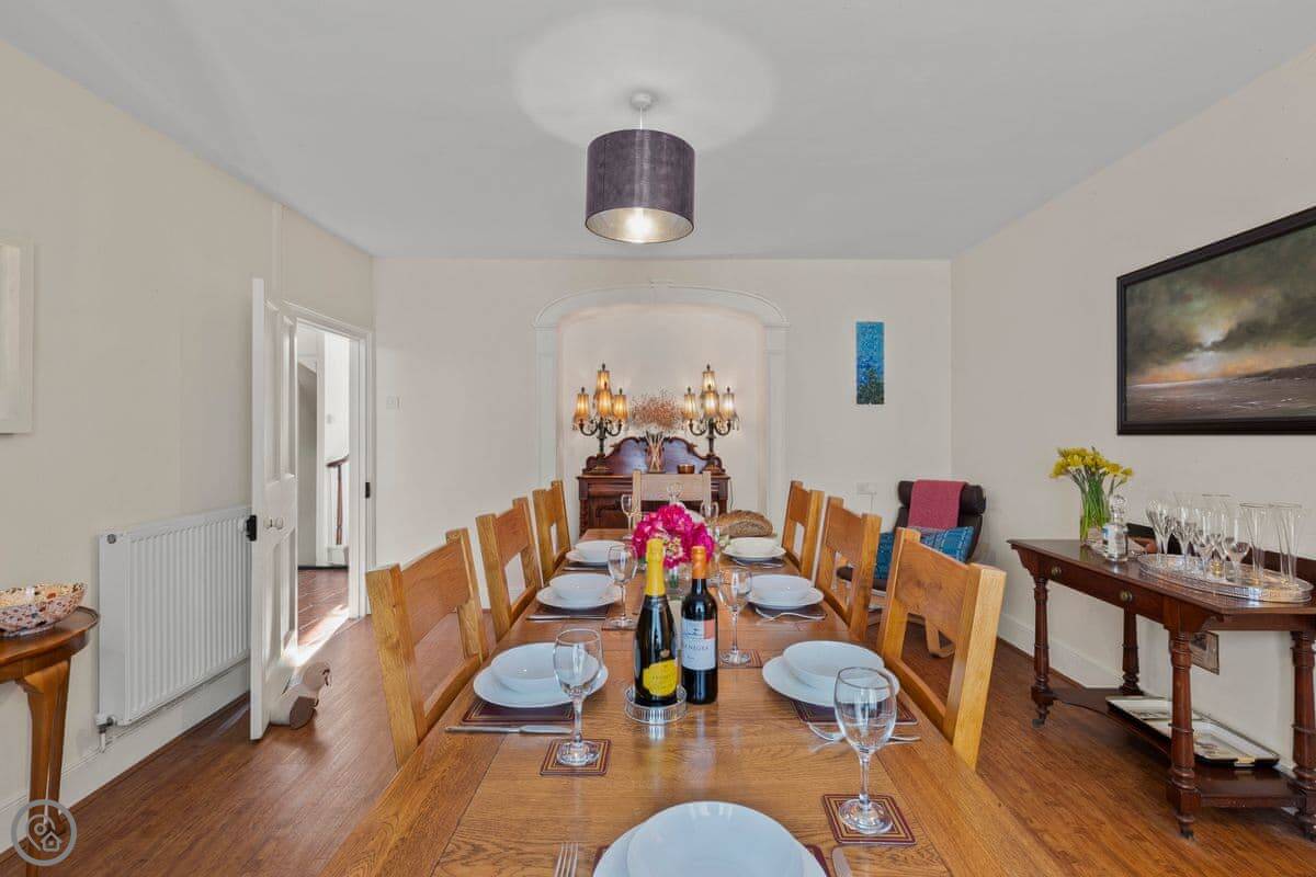 In the heart of St Davids, New Cross House, a beautifully renovated Grade II listed Victorian house sleeps 8Stylish and comfortably furnished, New Cross is the perfect setting for a St Davids holiday. Catering for all your accommodation needs, the house has four large bedrooms, a luxury fitted kitchen, large dining room and a sitting room with slate fireplace and three big squashy sofas. Once you’re settled in, step out into one of St Davids finest walled gardens. The grounds are private with a lovely raised lawn, bordered by paths, evergreen shrubs and seasonal flowerbeds. The patio has garden furniture for sheltered outdoor meals in the walled garden, or enjoy fantastic barbecues from the fire pit - built under a slate roof, usable in all weathers. When the pressure of being on holiday becomes too great, retreat into the sauna for a rejuvenating steam. In poorer weather, you may find the children difficult to lure out of the games and TV room. With table tennis, pool and table football to entertain them they might just want to spend the week playing in the attic!Step from your front door onto Cross Square and enjoy the independent shops and galleries, pubs and restaurants that St Davids has to offer.