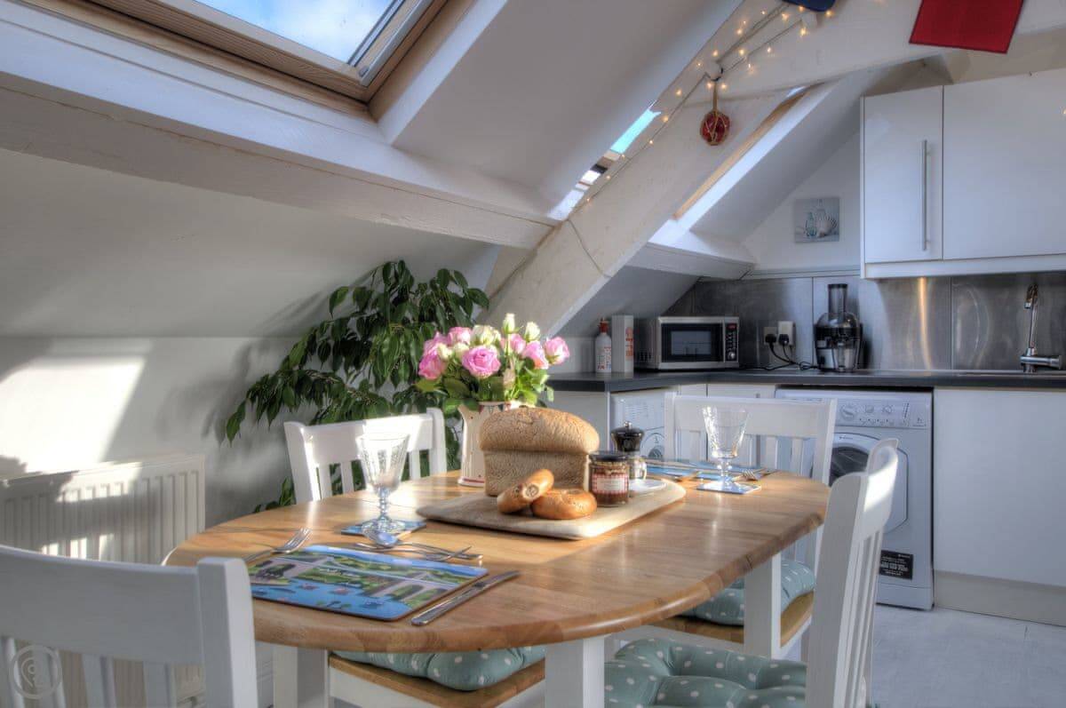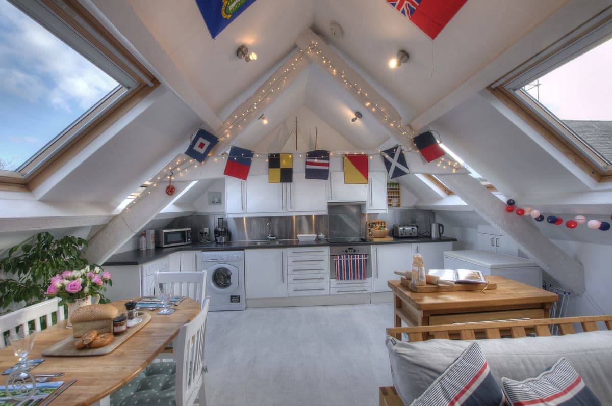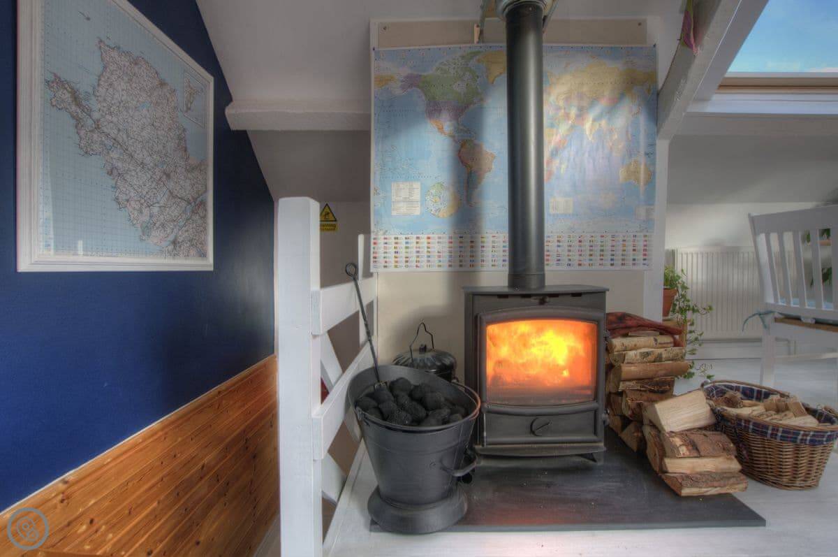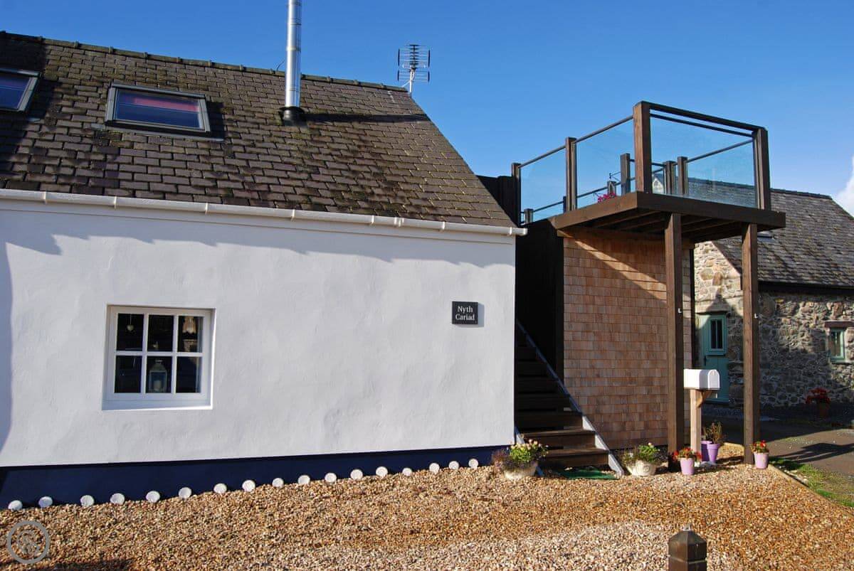 Nyth Cariad, meaning ‘love nest’ in Welsh, was inspired by St Dwynwen, Wales’s patron saint for lovers. The charming cottage reflects the taste of the Anglo-American owners, with clapperboard exterior walls, whitewashed floorboards, and beams, providing a touch of Cape Cod with its seashore atmosphere. Walk up the steps to the first-floor entrance and be greeted by the cosy living area, with wood burner, fairy lights along beams, and an eclectic mix of decorations, which combine to give the property its romantic charm.