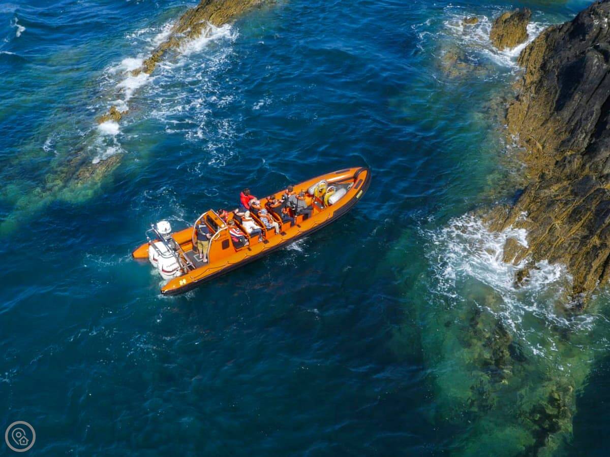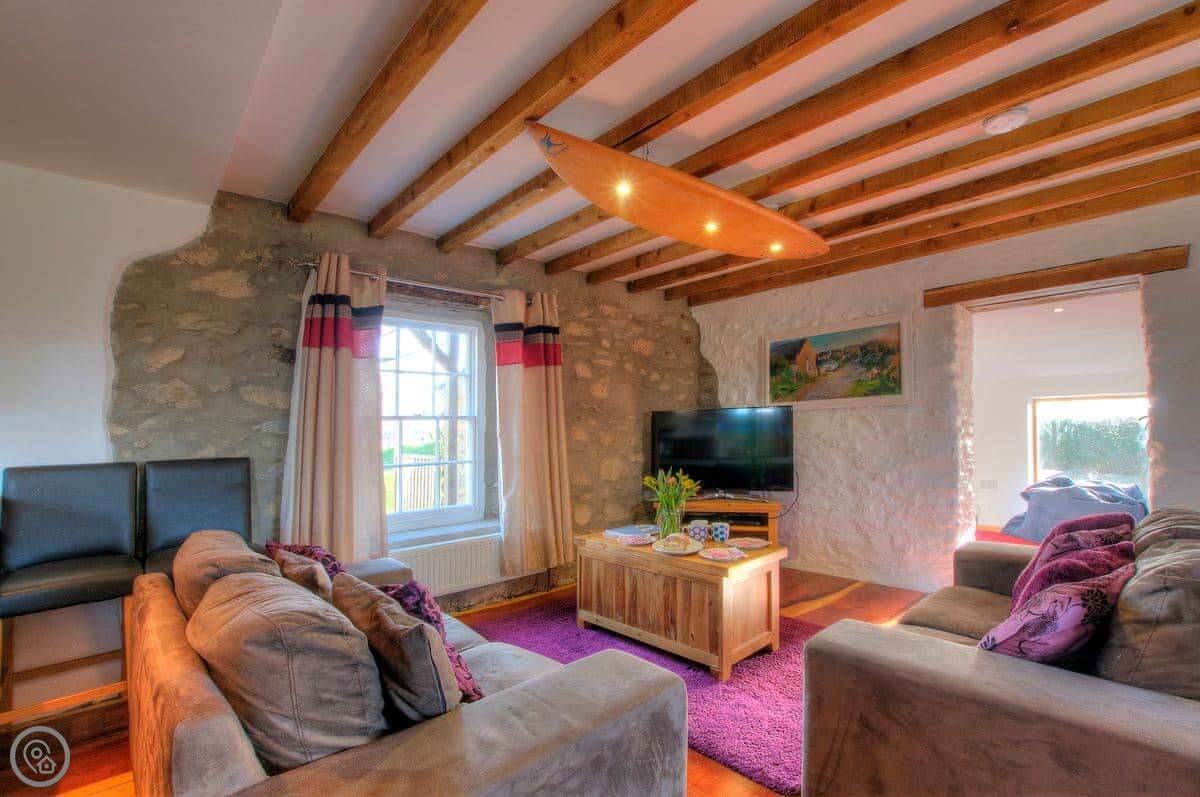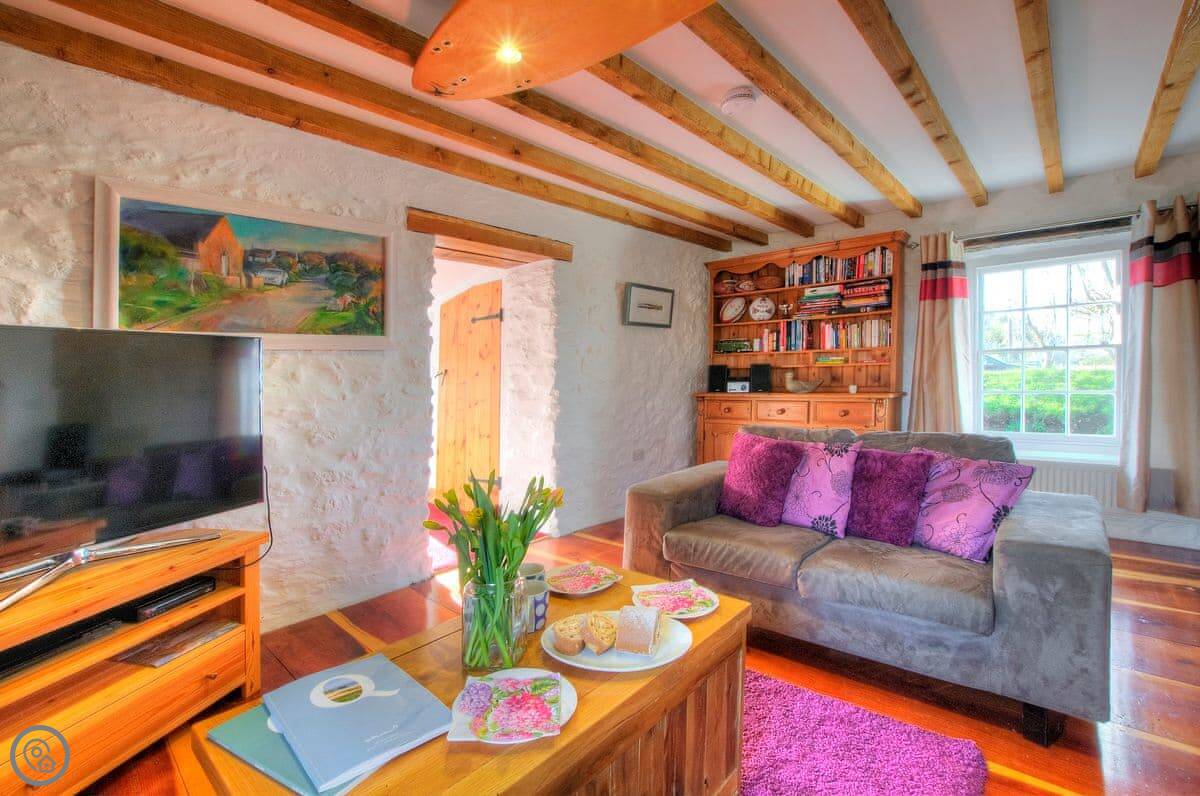 This cosy cottage is located in the tiny coastal hamlet of St Justinians close to the Lifeboat Station and the Pembrokeshire Coast Path and less than 2 miles from Britain’s tiniest city of St Davids. The skillful conversion of this interesting old chapel, built in 1864, offers open plan living space with a kitchen/dining/living room on the ground floor. Upstairs the two bedrooms both have Velux windows giving tantalising distant views of the sea. The decking area at the side of the property is a great spot to sit and relax with a glass of wine after a busy day exploring the Pembrokeshire highlights. Enjoy distant views over St. Davids from the large hot tub, what better way to get the holiday celebrations underway than a relaxing soak with the twinkling lights of St. Davids in the distance? Rhosson Chapel Cottage is a great bolthole in a quiet rural area and has all the modern day comforts to ensure a truly memorable St Davids Peninsula holiday. Beach ½ mile. Pub and restaurant 1½ miles.