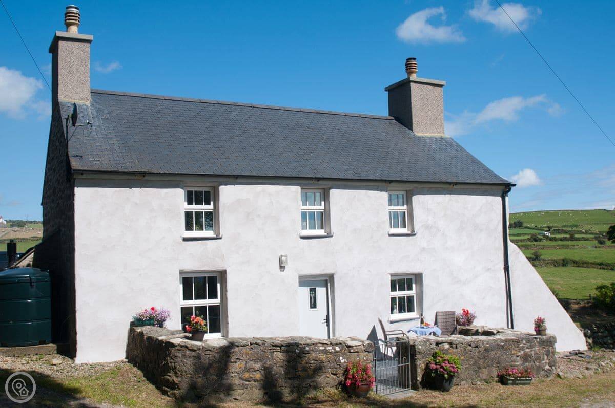 Bwlchgroes is in Garnfadryn, on the Llŷn Peninsula. It's a detached stone farmhouse. We think it dates from about 1840, possibly earlier. You're on your own up here, just fields and views.