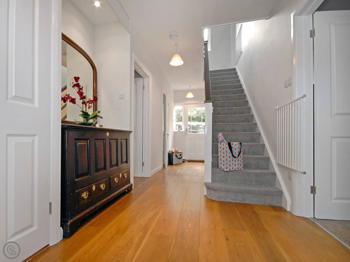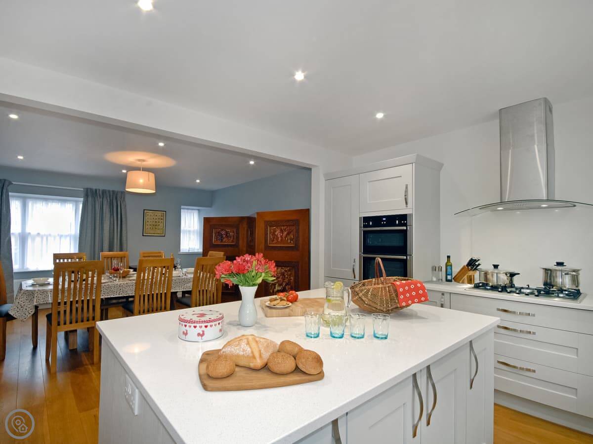 This home offers spacious and stylish interiors with parking in the centre of St. Davids and enjoys a magical location. Sitting above the Cathedral, commanding wonderful scenic views across the valley, Allt yr Afon is perfectly placed for families and friends wishing to explore the delights in the area. Beyond the front door, a warm welcome awaits. Leading from the spacious hallway you’ll find the large calm and spacious sitting room which runs the whole length of the house. Beautifully decorated, with two separate sitting areas, each adorned with local art. Relax in the more formal area with fireplace, or enjoy a DVD or watch TV in the rear seating area. The property offers a superfast fibre broadband Wi-Fi connection. You will be completely smitten with the large, open plan kitchen/dining area with impressive quartz-topped island, sure to inspire some fabulous holiday cooking. Upstairs the sophisticated master bedroom, to the rear, enjoys garden views, and a high-quality en-suite shower room. All bedrooms offer tranquillity, luxurious quality Egyptian linen, beckoning a peaceful night’s sleep, and Welsh blankets. Immerse yourself in the deep bath, in the well-appointed family bathroom, with a large walk-in shower, a heavenly retreat after a busy day exploring.