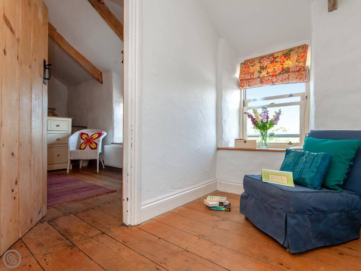 There's a small loft room with a low ceiling, bean bags and a TV. Kids seem to like it. The garden is enclosed with a lawn and some apple trees.