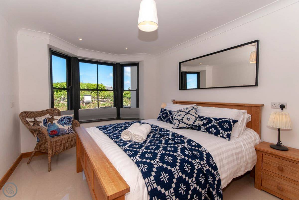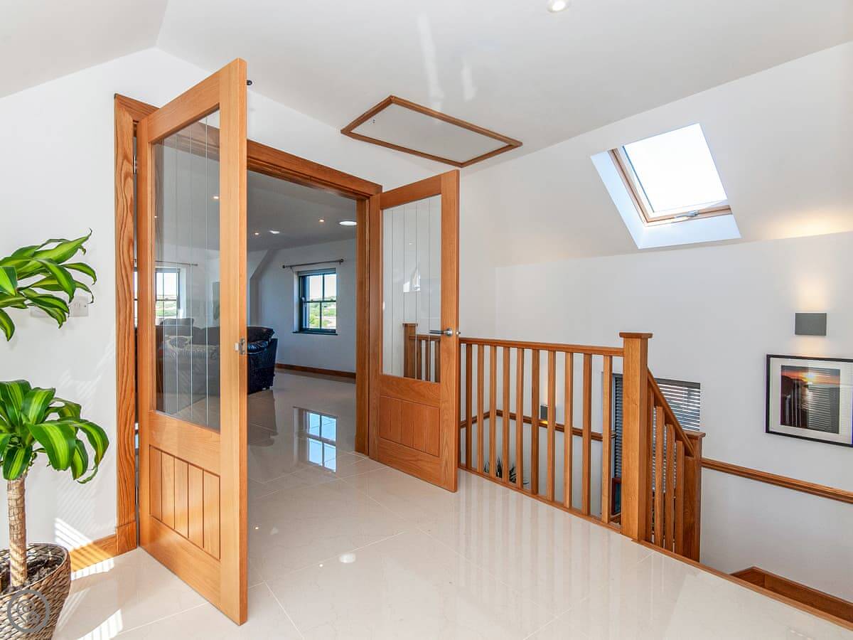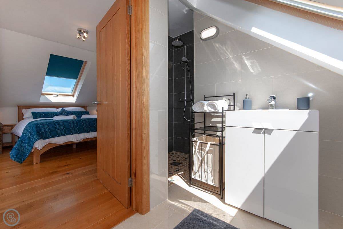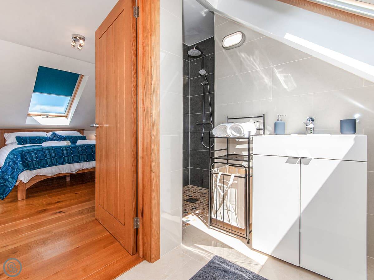 It sleeps six, with three bedrooms and three bathrooms, so everyone gets their own space. It's got a 5 Star rating, which means it's well kitted out and comfortable. The bedrooms are all doubles. One is on the ground floor.