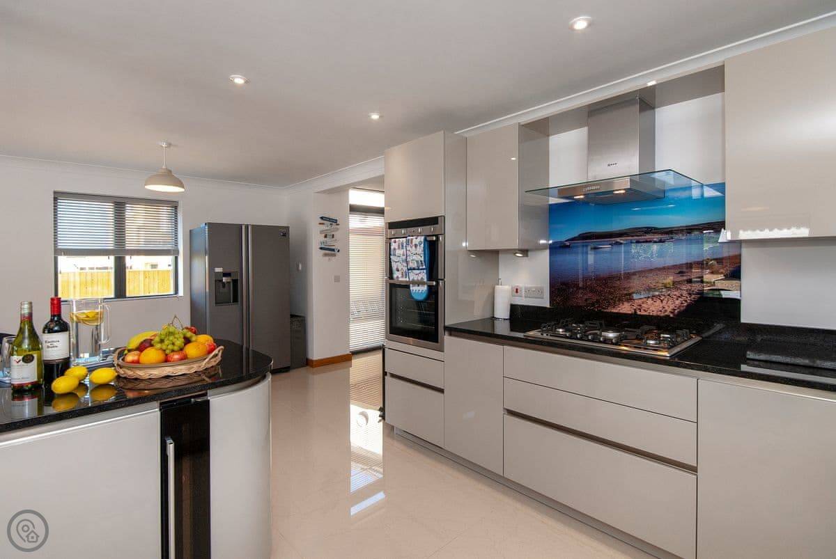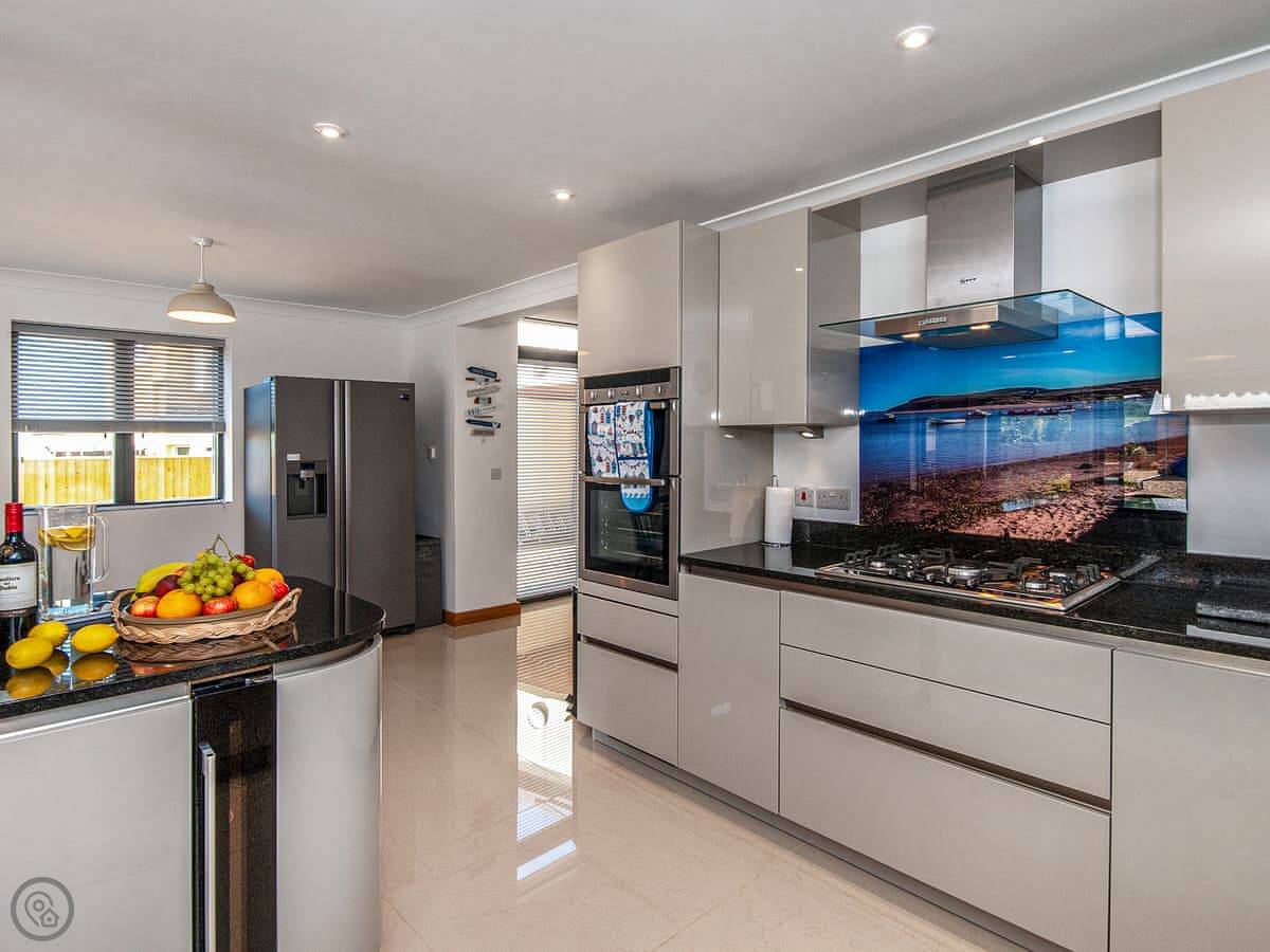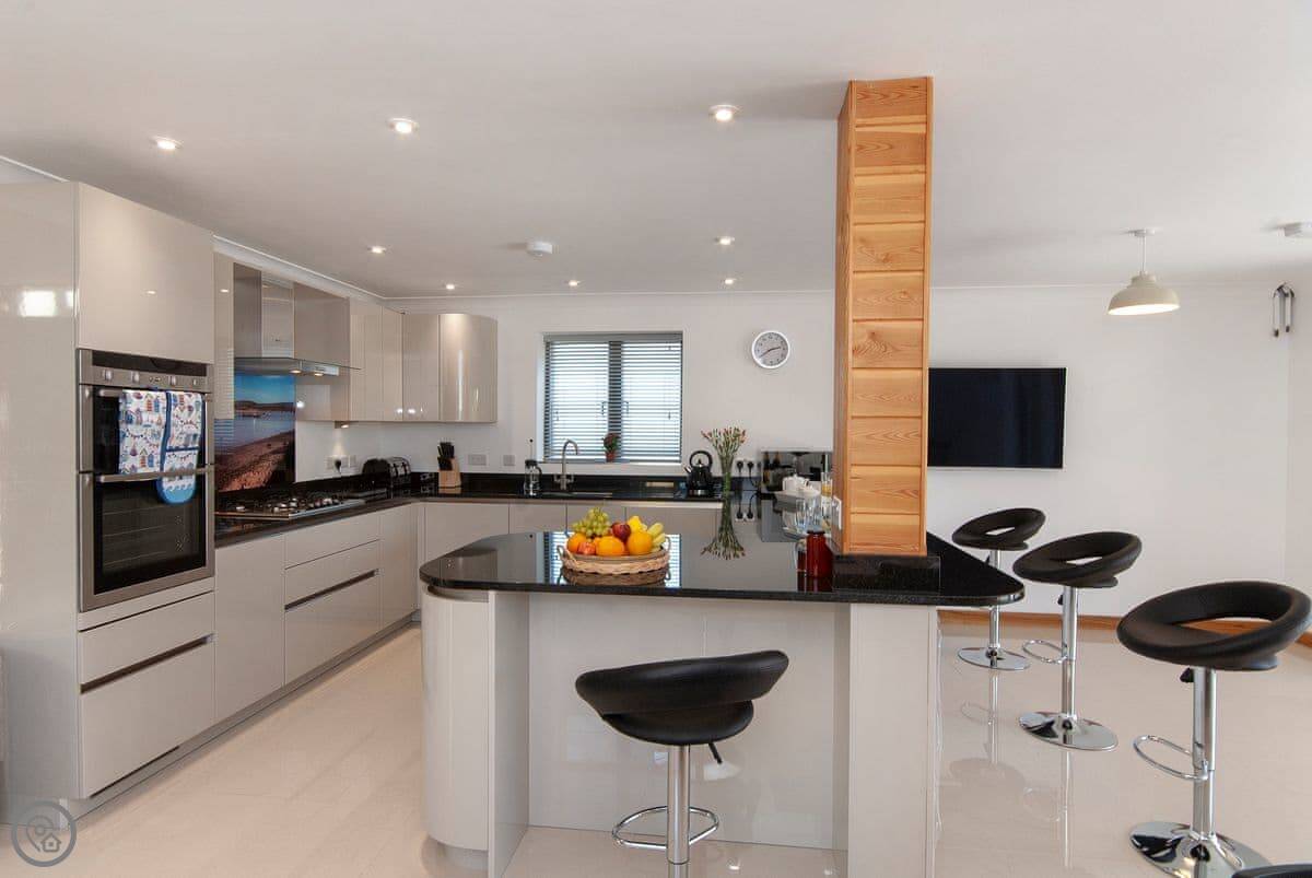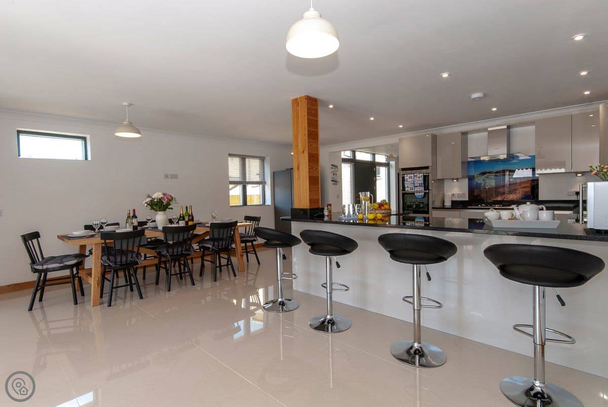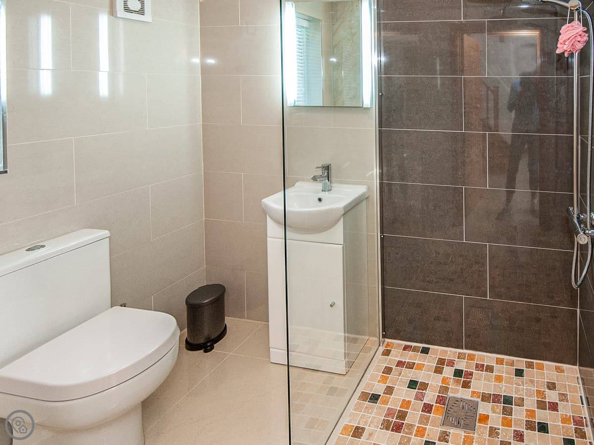 It sleeps six, with three bedrooms and three bathrooms, so everyone gets their own space. It's got a 5 Star rating, which means it's well kitted out and comfortable. The bedrooms are all doubles. One is on the ground floor.