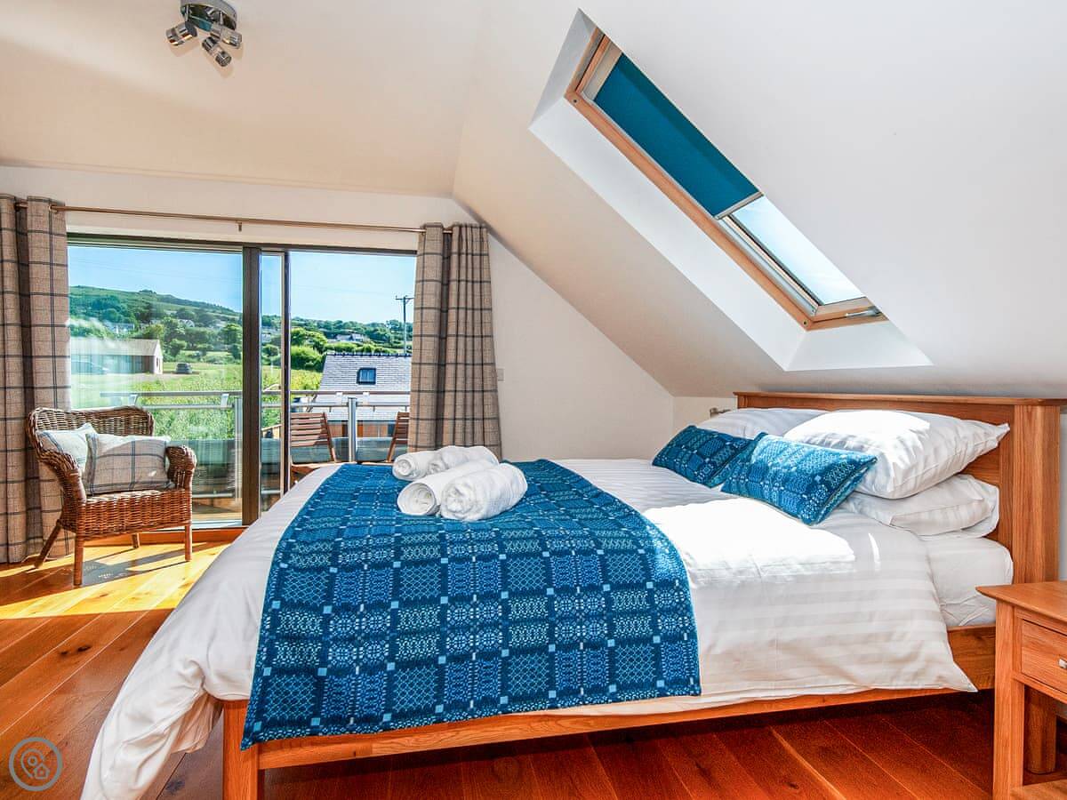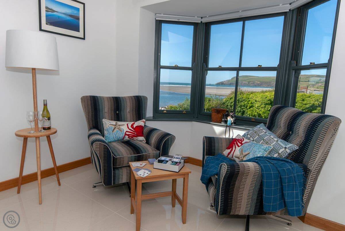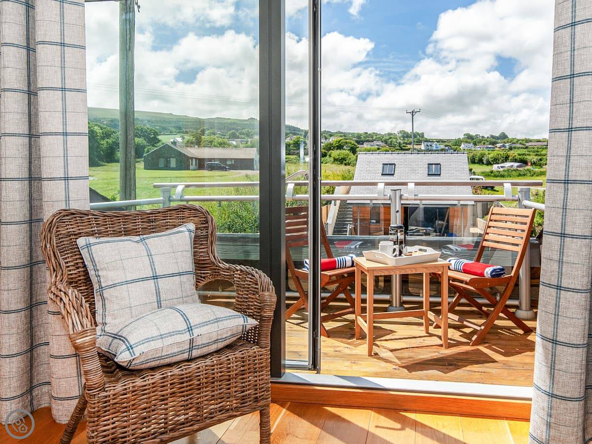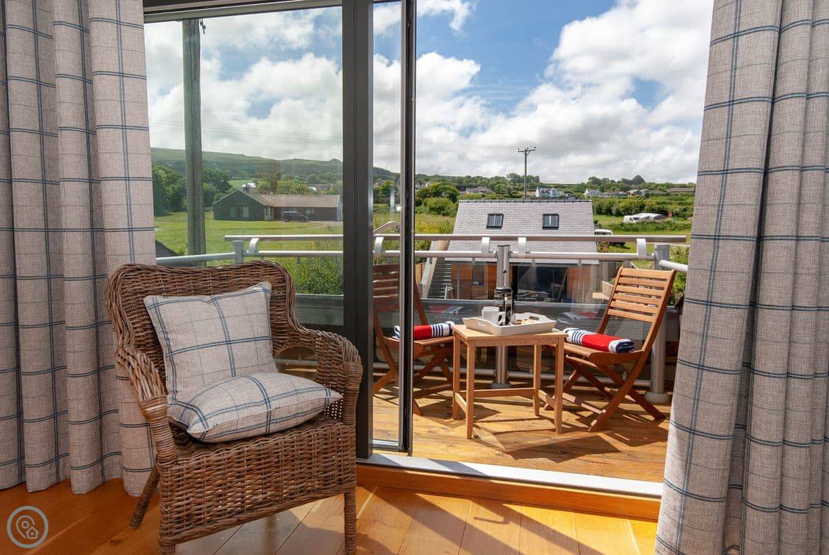 The main sitting room is upstairs to make the most of the view over the estuary. There's also a small reading room up there. The master bedroom has a small balcony.