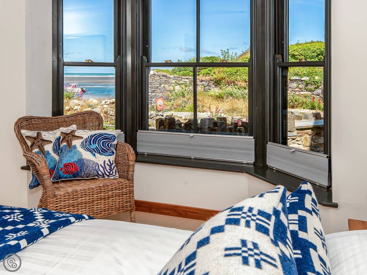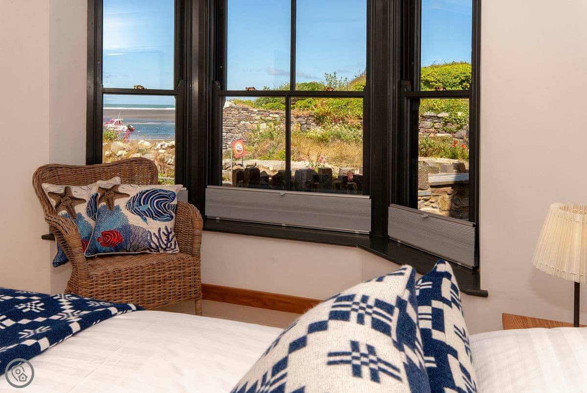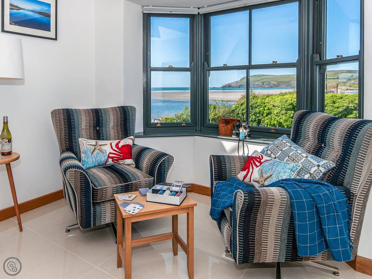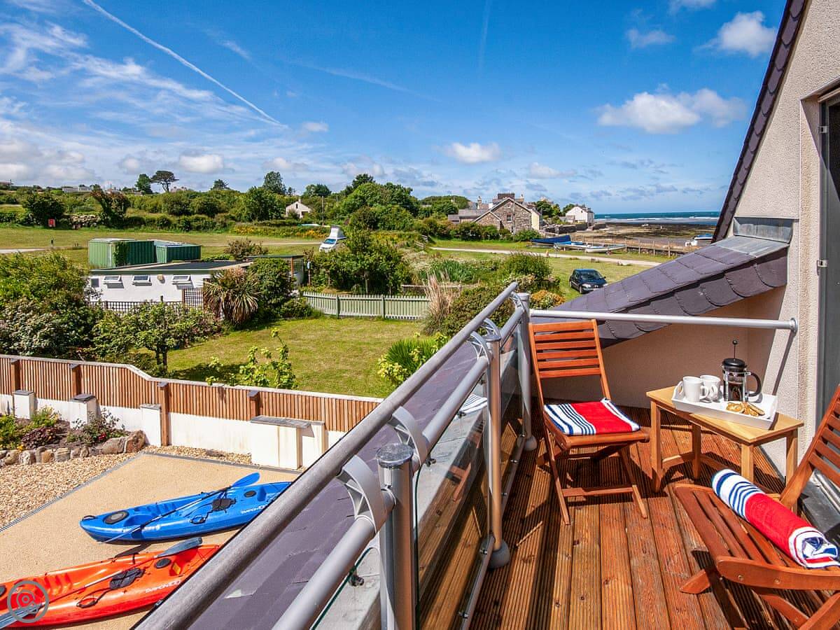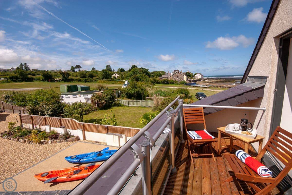 The main sitting room is upstairs to make the most of the view over the estuary. There's also a small reading room up there. The master bedroom has a small balcony.