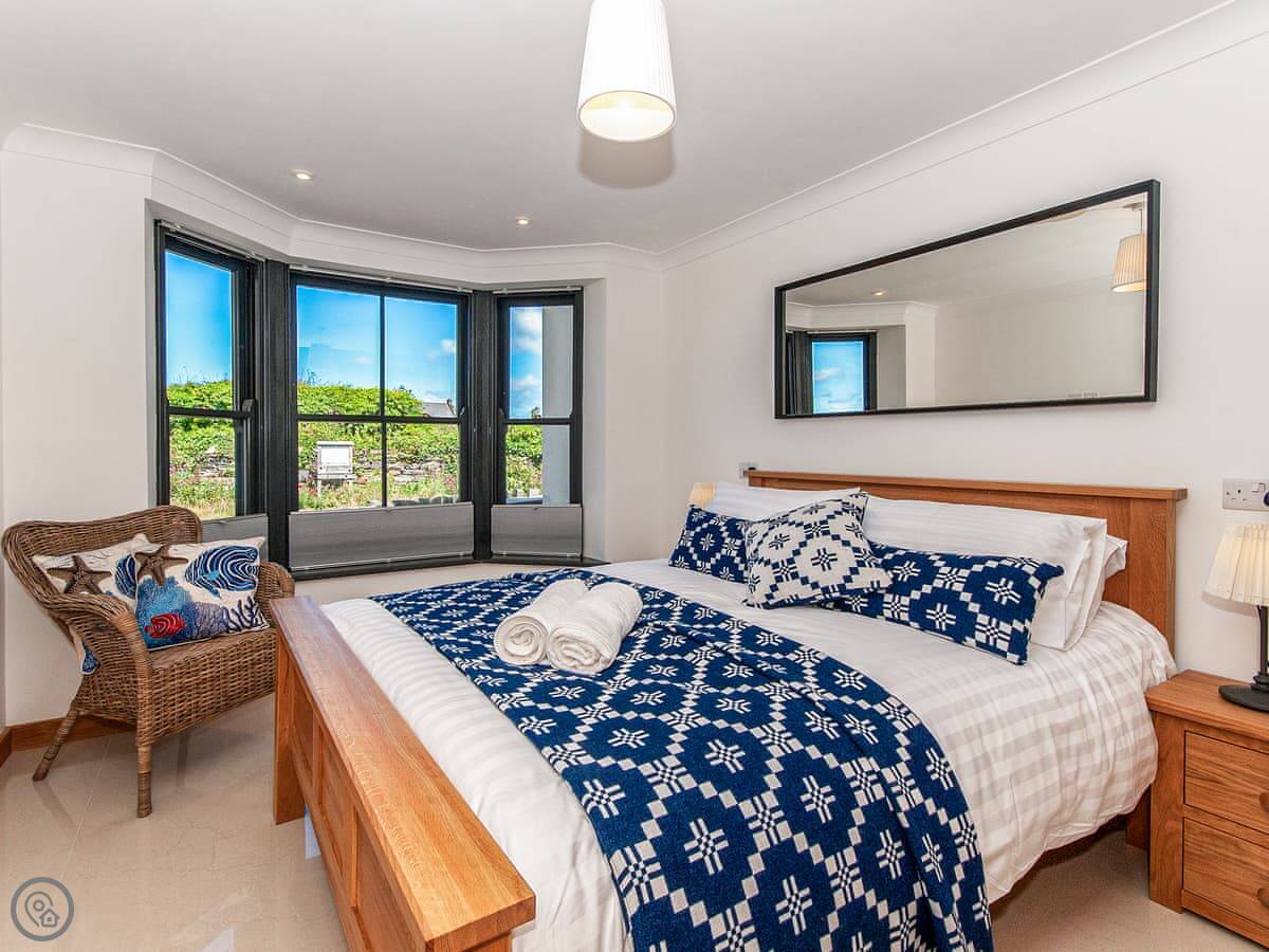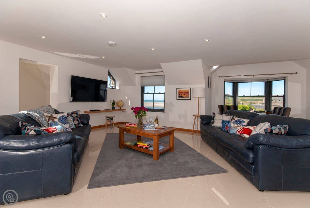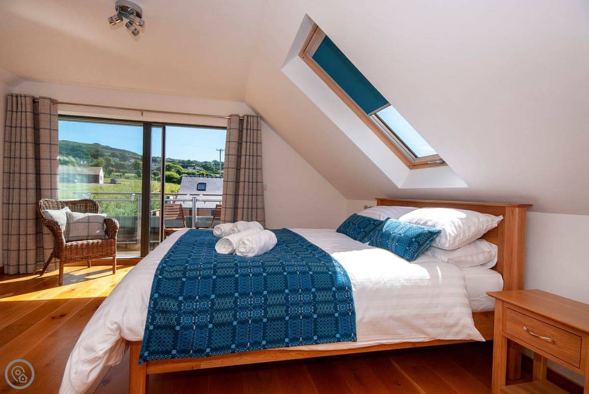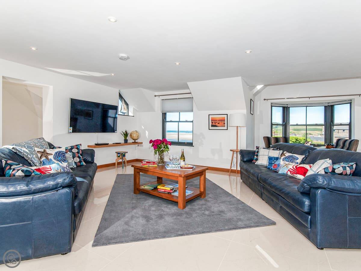The main sitting room is upstairs to make the most of the view over the estuary. There's also a small reading room up there. The master bedroom has a small balcony.