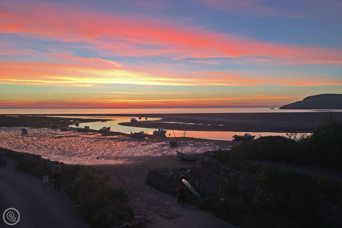 You're on the edge of the Pembrokeshire Coast National Park. The coastal path is right there. Carningli mountain is a good walk from the door. For a longer beach, Newport Sands is about a mile long.