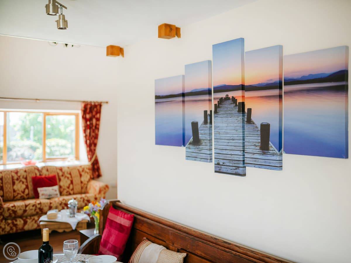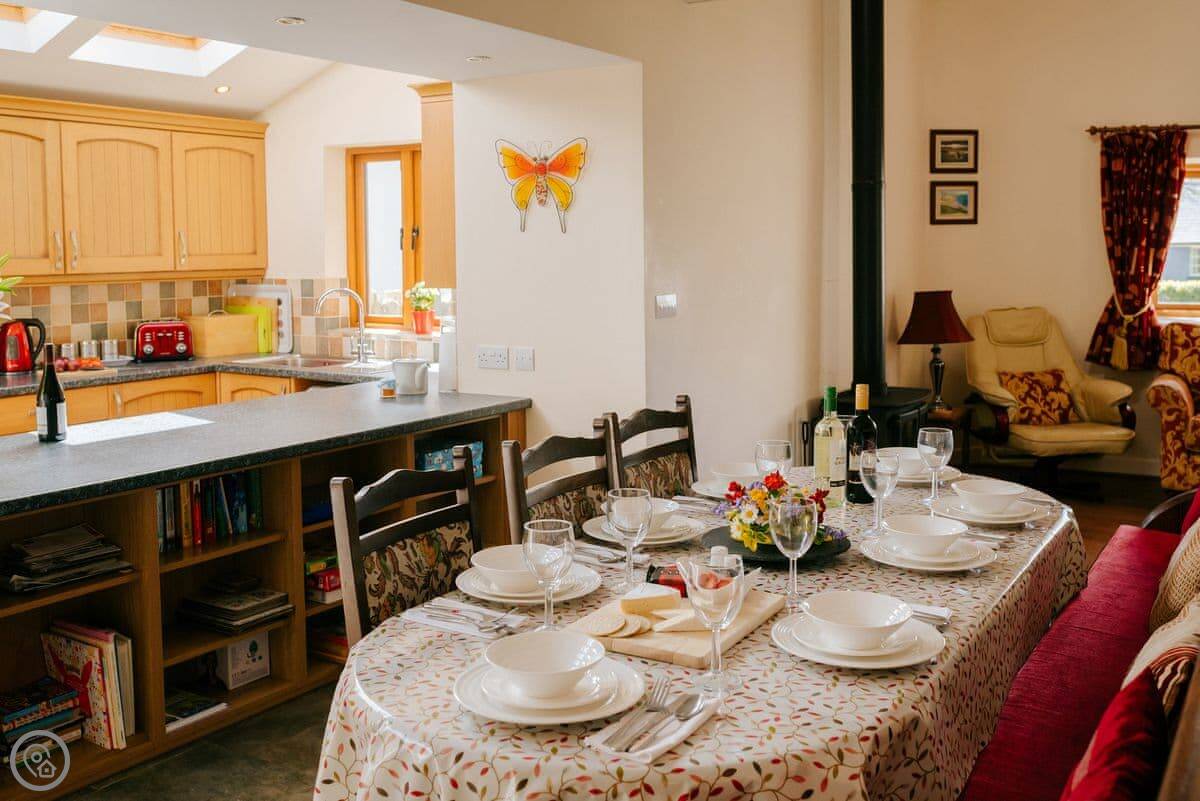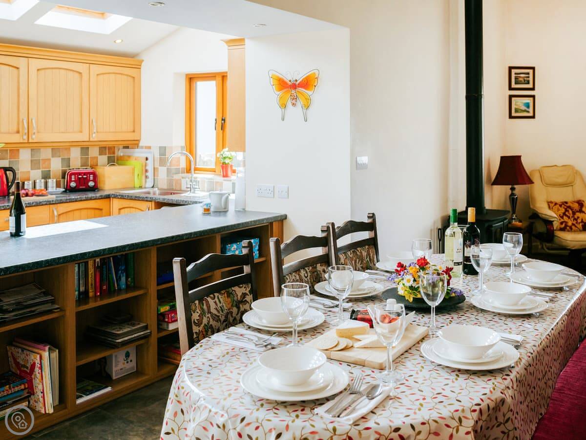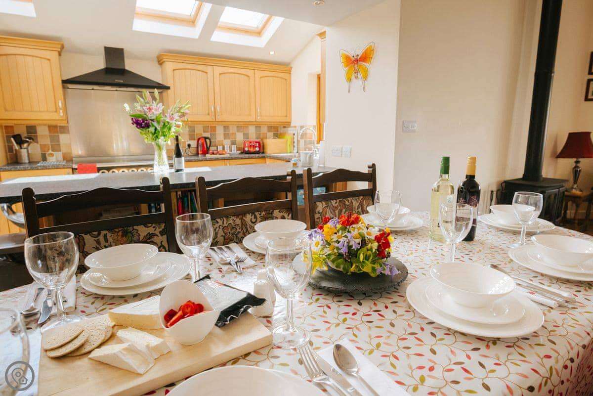 The kitchen has a big range cooker. There's a utility room at the back, which is handy for washing sandy dogs or storing walking gear.