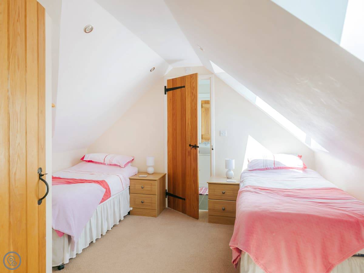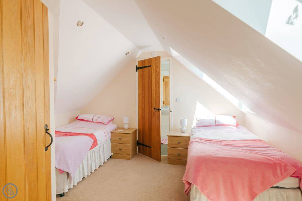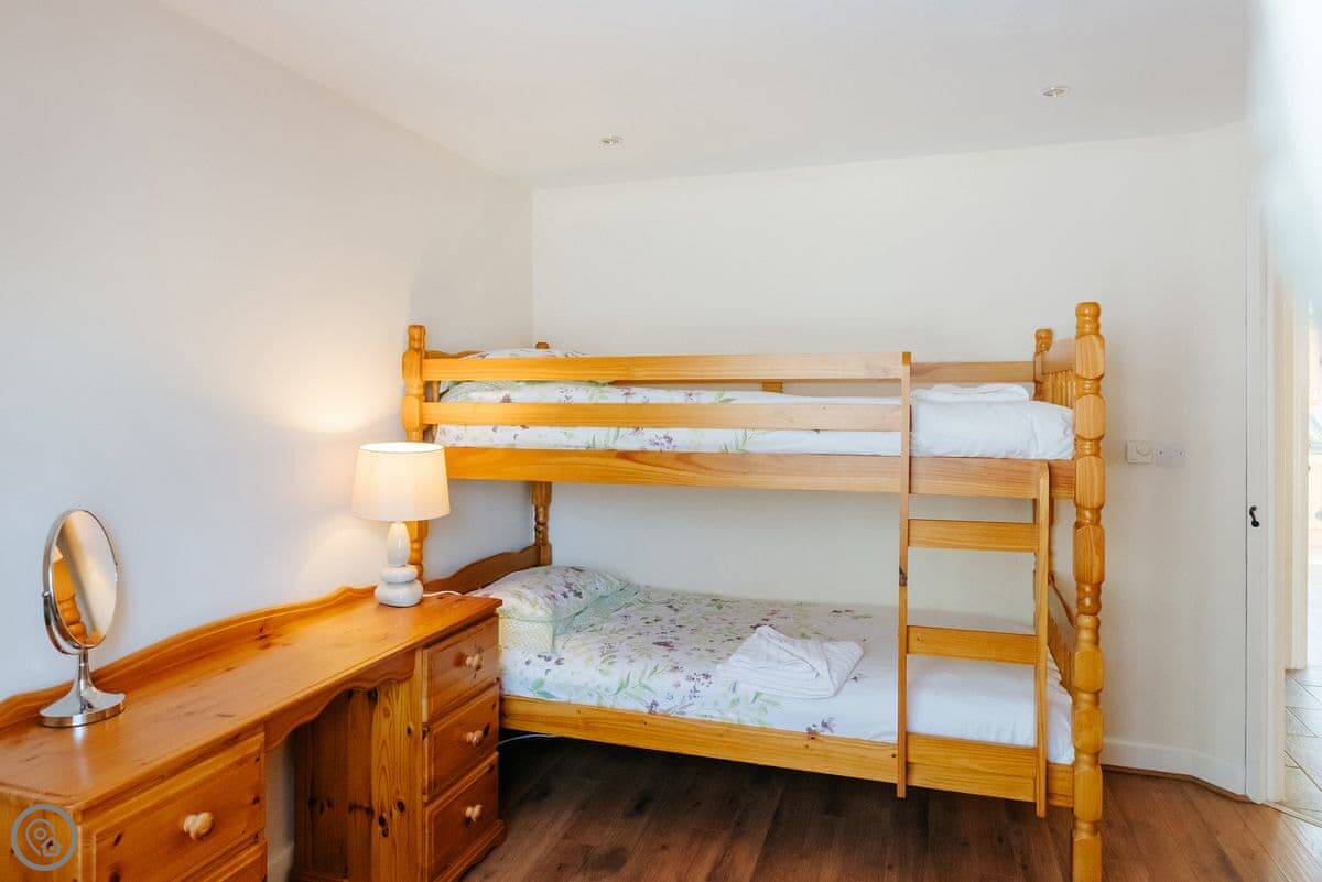 It sleeps eight, in four bedrooms. Two bedrooms are downstairs, two are up, so it works well if you've got grandparents or someone who struggles with stairs. There are two bathrooms, one on each floor. It's got a 4 Star rating. It's clean, comfortable, and modern.