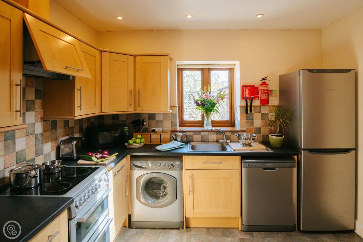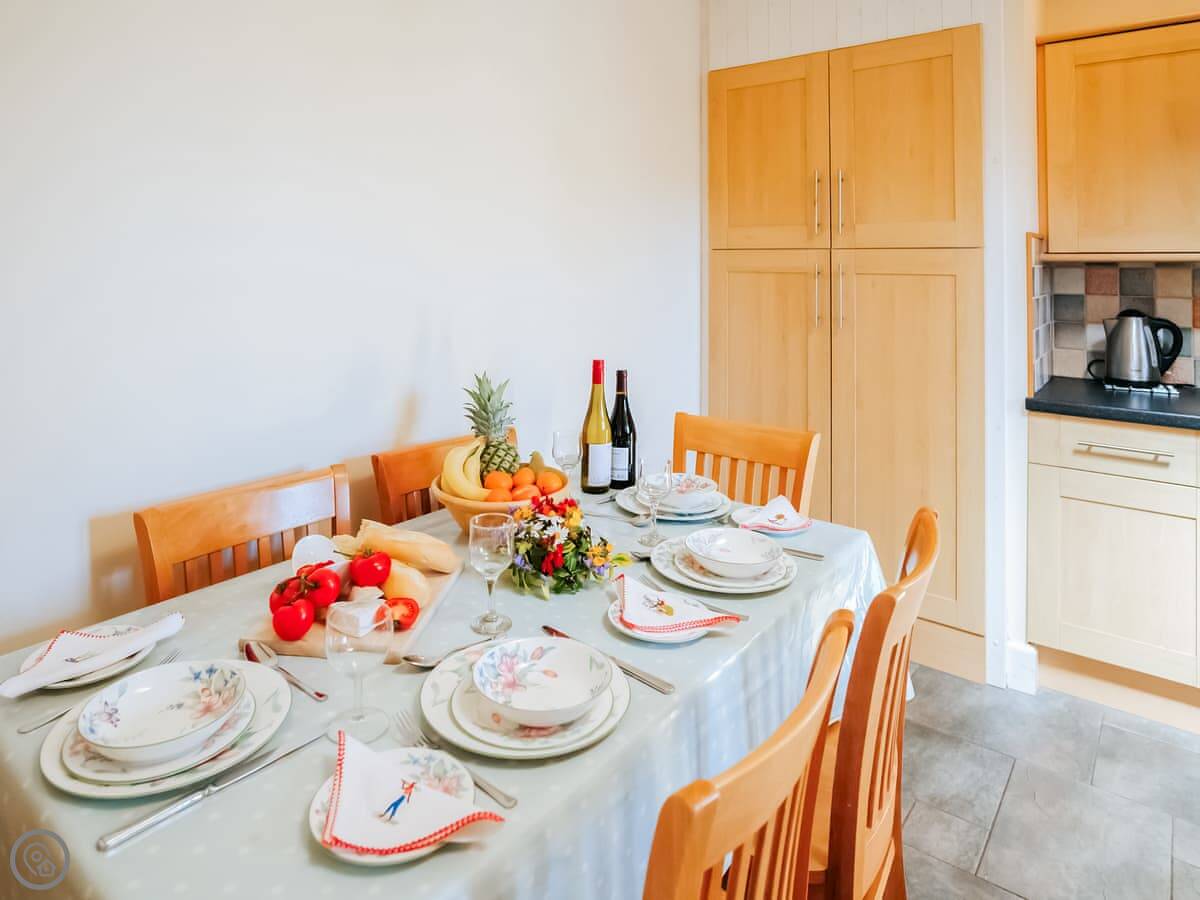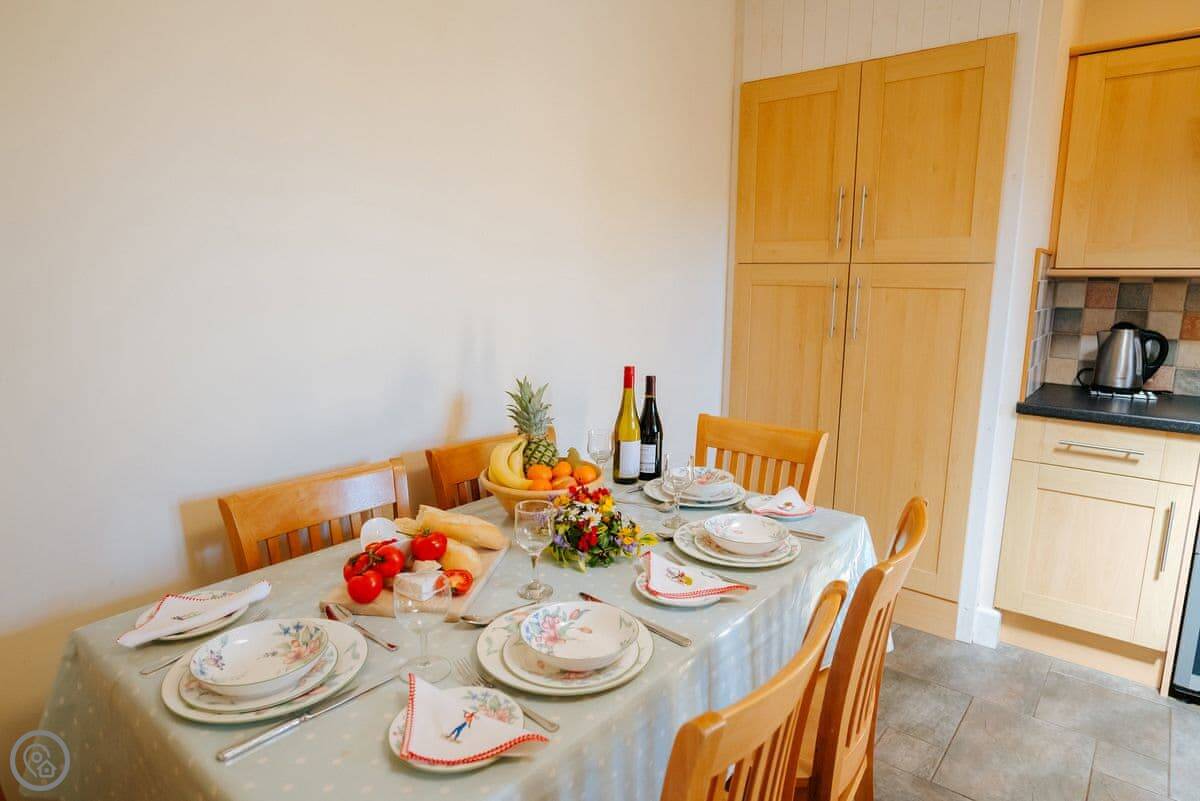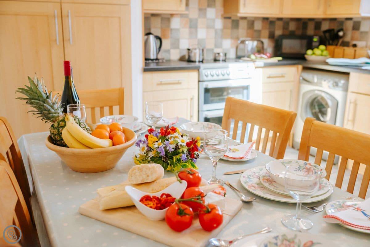 For facilities, it's got a washing machine, dishwasher, WiFi, and a TV. Bedding and towels are included. We can provide a cot and highchair. One well-behaved dog is welcome. The entrance and the layout are suitable for a wheelchair.