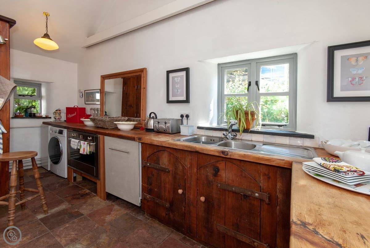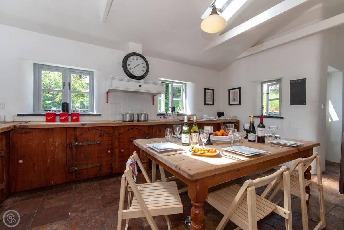 After a day on the beach, relax in the cooling cottage lounge, sinking into the comfortable leather sofas, chatting and laughing together, planning the excursions for the next day. Flooded with sunlight, through the lofty sunlights and traditional cottage windows, the well-equipped, Canadian redwood, bespoke kitchen, is a perfect place for family and friends to get together around the large pine kitchen table.