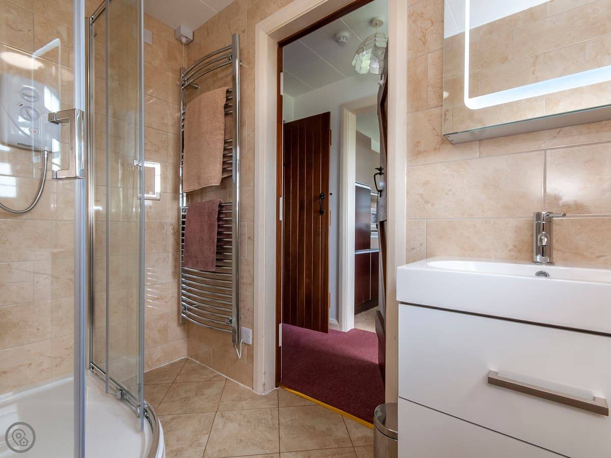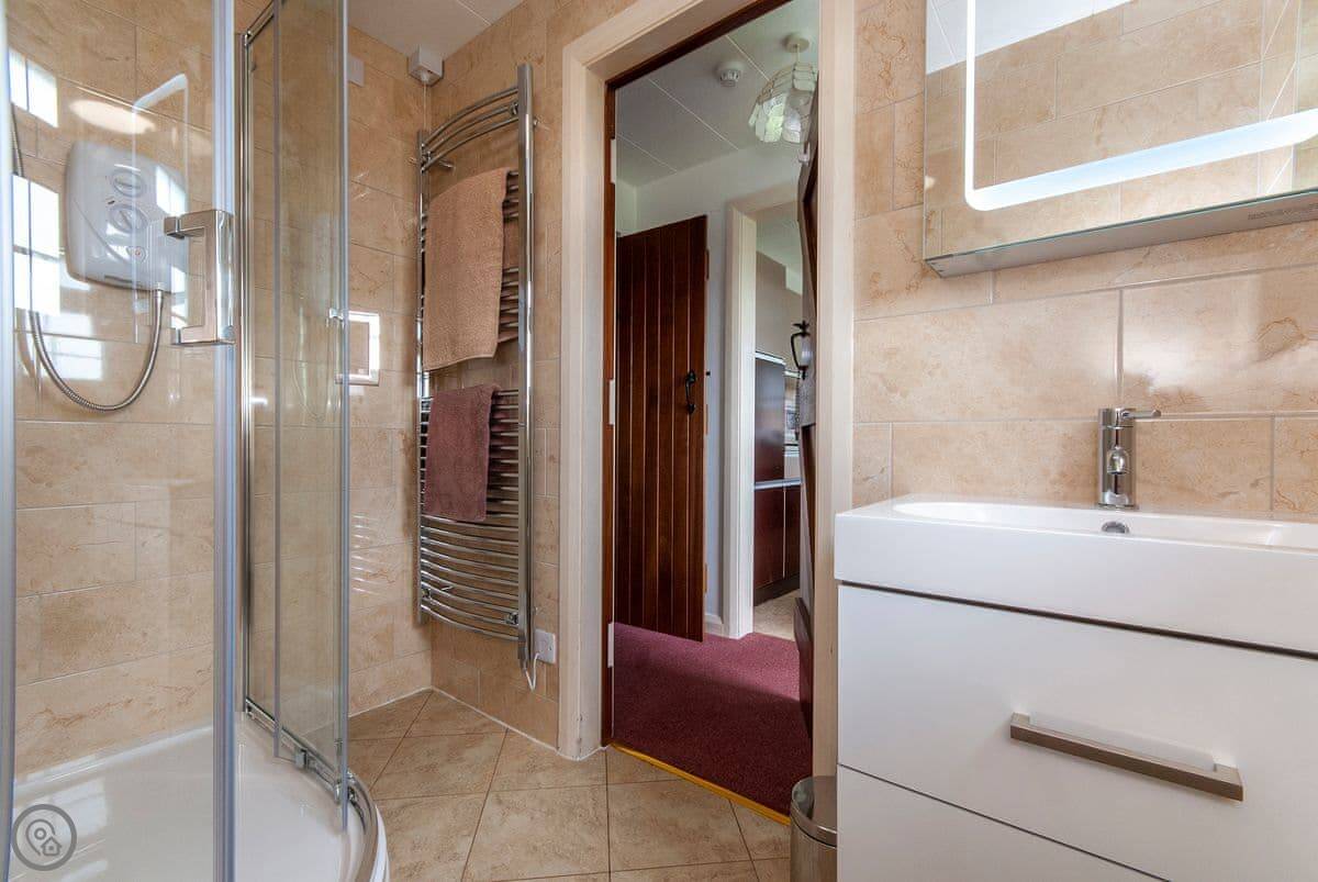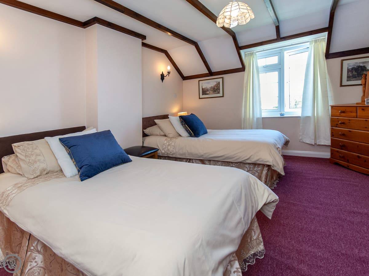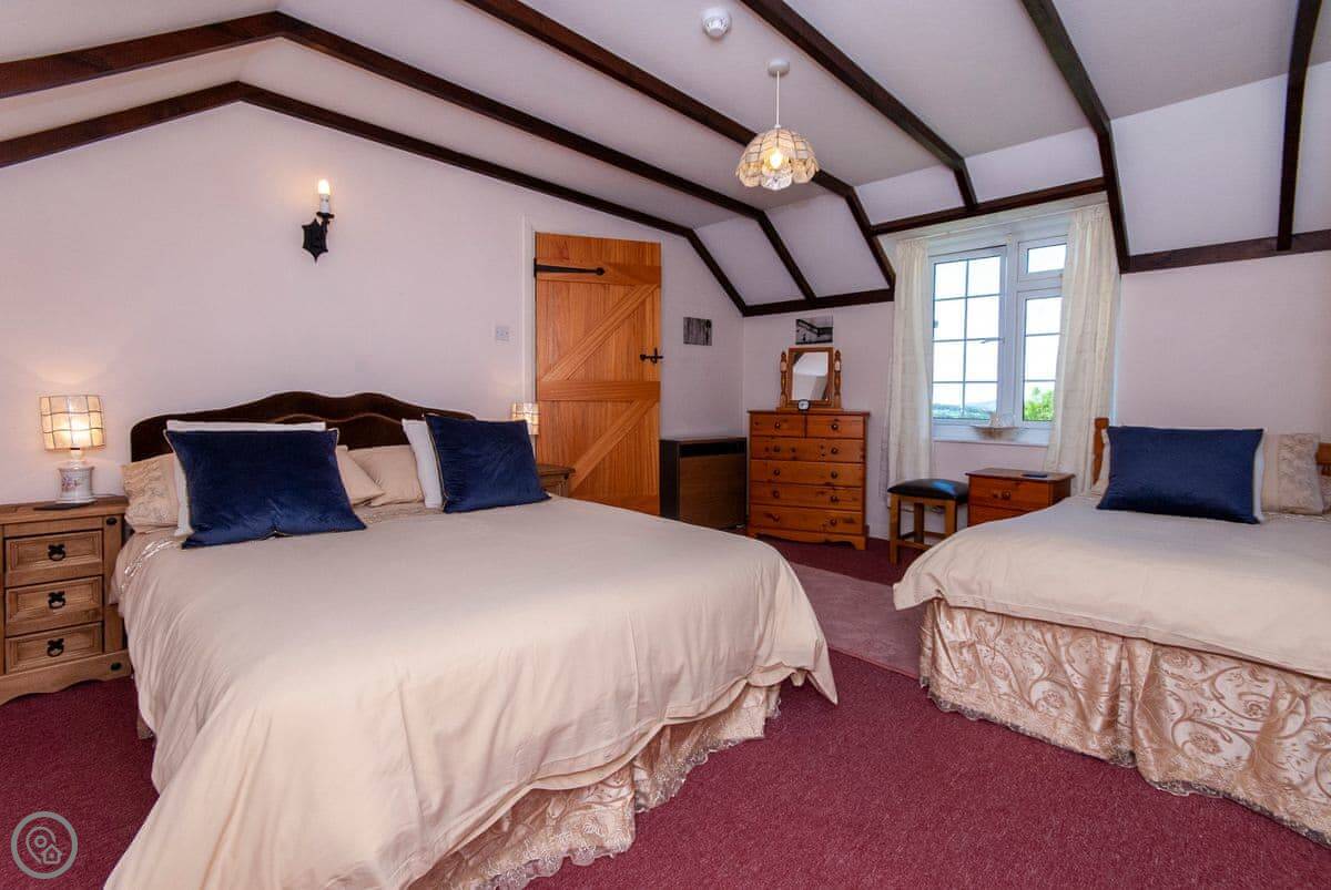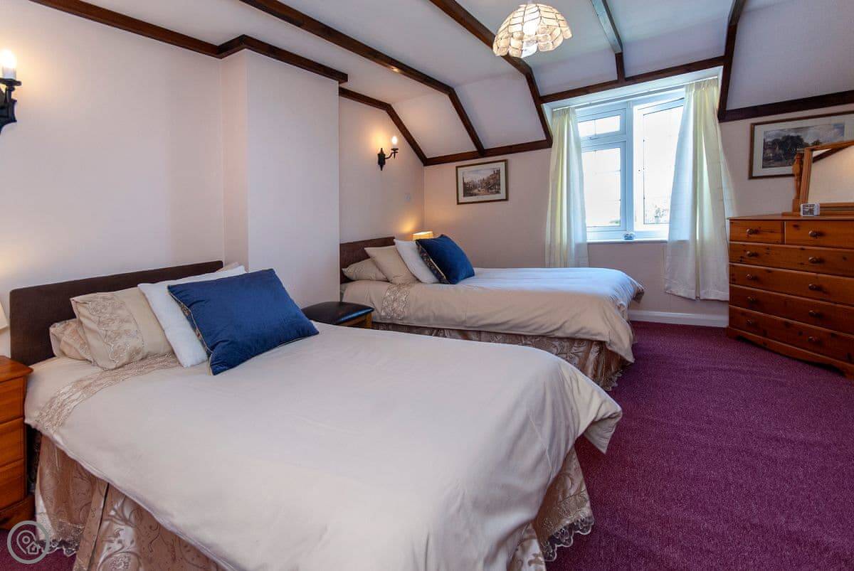 It sleeps five. Two bedrooms upstairs, one's a twin, the other has a double and a single bed. One bathroom, but it's a shower room and it's on the ground floor. It's a 4 Star place, so it's comfortable and well looked after.