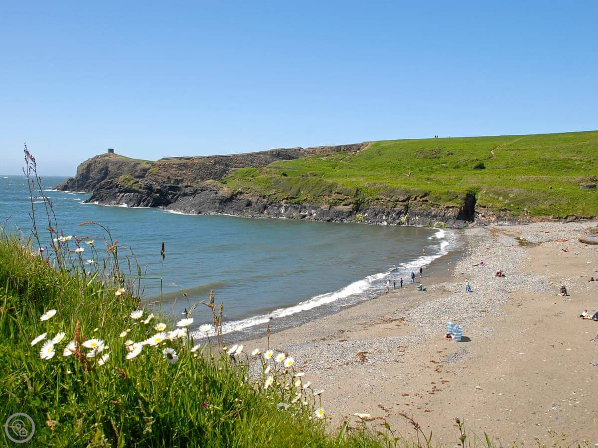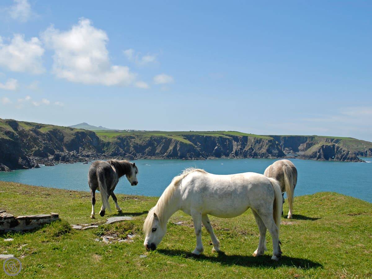 Porthgain harbour is about a fifteen minute walk away. It's a nice spot. There's a good pub there that does food, and a couple of places to eat. Abereiddy is next door, which has a dark sand beach dogs can use all year and the Blue Lagoon.
