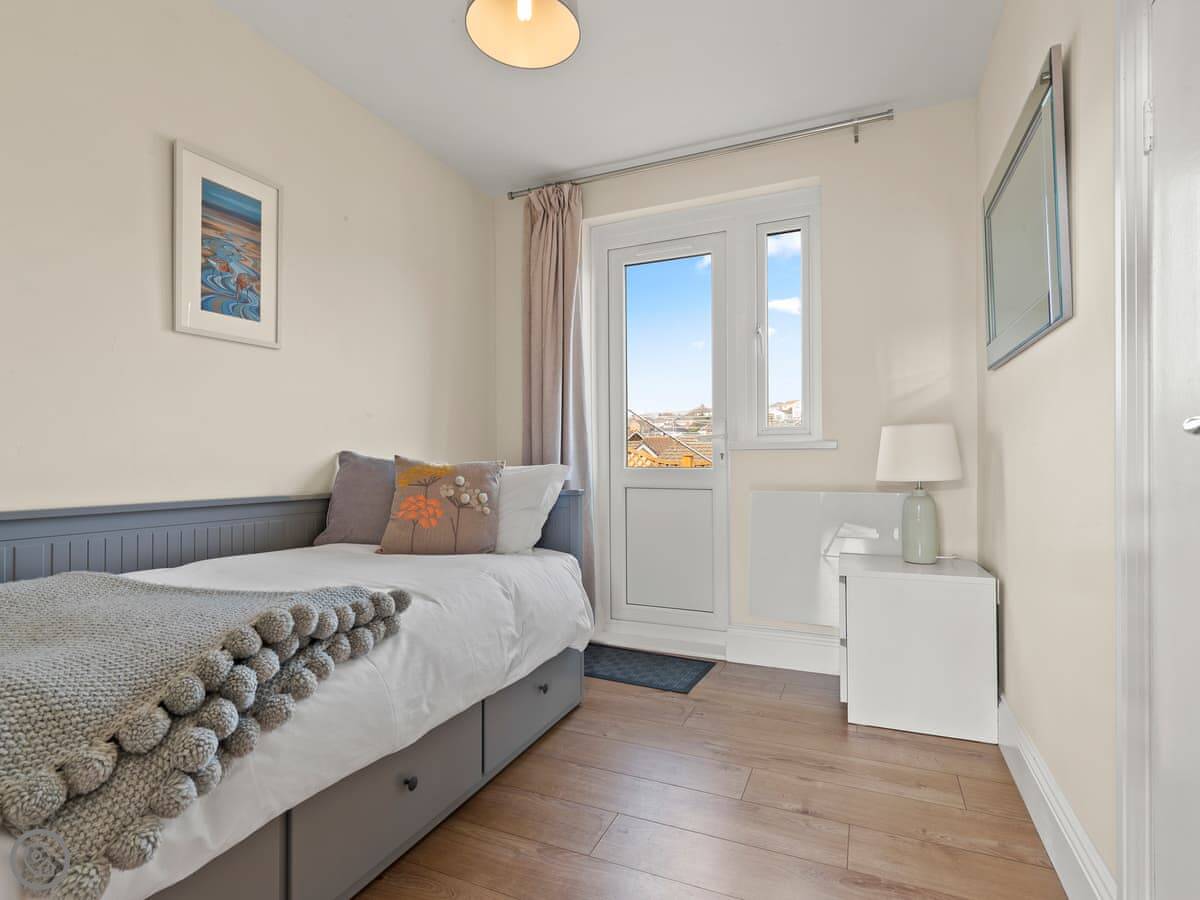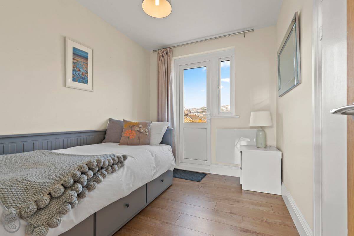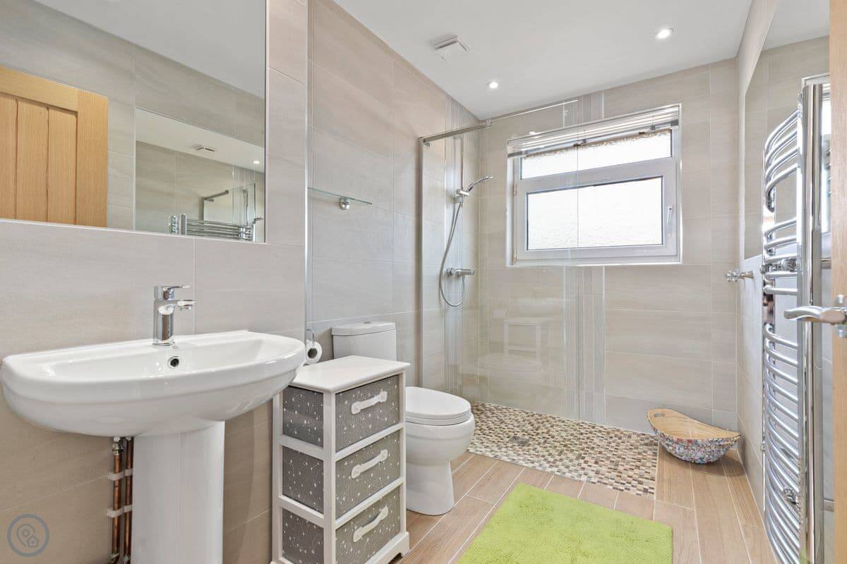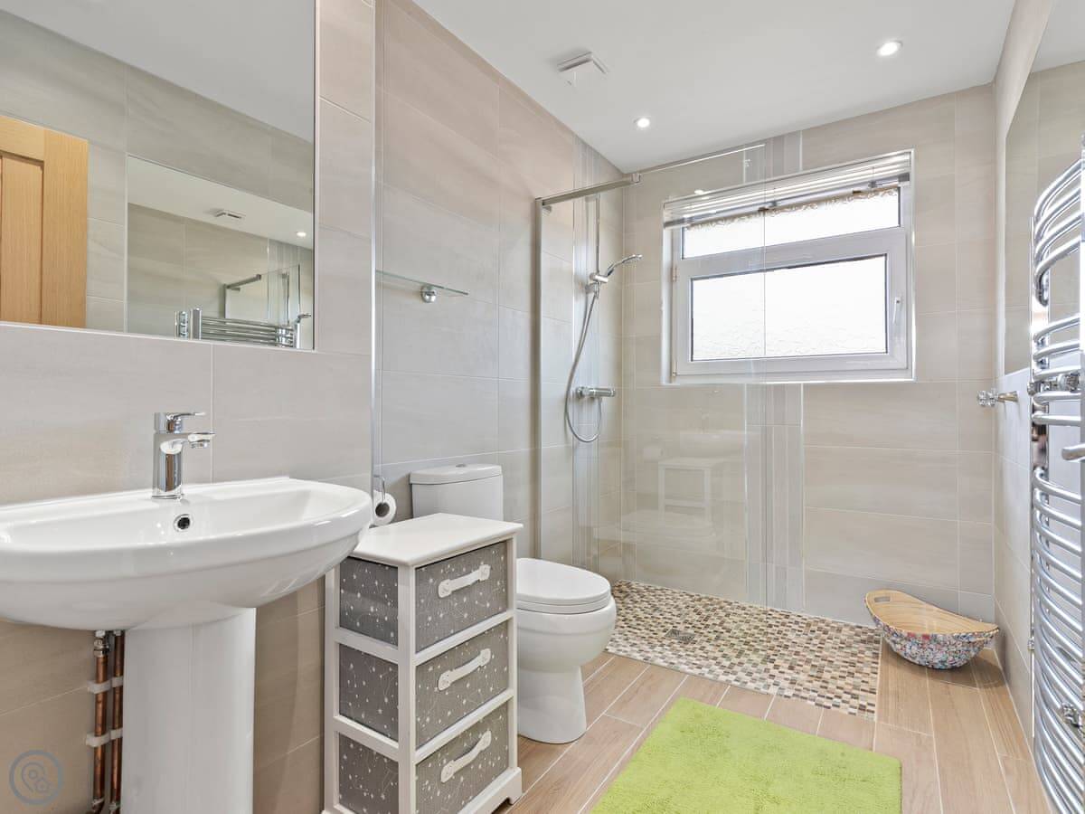 It's a two-bedroom place, sleeps three. One double and one single. There's one bathroom with a walk-in shower, which is good if you've got any mobility issues. The stairs are normal. It's got a 4 Star rating, so it's comfortable and well-equipped.