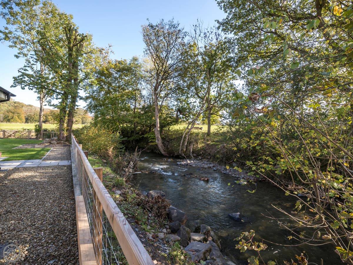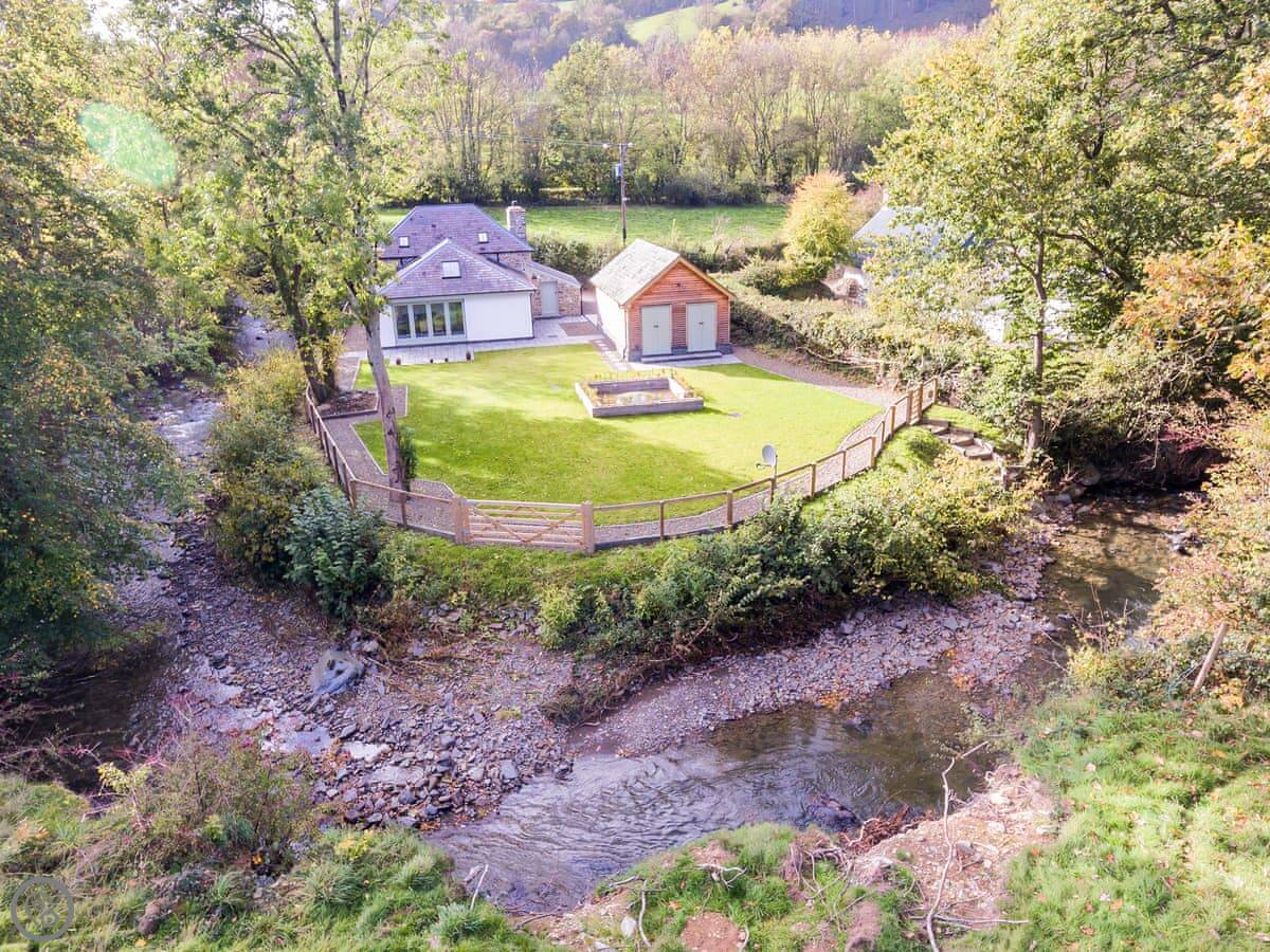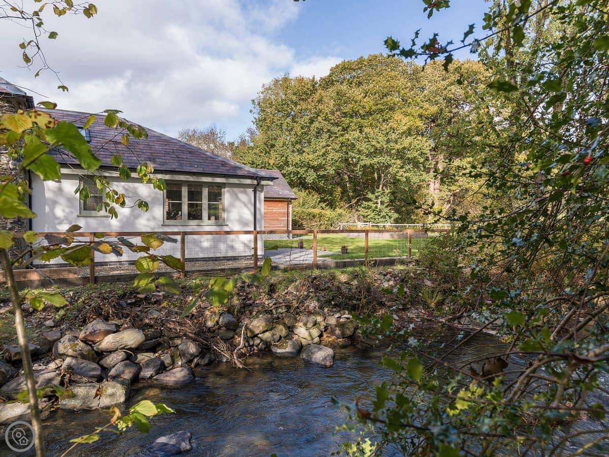 Step into the whimsical and fully fenced garden at the rear of the property and relax on the rattan garden furniture, which is bordered by woodland and a flowing tributary of the Aeron River - ideal for fishing in the summer months . The lawned, landscaped garden is fully enclosed and is perfect for older children to play in or for soaking up the peacefulness of the surrounding area.