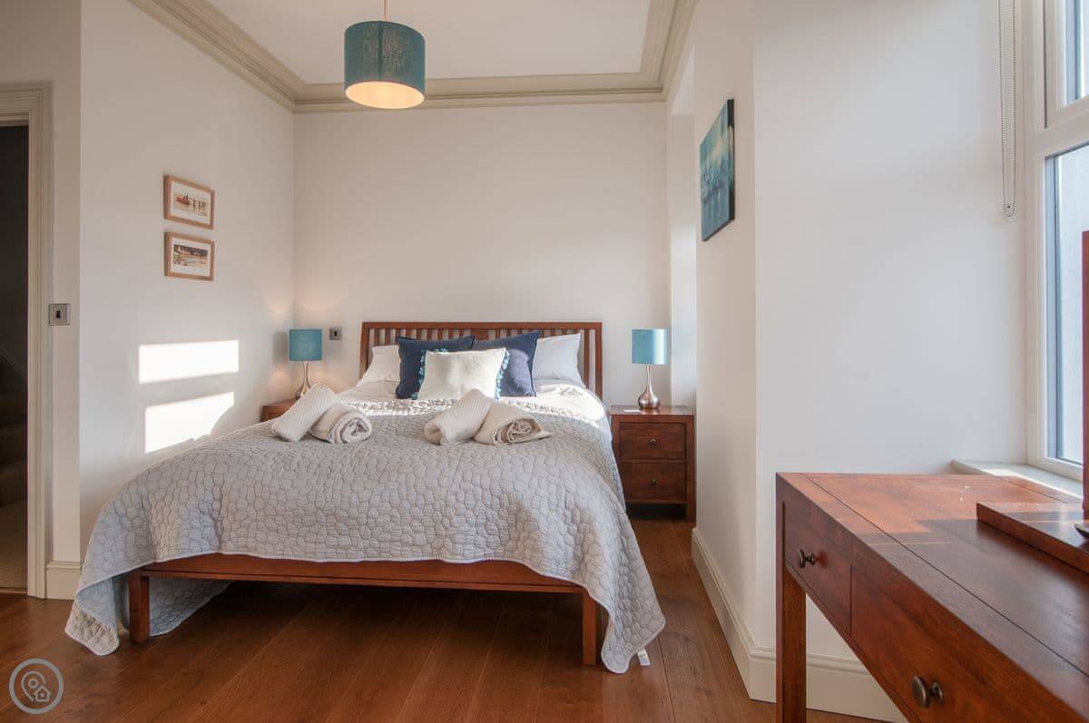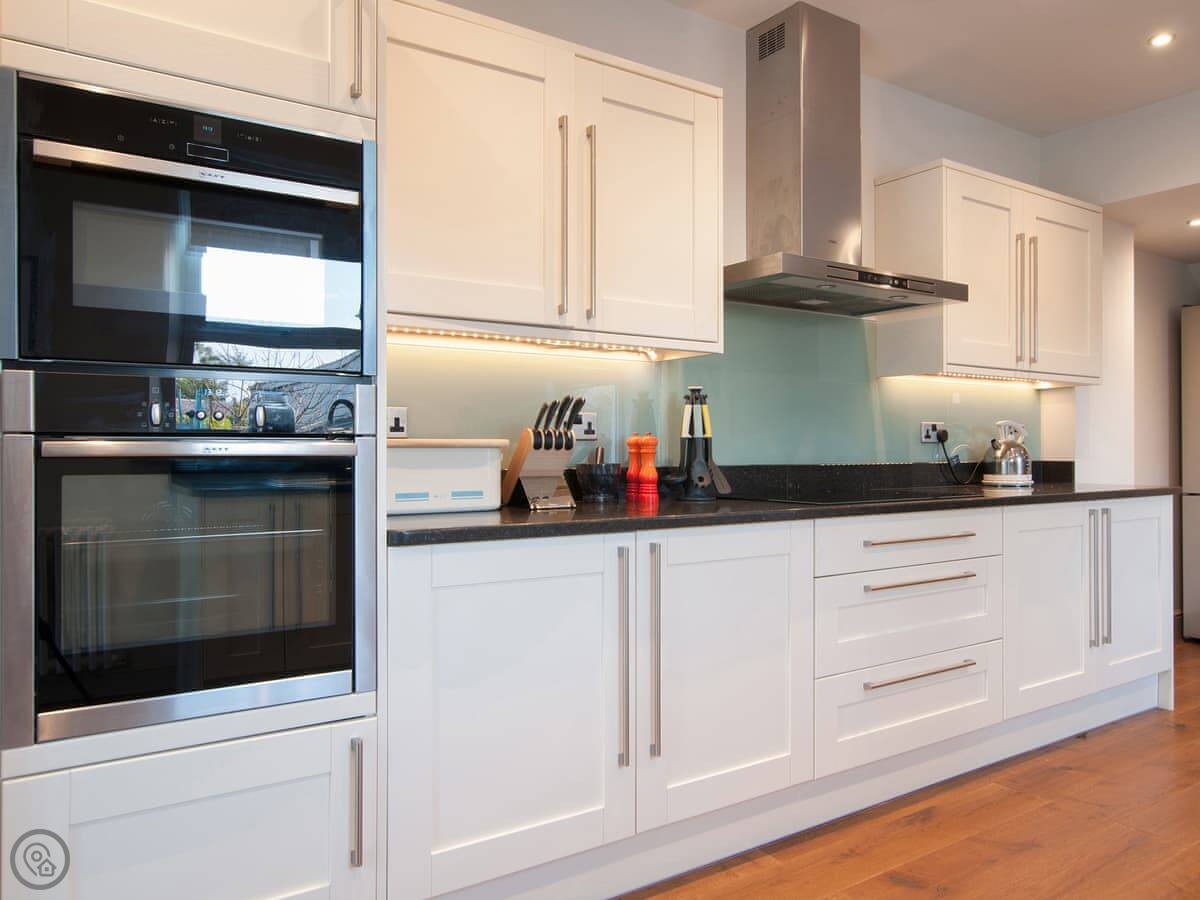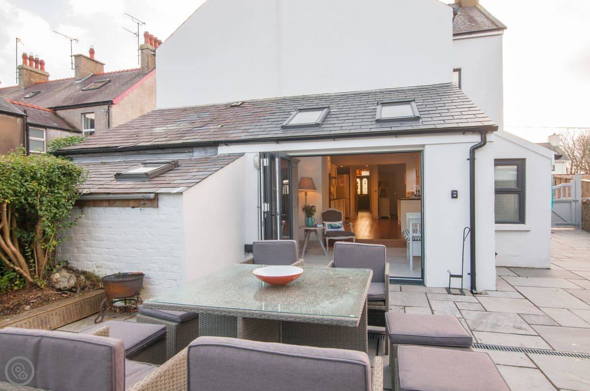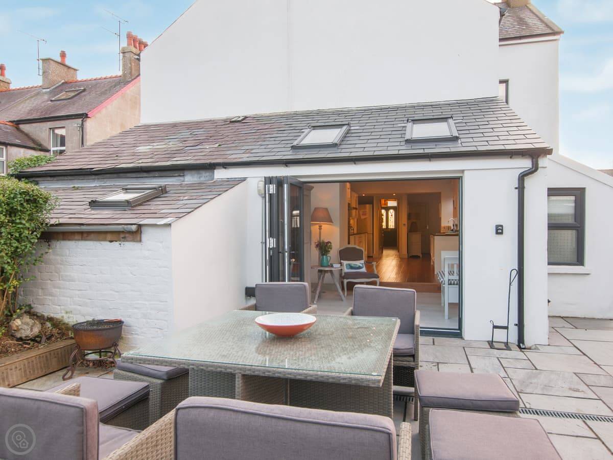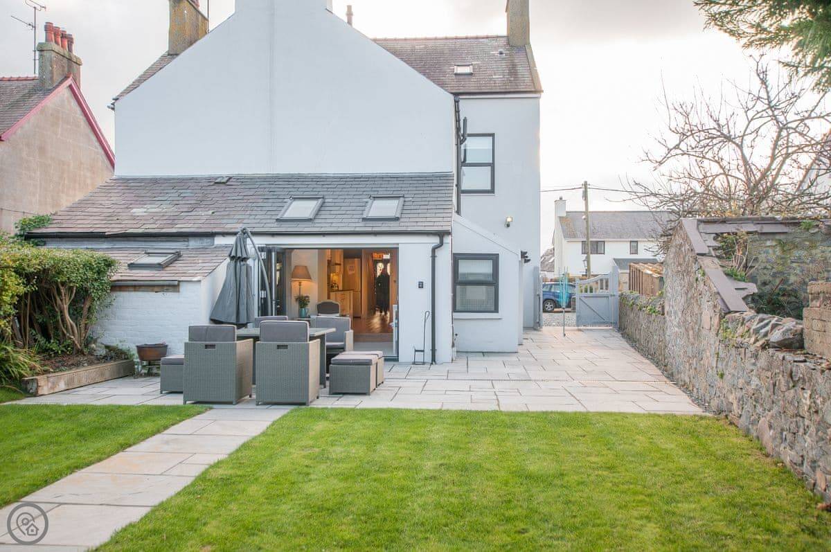 Original Edwardian staircase leads up to sumptuous bedrooms with hugely comfortable king size beds with crisp white linen bedding enlivened with colourful cushions and throws. 2 bedrooms with luxury en-suite both with large walk-in showers and a family bathroom with walk-in shower and freestanding bath to unwind and escape with a glass of wine and a good book. Open wide the patio doors in the kitchen and step out into the garden enjoy breakfast here and dinner in the late evening sunshine. There are a wealth of lovely beaches and coves to discover along this sublime coastline, one of the journeys gems, the rocky promontory of Porthdinllaen, is right here on your doorstep.