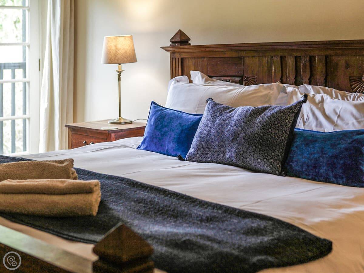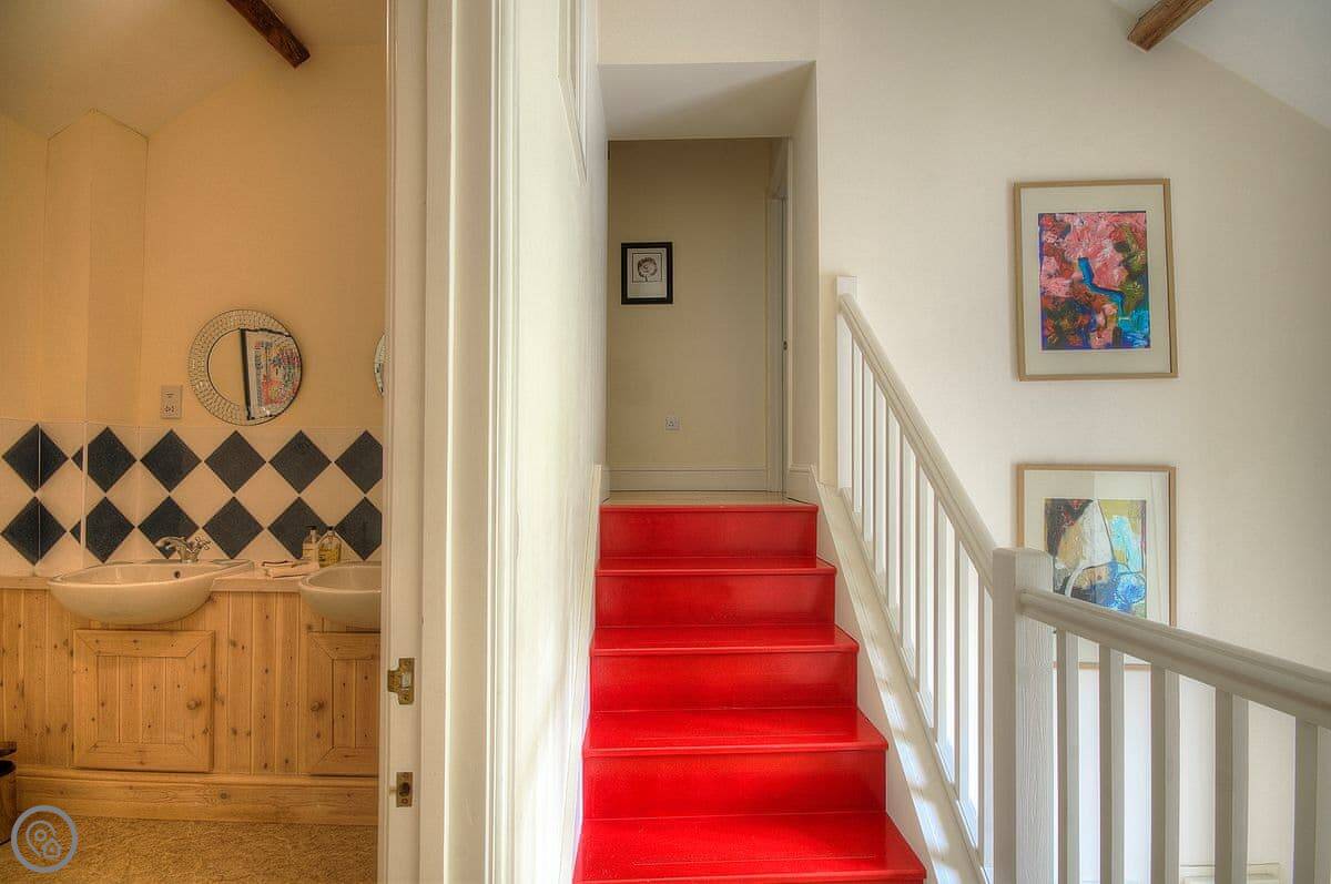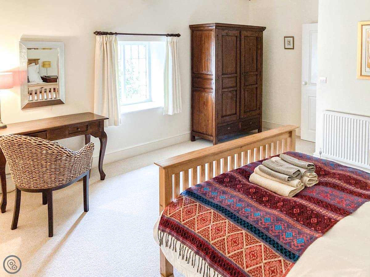 Accessed via a further set of stairs the two upstairs bedrooms are very peaceful are adorned with luxury bed linen and glorious oak beams. Bedroom 3 has a full-length window with a Juliette balcony and views across the grounds to fields beyond.