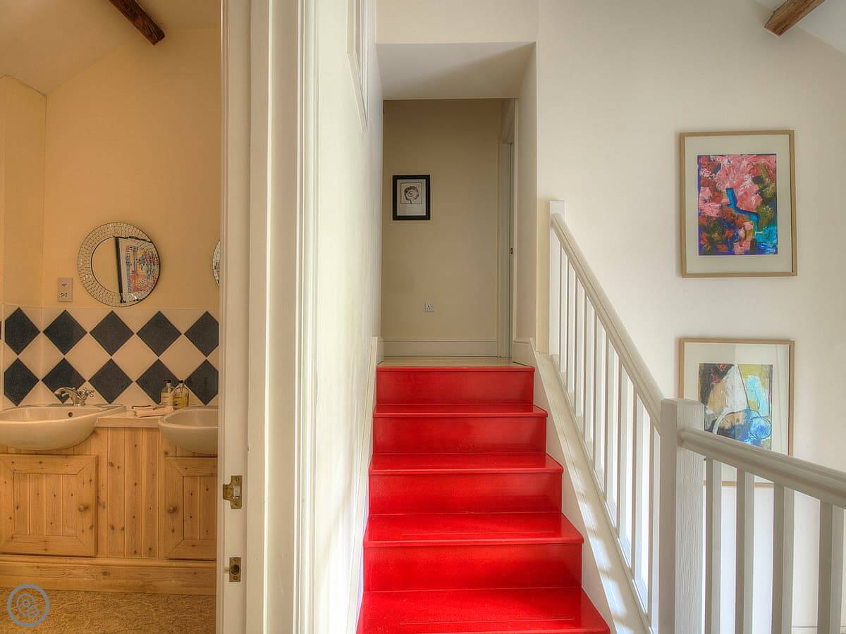 The Hayloft is a Grade II listed property tucked away in the corner of a handsome Georgian farmhouse courtyard. You are welcomed into this luxury cottage by time-worn flagstones and a double height gallery hallway with two ground floor bedrooms leading off, both with double aspect windows - one with twin beds and one with a king sized bed. These two ground floor bedrooms each have beamed ceilings, refined furnishings, shining wooden floors and share a shower room. The twin has a large glazed window looking onto a secluded courtyard - dappled shade beckons through the sparkling windows inviting you to explore the pristine grounds beyond. A terrace for the exclusive use of The Hayloft guests is tucked away in the garden and there is a recreation area with shared ’ping pong’ table. The shared gardens are very well maintained and contain a diverse array of trees and plants, making this an ideal spot to wander and gaze at the stars in this quiet corner of Wales. An ideal location for walkers and festival goers. The village of Glasbury is a mile away and the cottage is just 5 miles from Hay on Wye. There is also an outside tap for washing dog paws.