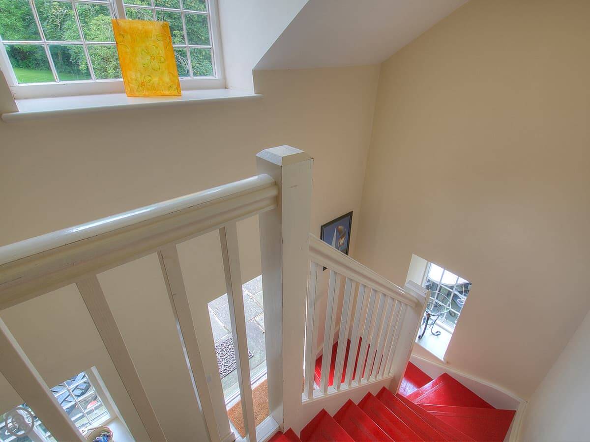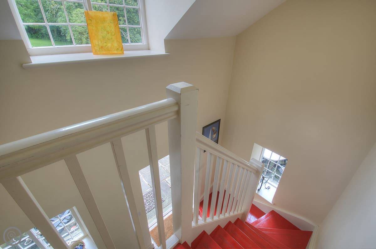The staircase is painted red. It's a proper farmhouse staircase, so the treads are a bit uneven in places. You get used to it.