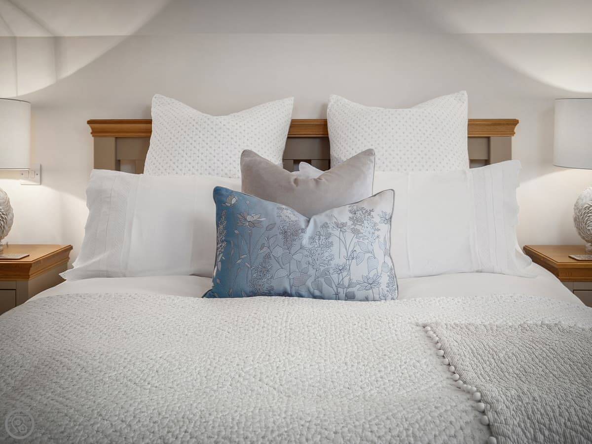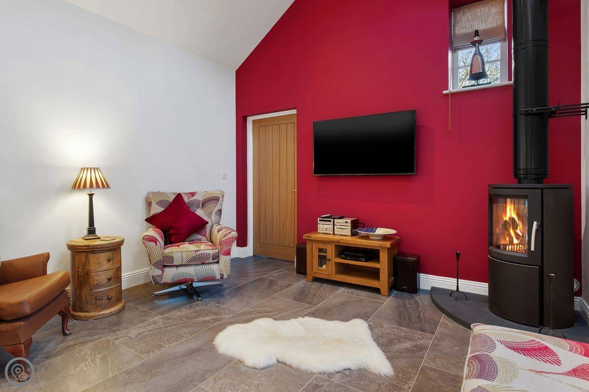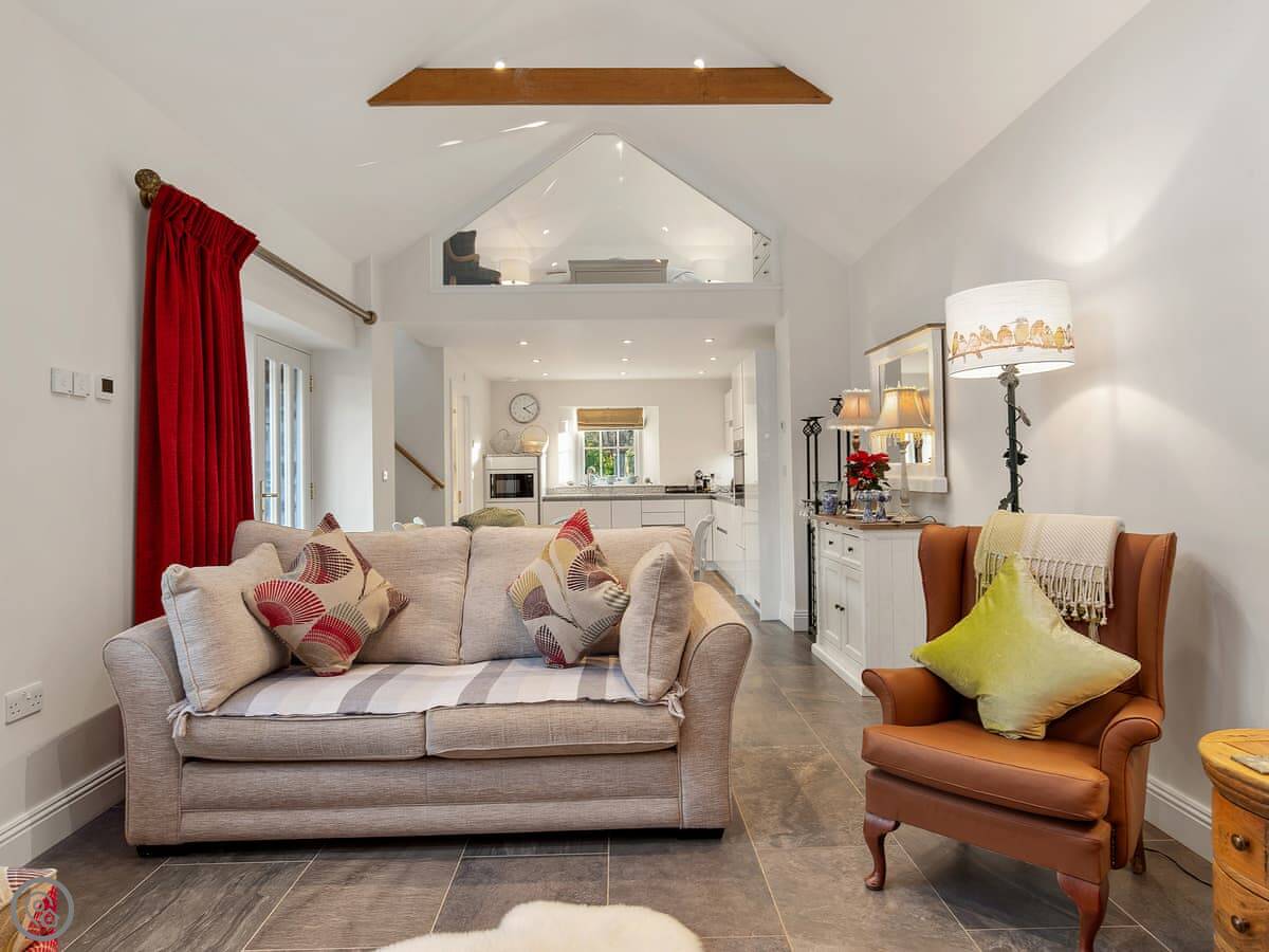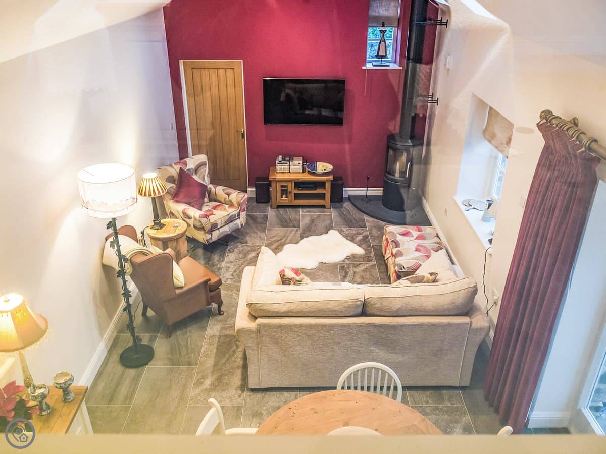 Scandinavian style, ultra-efficient wood burner and downstairs underfloor heating are there to ensure a cosy stay. A wonderful locally crafted kitchen with A-frame beams a granite work surface, high tech NEFF cooker and hob, and all the items you need to relax and prepare gourmet meals. The house is decorated throughout to the highest standards enhanced by an abundance of wonderful soft furnishings. Smart TV with Sky and swift Wi-Fi. The house has one bedroom set on a mezzanine, the flick of a switch obscures the glass to make it a private and luxurious bedroom, with electric blinds to enhance the feel.