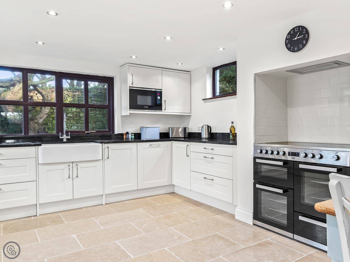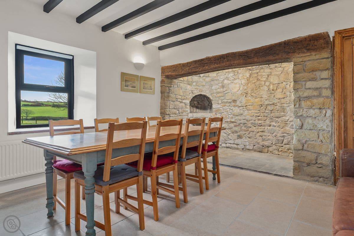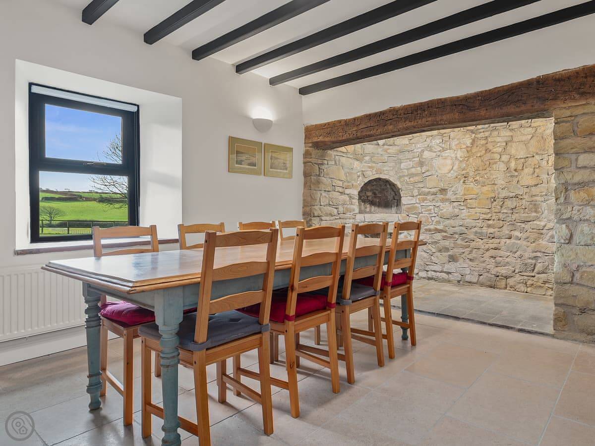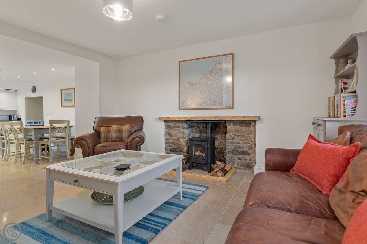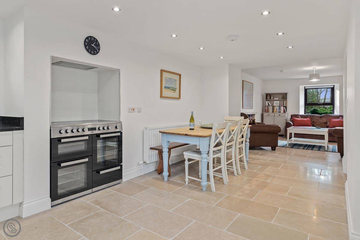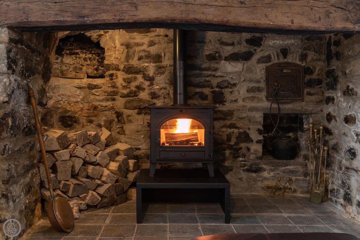 The kitchen is a decent size for cooking for everyone. It has a dishwasher and a washing machine. There's a wood burner in one of the living rooms. Bedding and towels are included. There's a cot and a highchair if you need them.